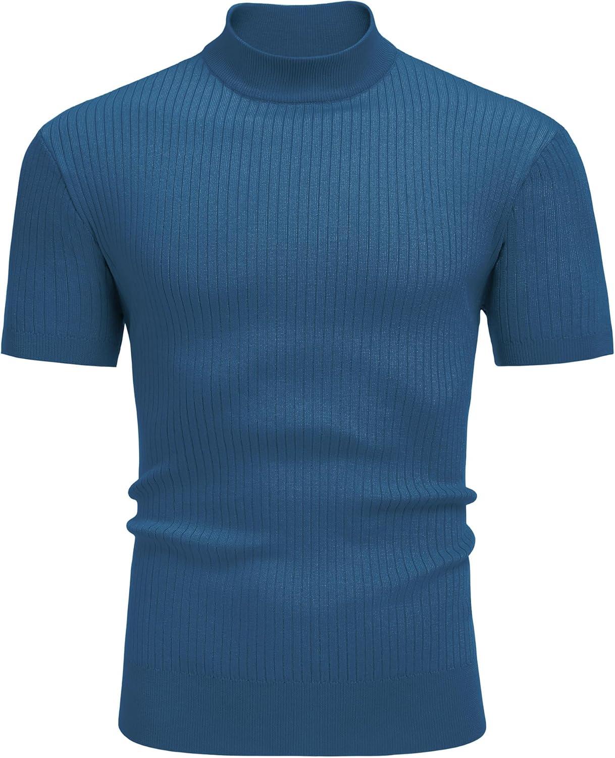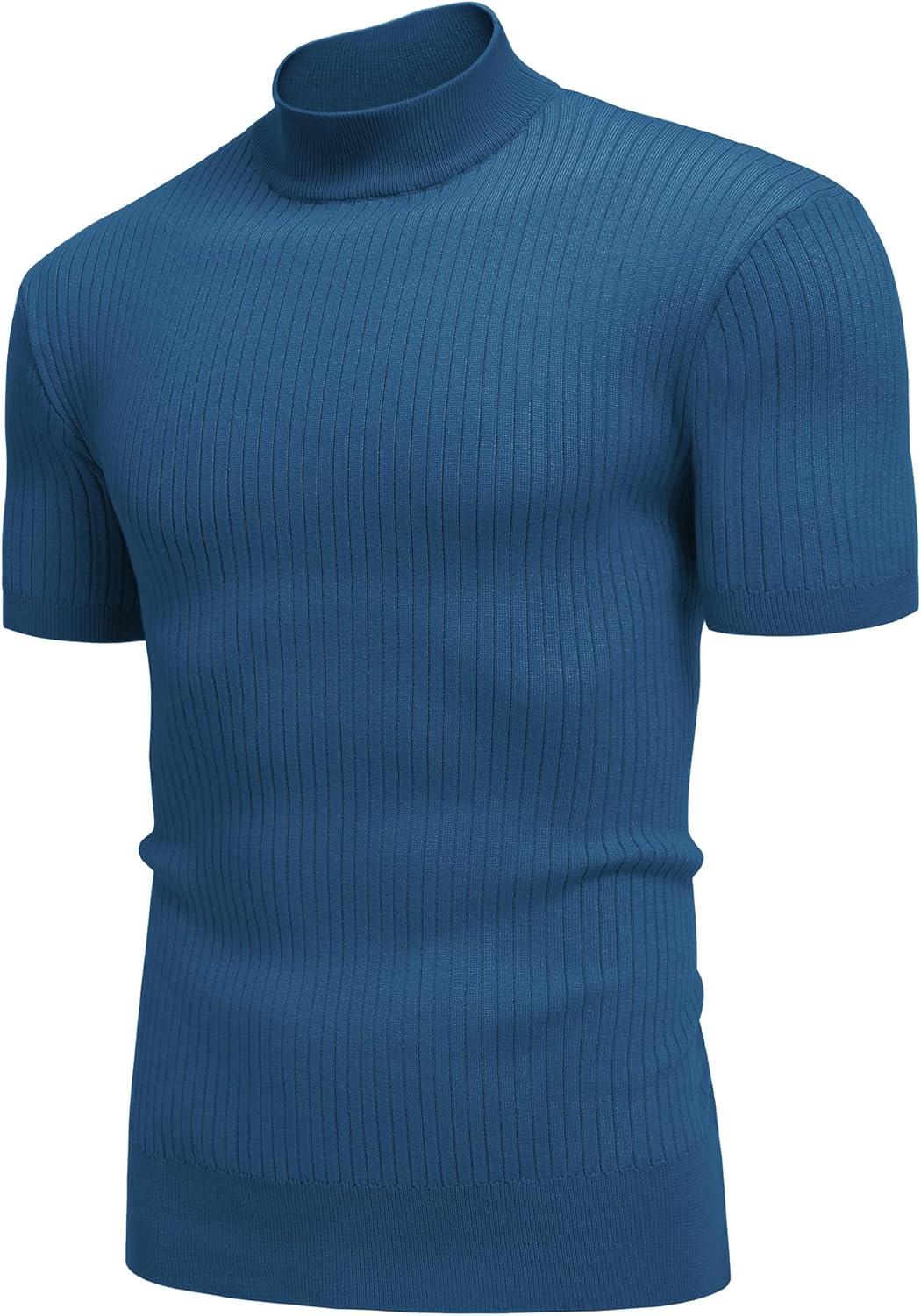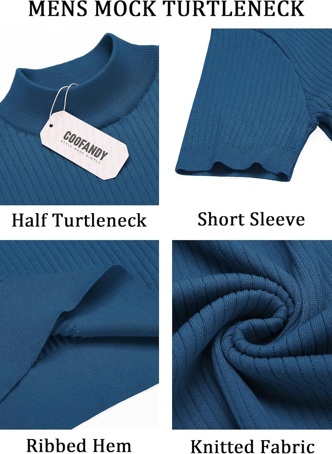 COOFANDY Men’s Mock Turtleneck Sweater Short Sleeve Casual Basic Tops Ribbed Knit Pullover Solid Tee(Dark Blue)