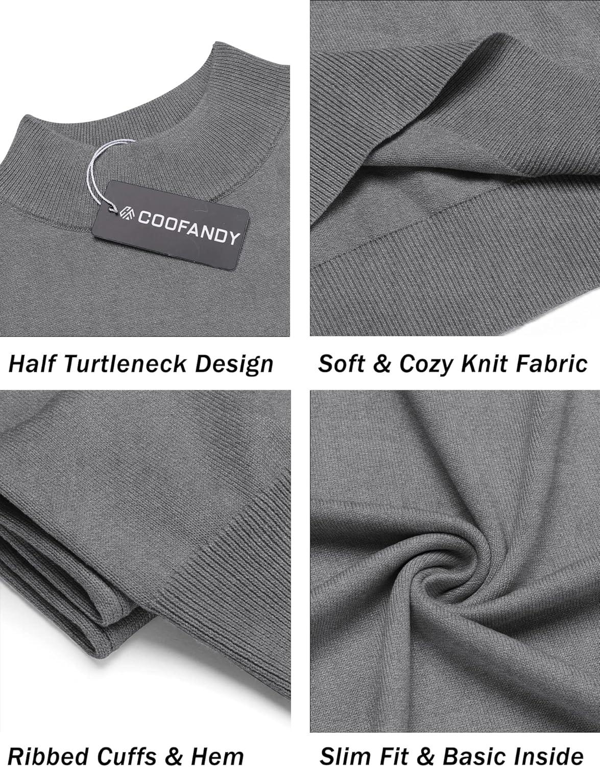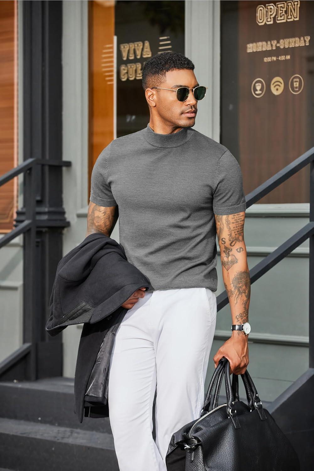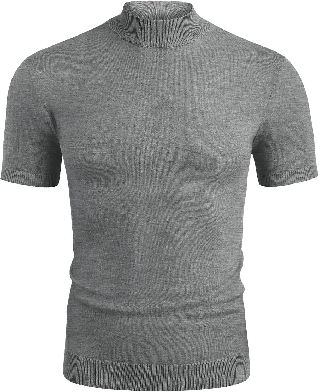 COOFANDY Mens Mock Turtleneck Sweater Short Sleeve Casual Dress Sweater Slim Fit Pullover Basic Knit Tee(Grey)
