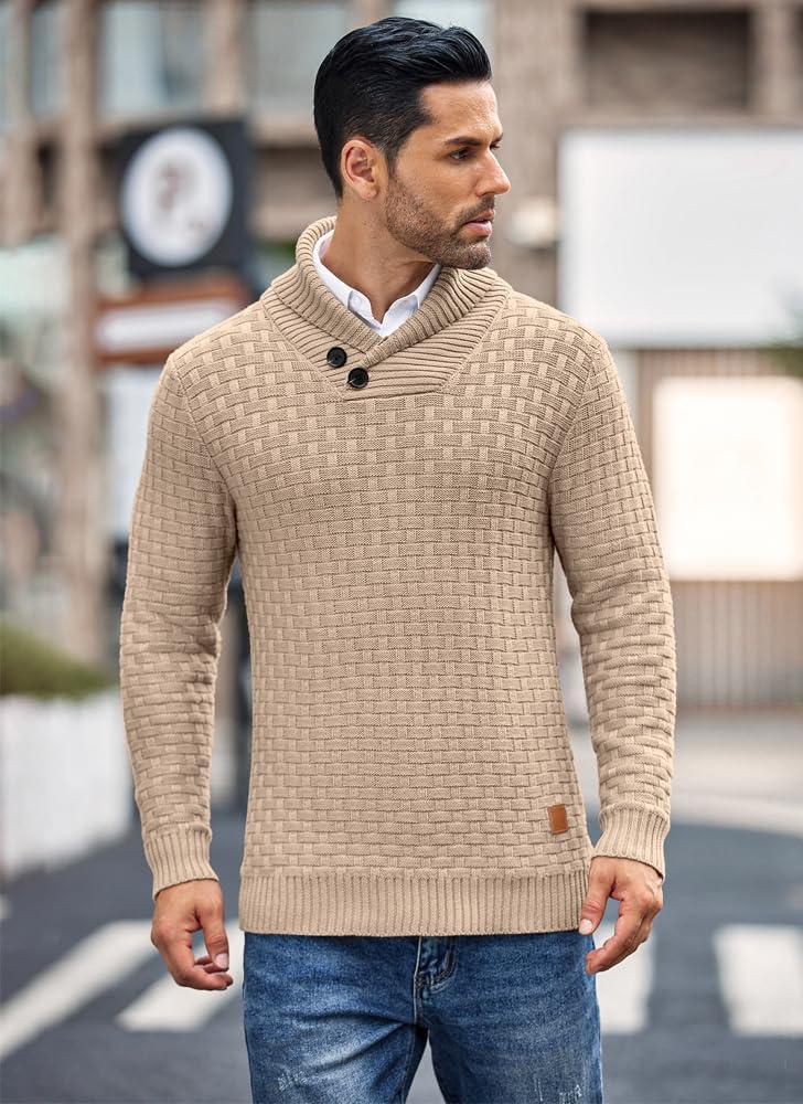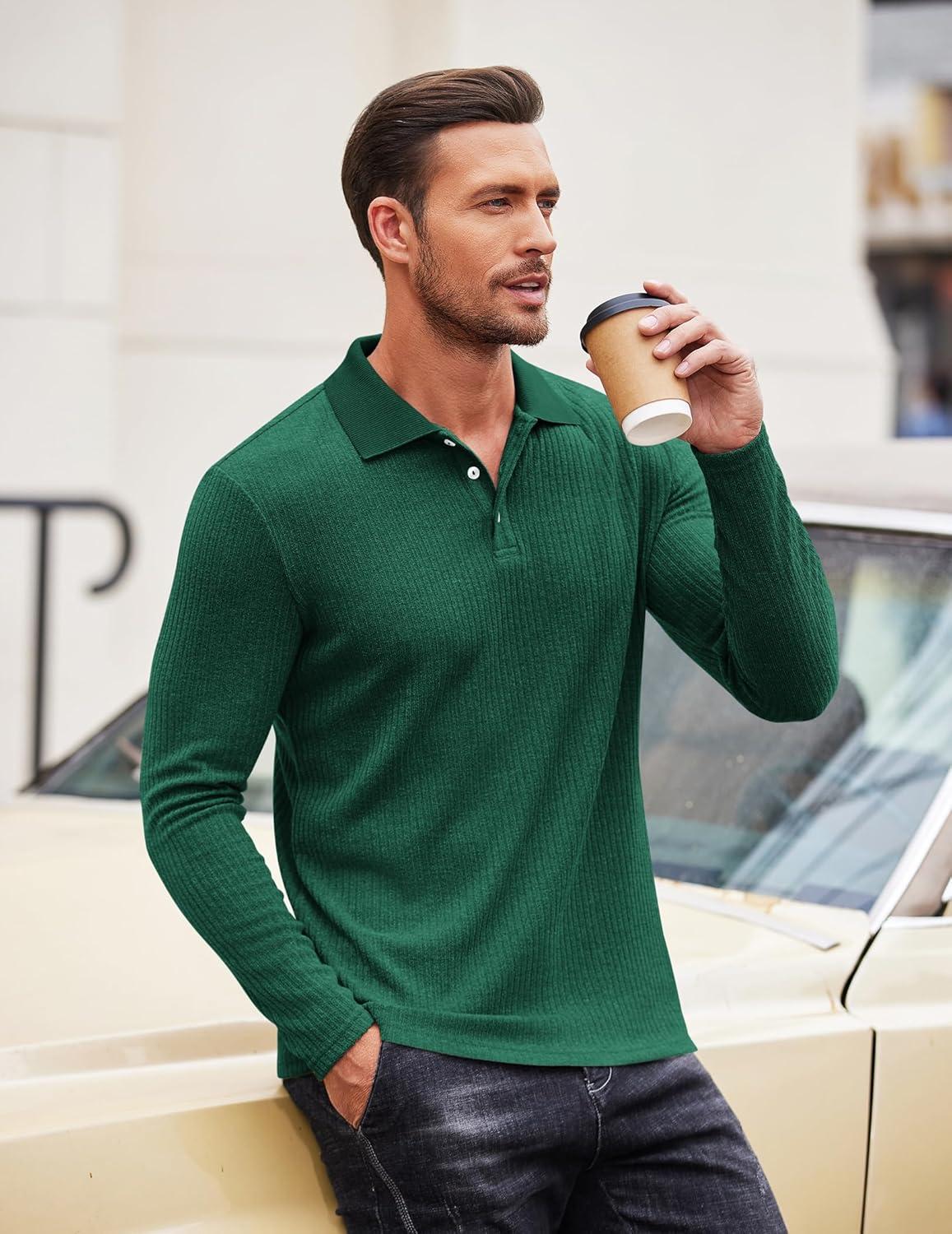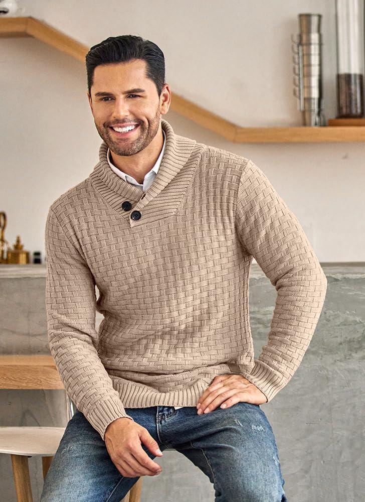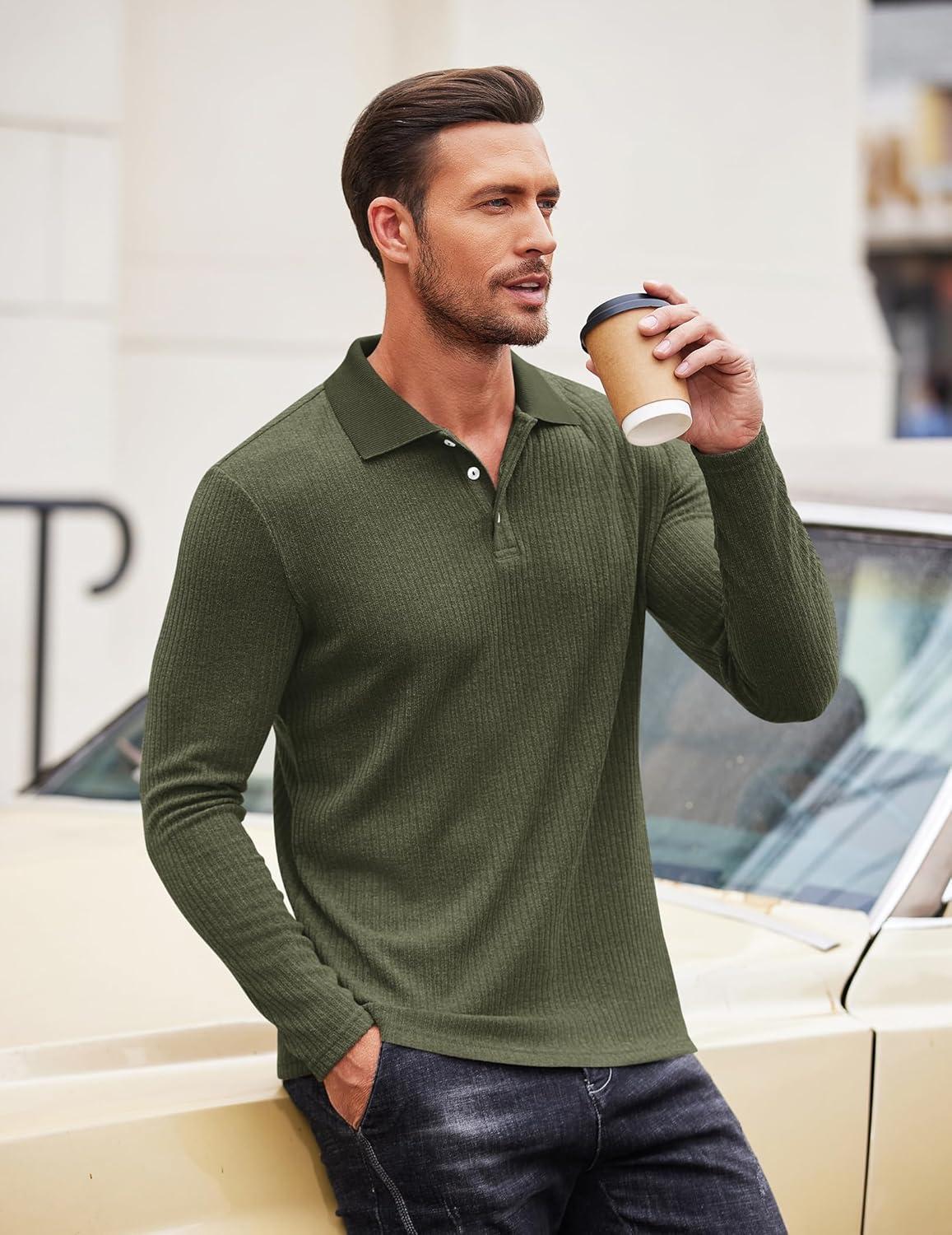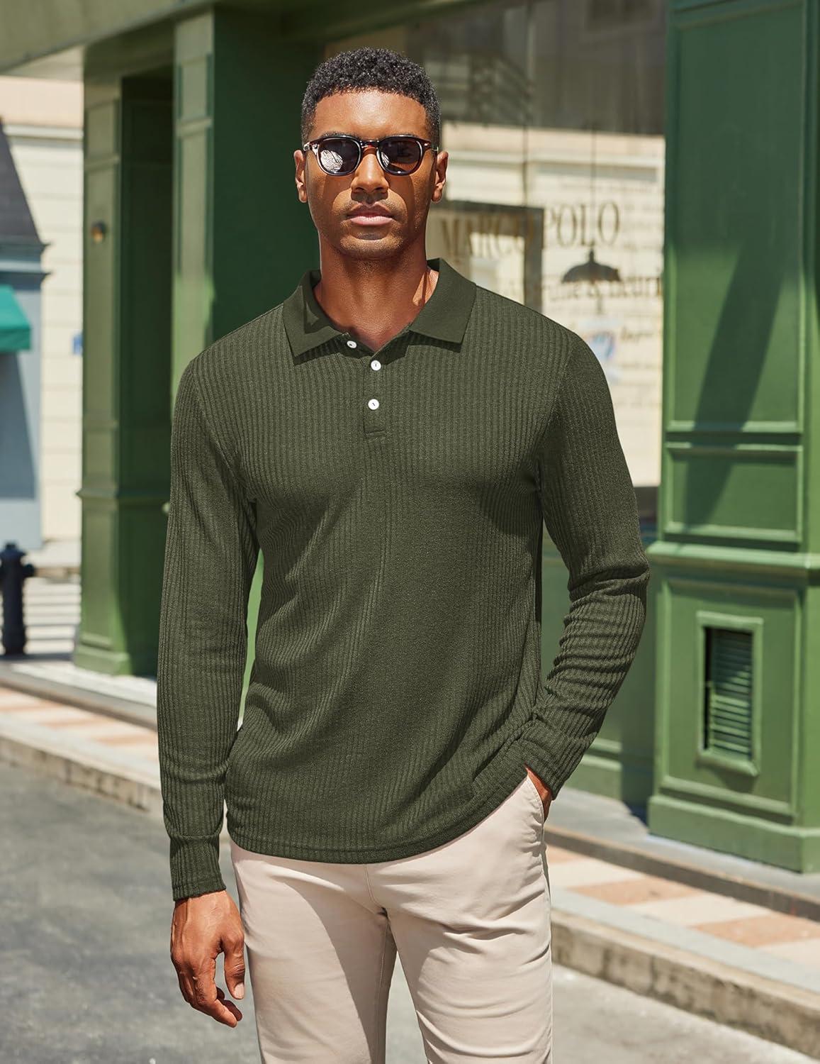 COOFANDY Mens Mock Turtleneck Sweater Short Sleeve Casual Dress Sweater Slim Fit Pullover Basic Knit Tee(Striped Khaki)