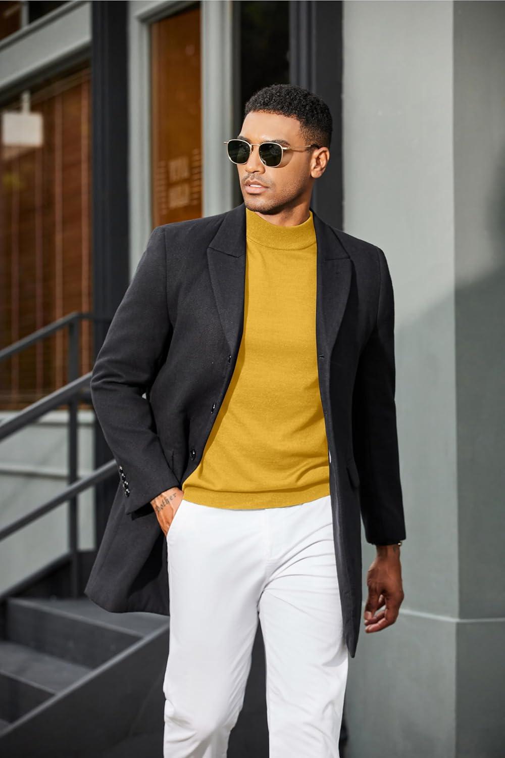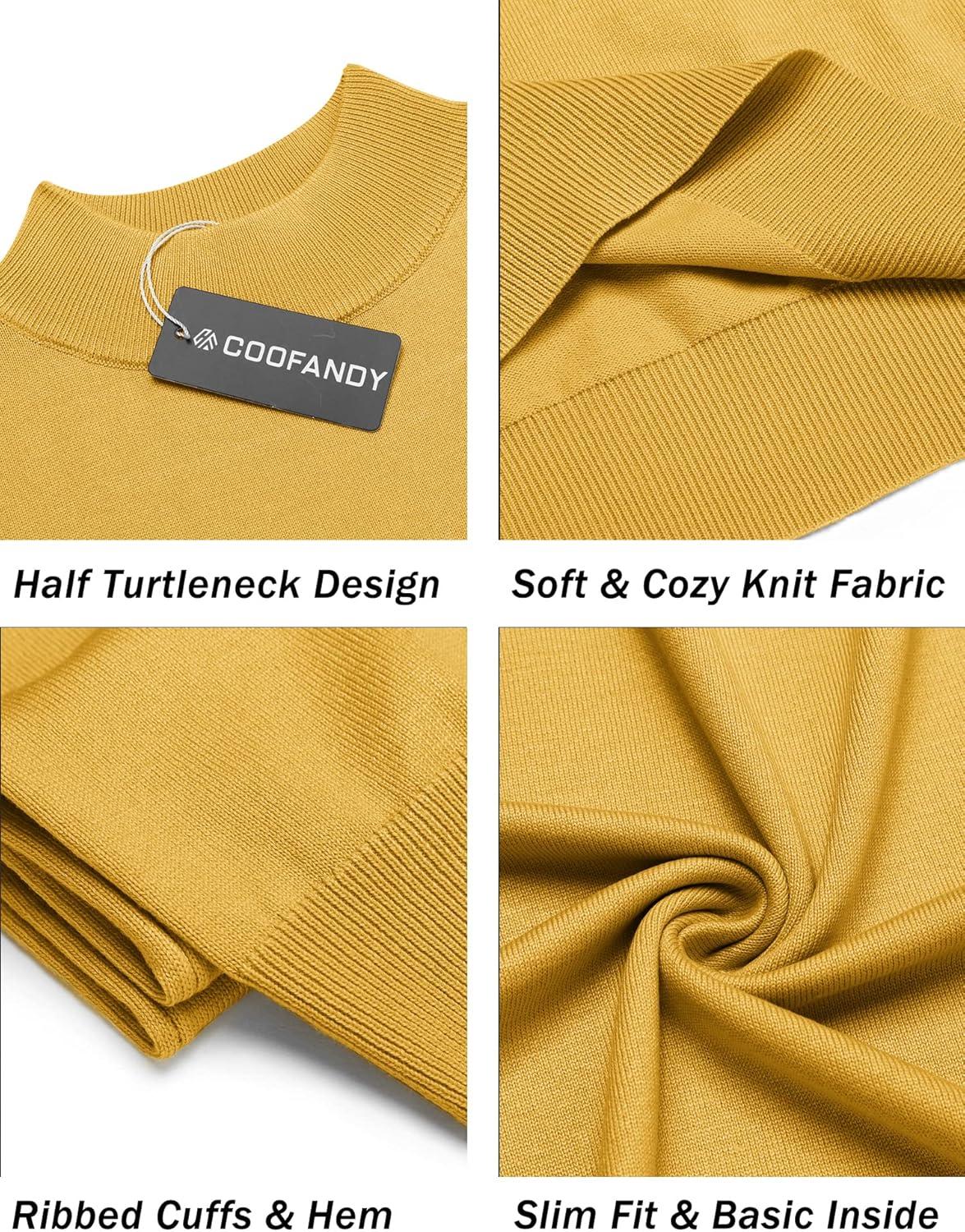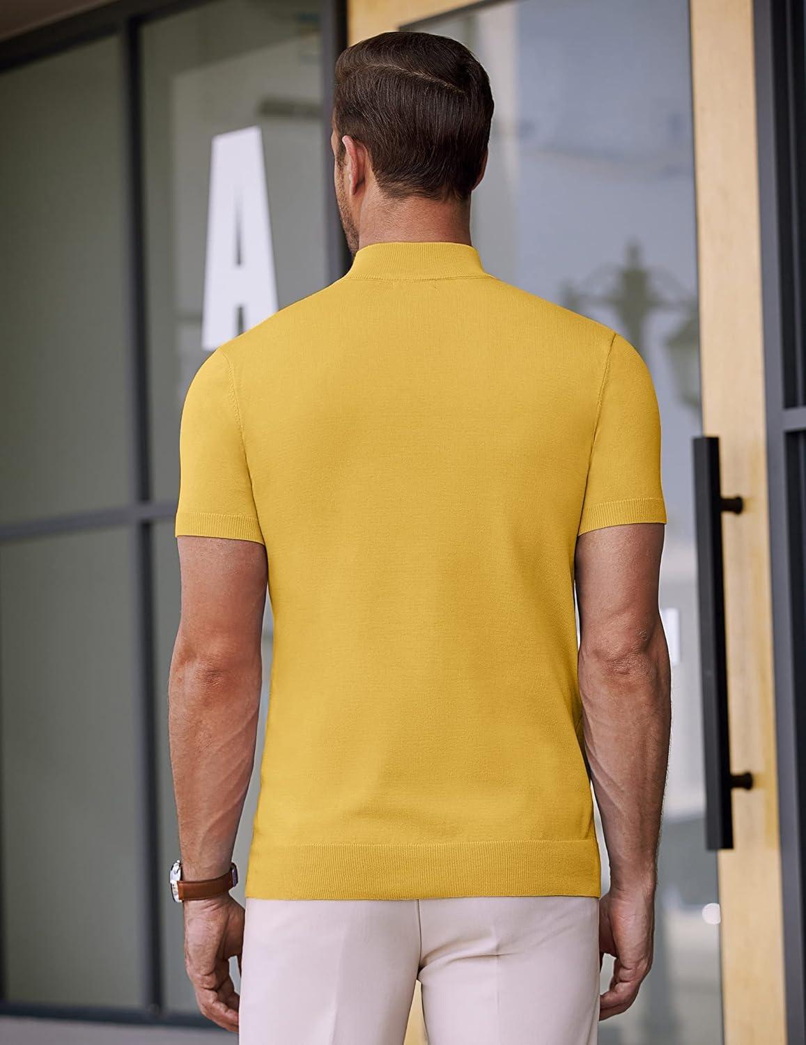COOFANDY Mens Mock Turtleneck Sweater Short Sleeve Casual Dress Sweater Slim Fit Pullover Basic Knit Tee(Yellow)