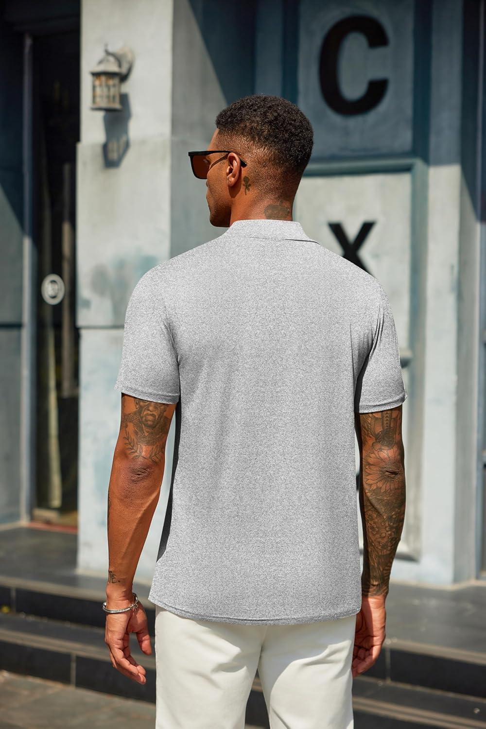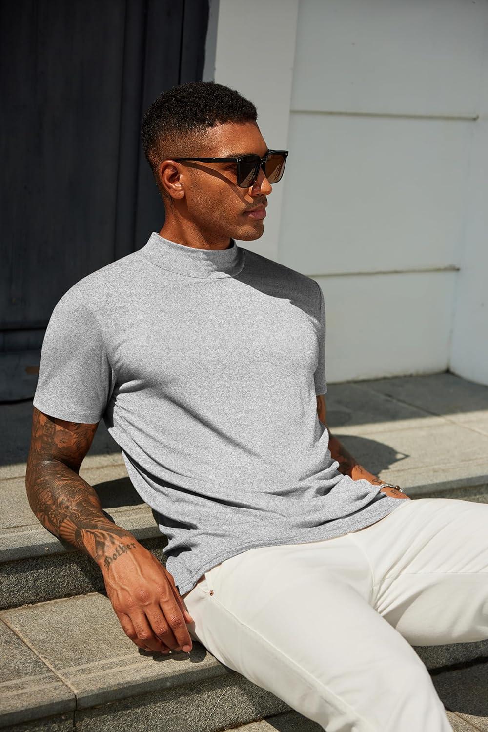 COOFANDY Men’s Mock Turtleneck T Shirt Short Sleeve Slim Fit Basic Casual Undershirt Solid Color Pullover Tee(A-light Grey)
