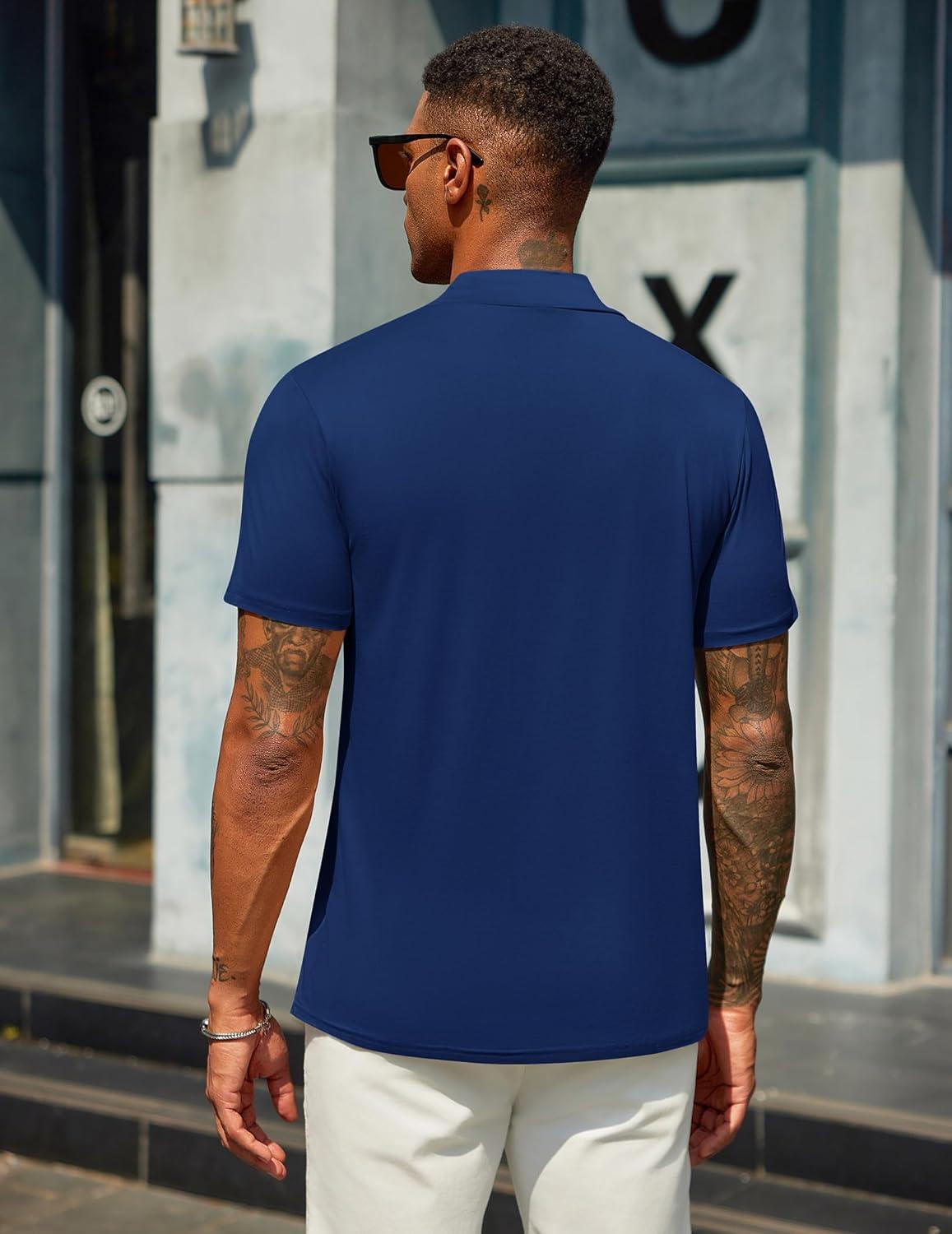 COOFANDY Men’s Mock Turtleneck T Shirt Short Sleeve Slim Fit Basic Casual Undershirt Solid Color Pullover Tee(Dark Blue)