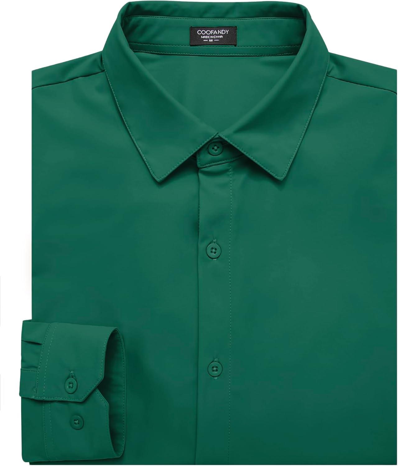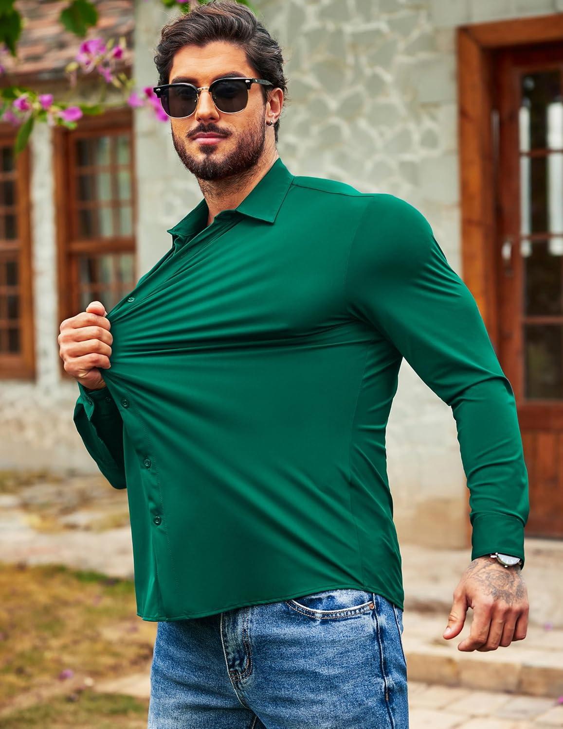 COOFANDY Men’s Muscle Fit Dress Shirts Wrinkle Free Long Sleeve Button Down Shirt Stretch Business Shirt(Evergreen)