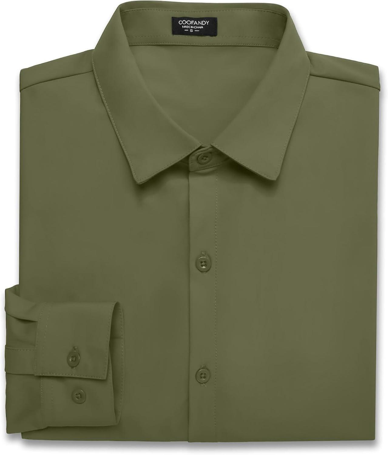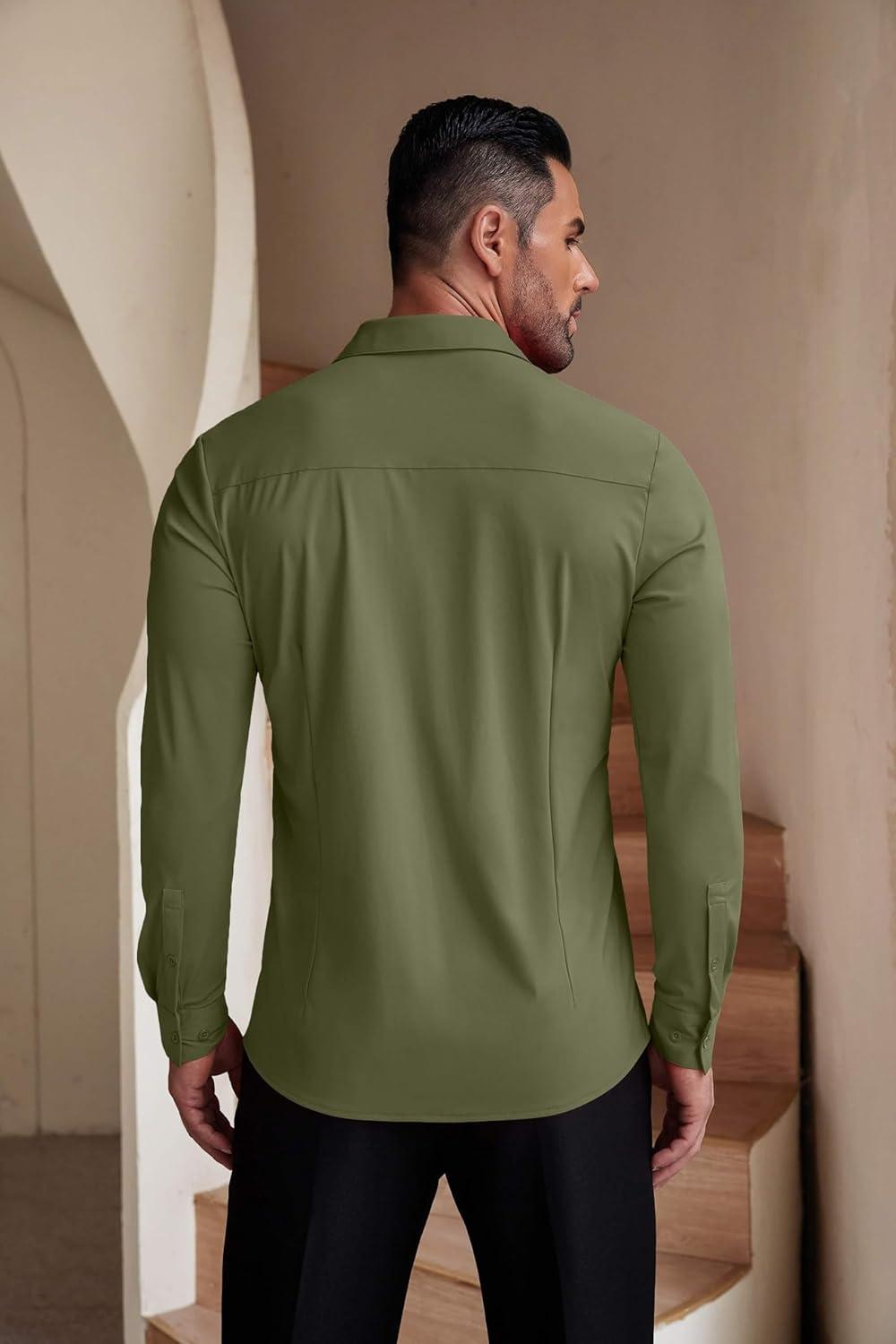 COOFANDY Men’s Muscle Fit Dress Shirts Wrinkle-Free Long Sleeve Casual Button Down Shirts(Army Green)