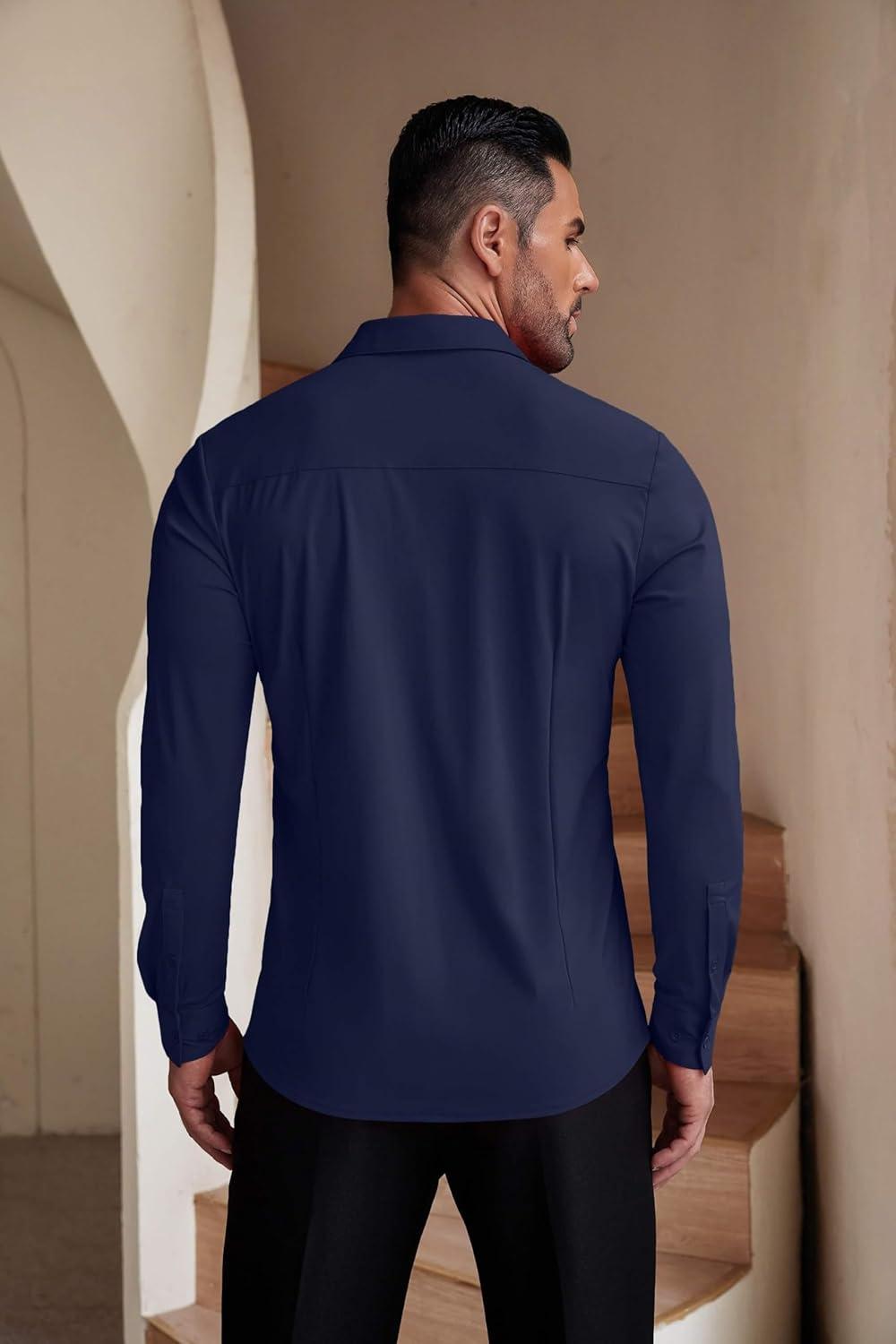 COOFANDY Men’s Muscle Fit Dress Shirts Wrinkle-Free Long Sleeve Casual Button Down Shirts(Deep Blue)