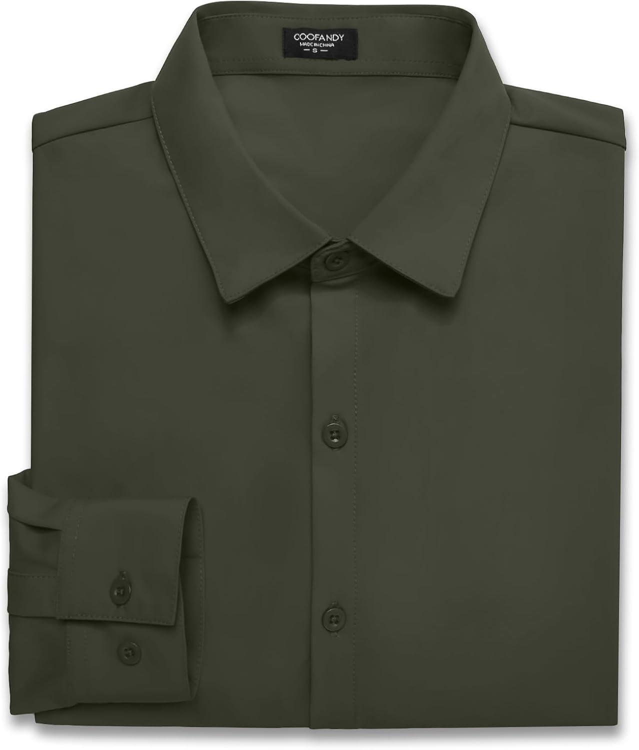 COOFANDY Men’s Muscle Fit Dress Shirts Wrinkle-Free Long Sleeve Casual Button Down Shirts(Olive Green)
