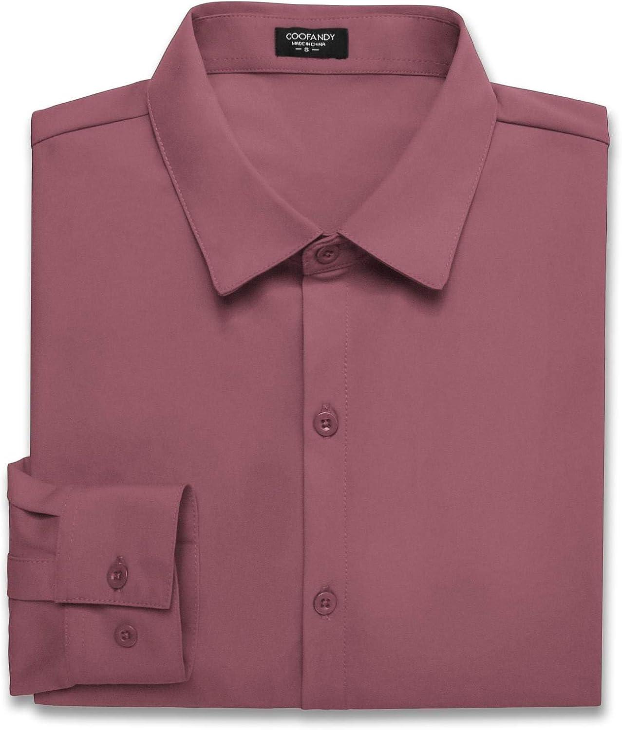 COOFANDY Men’s Muscle Fit Dress Shirts Wrinkle-Free Long Sleeve Casual Button Down Shirts(Red Purple)
