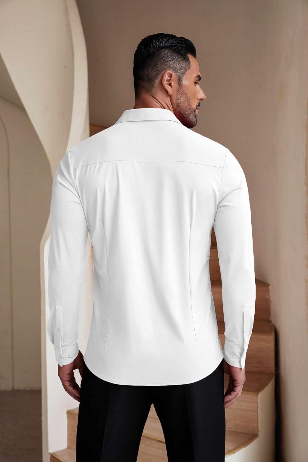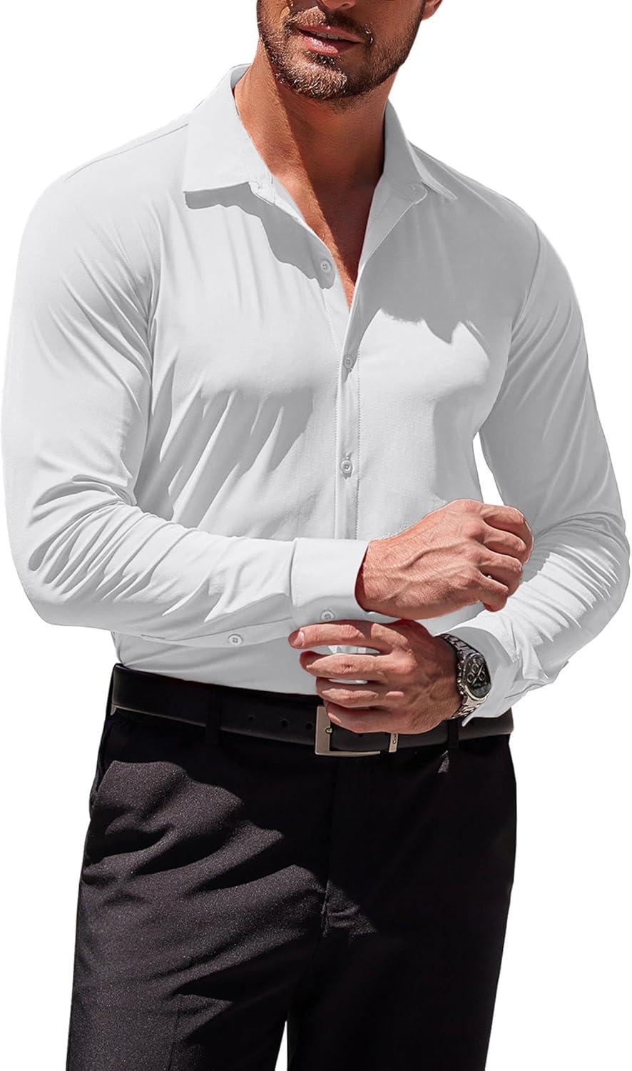 COOFANDY Men’s Muscle Fit Dress Shirts Wrinkle-Free Long Sleeve Casual Button Down Shirts(White)