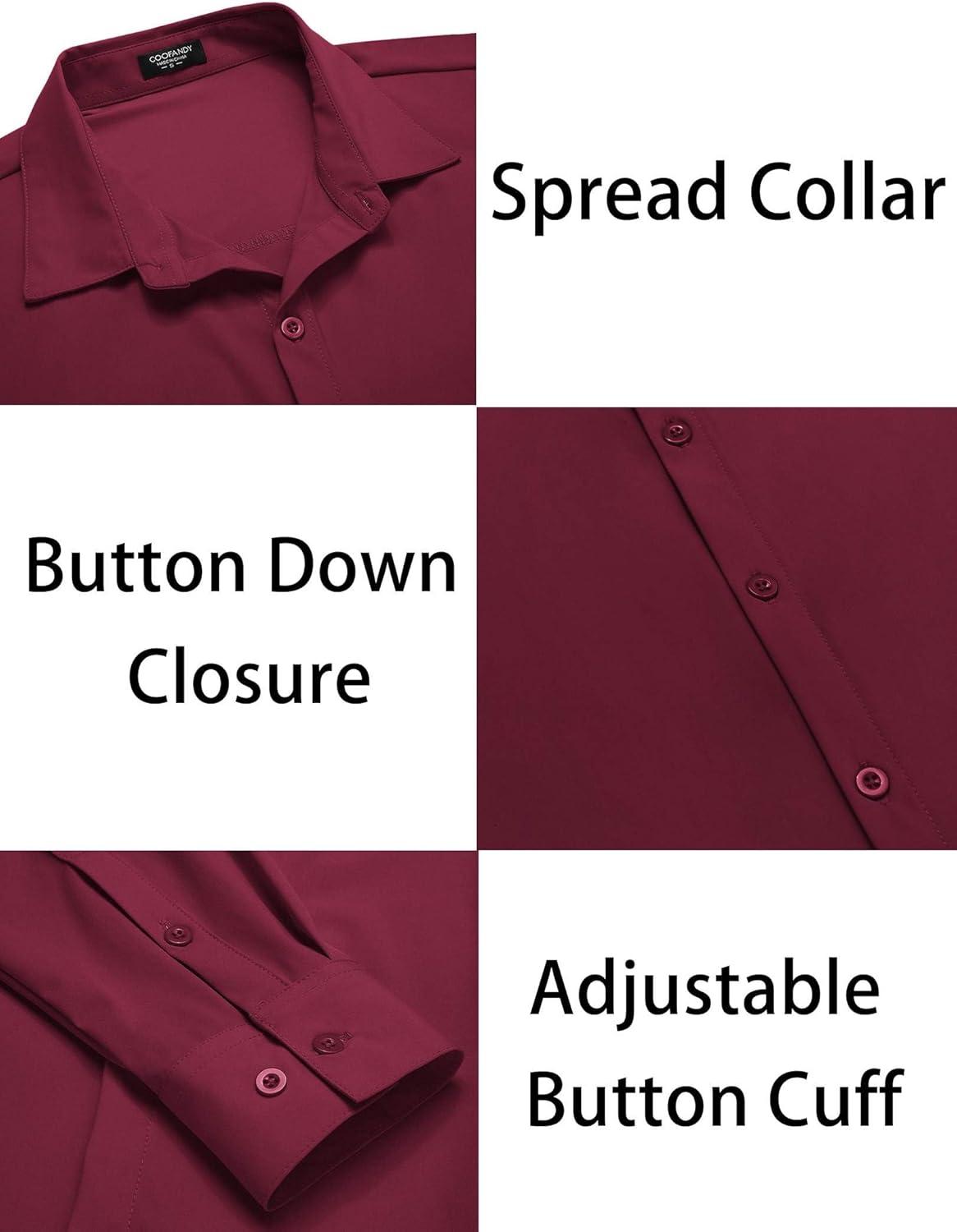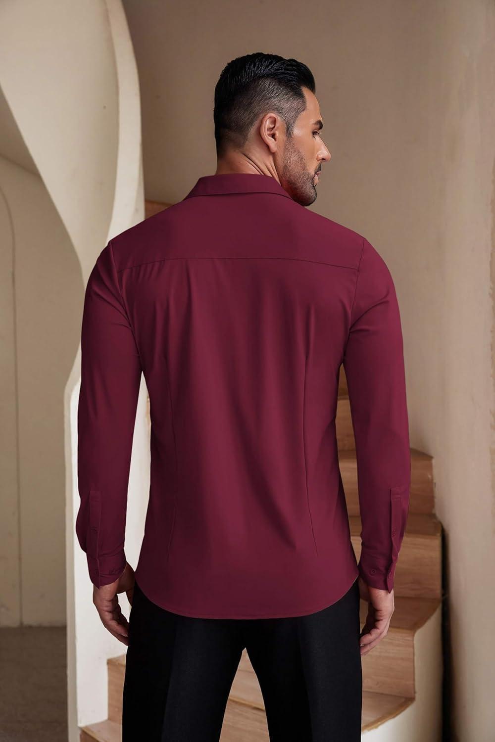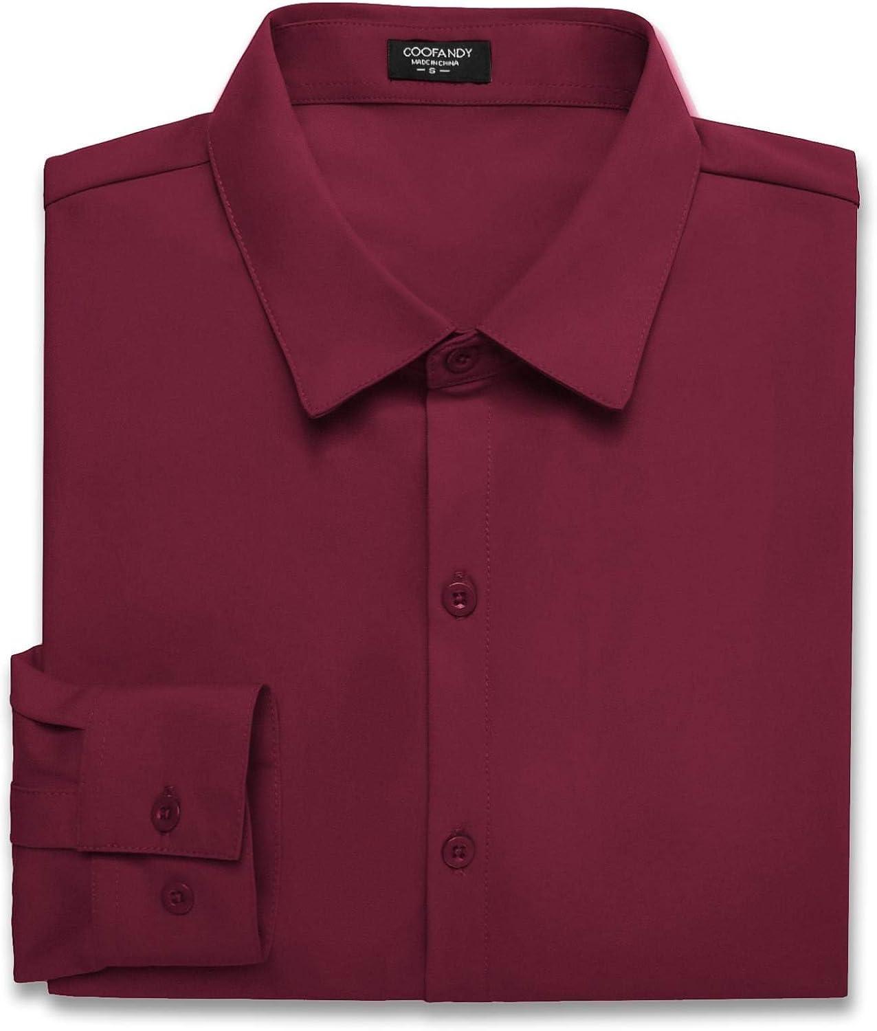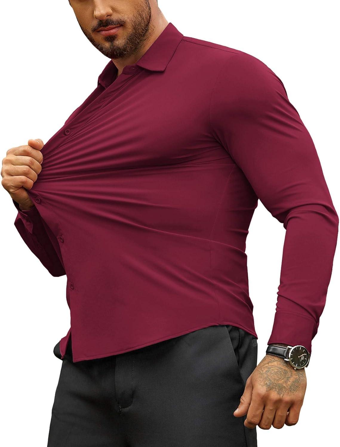 COOFANDY Men’s Muscle Fit Dress Shirts Wrinkle-Free Long Sleeve Casual Button Down Shirts(Wine Red)