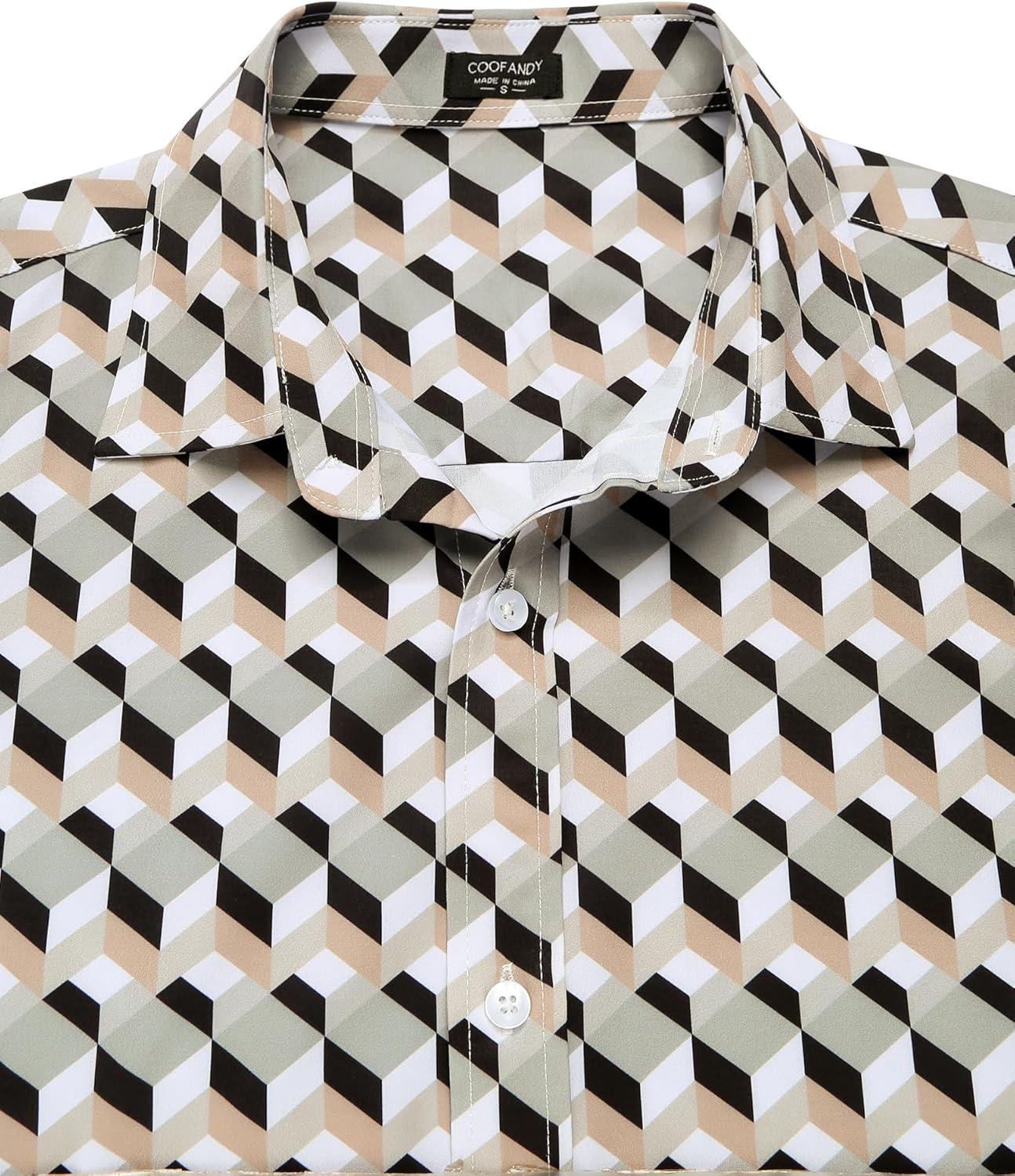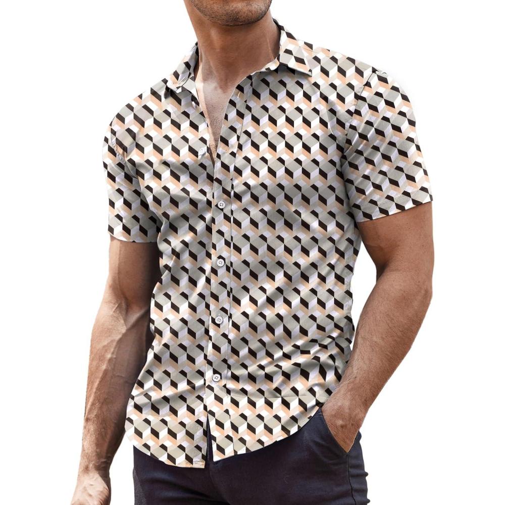 COOFANDY Men’s Muscle Fit Dress Shirts Wrinkle-Free Short Sleeve Casual Button Down Shirt(Grey/Beige-1)