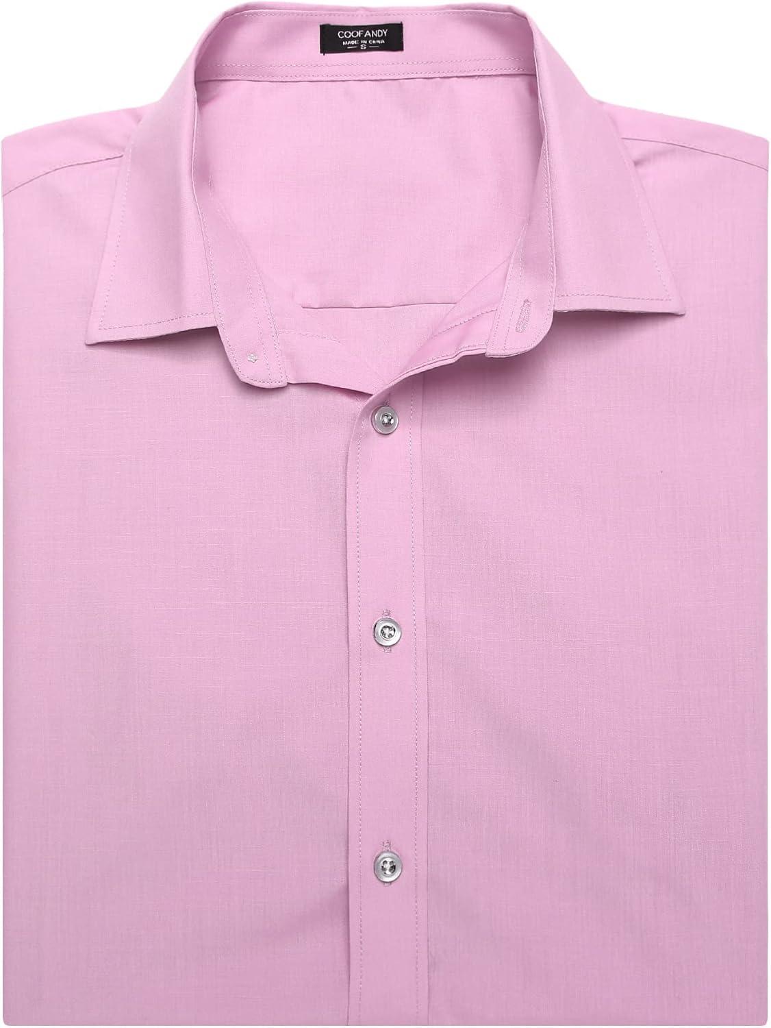 COOFANDY Men’s Muscle Fit Dress Shirts Wrinkle-Free Short Sleeve Casual Button Down Shirt(Light Pink)