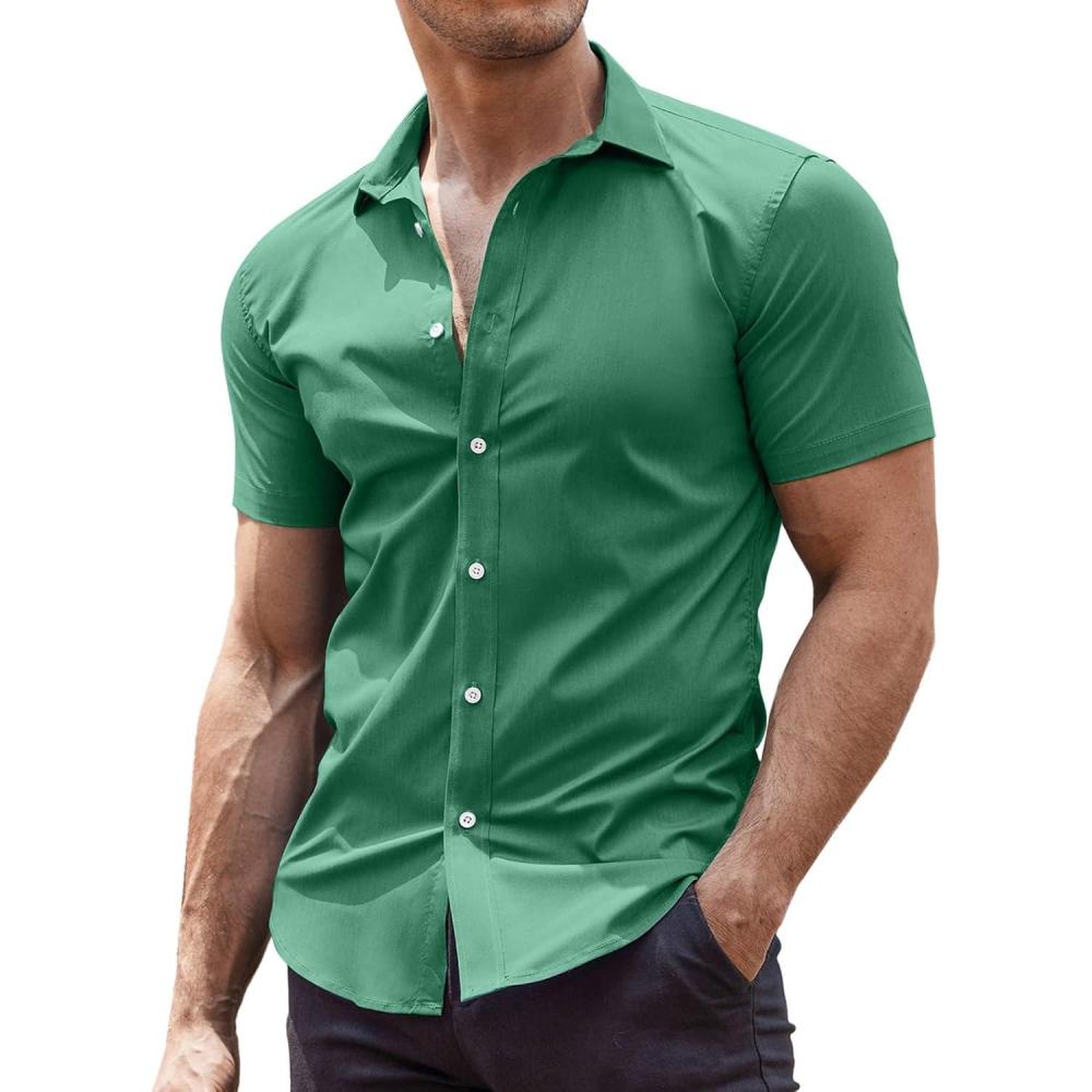 COOFANDY Men’s Muscle Fit Dress Shirts Wrinkle-Free Short Sleeve Casual Button Down Shirt(Ocean Mist)
