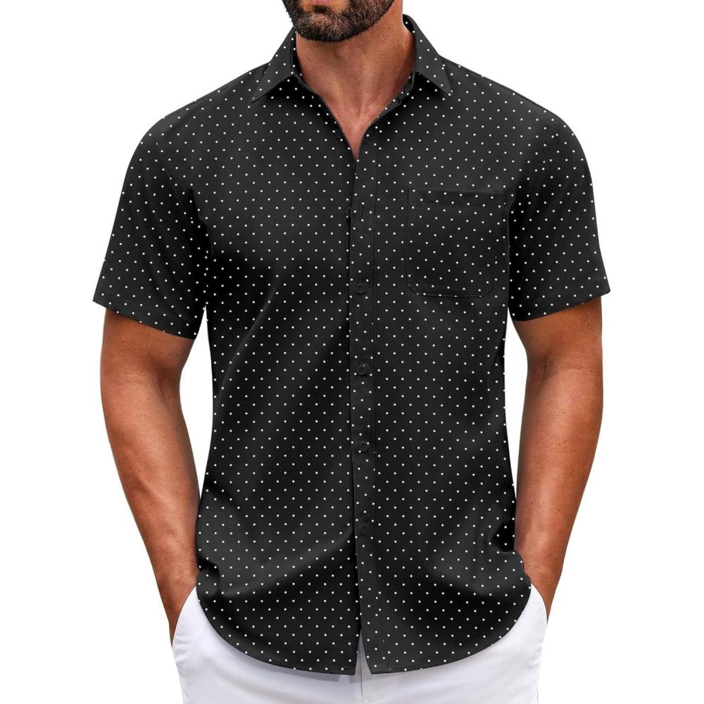 COOFANDY Men’s Muscle Fit Dress Shirts Wrinkle-Free Short Sleeve Casual Button Down Shirt(White Dot-black)