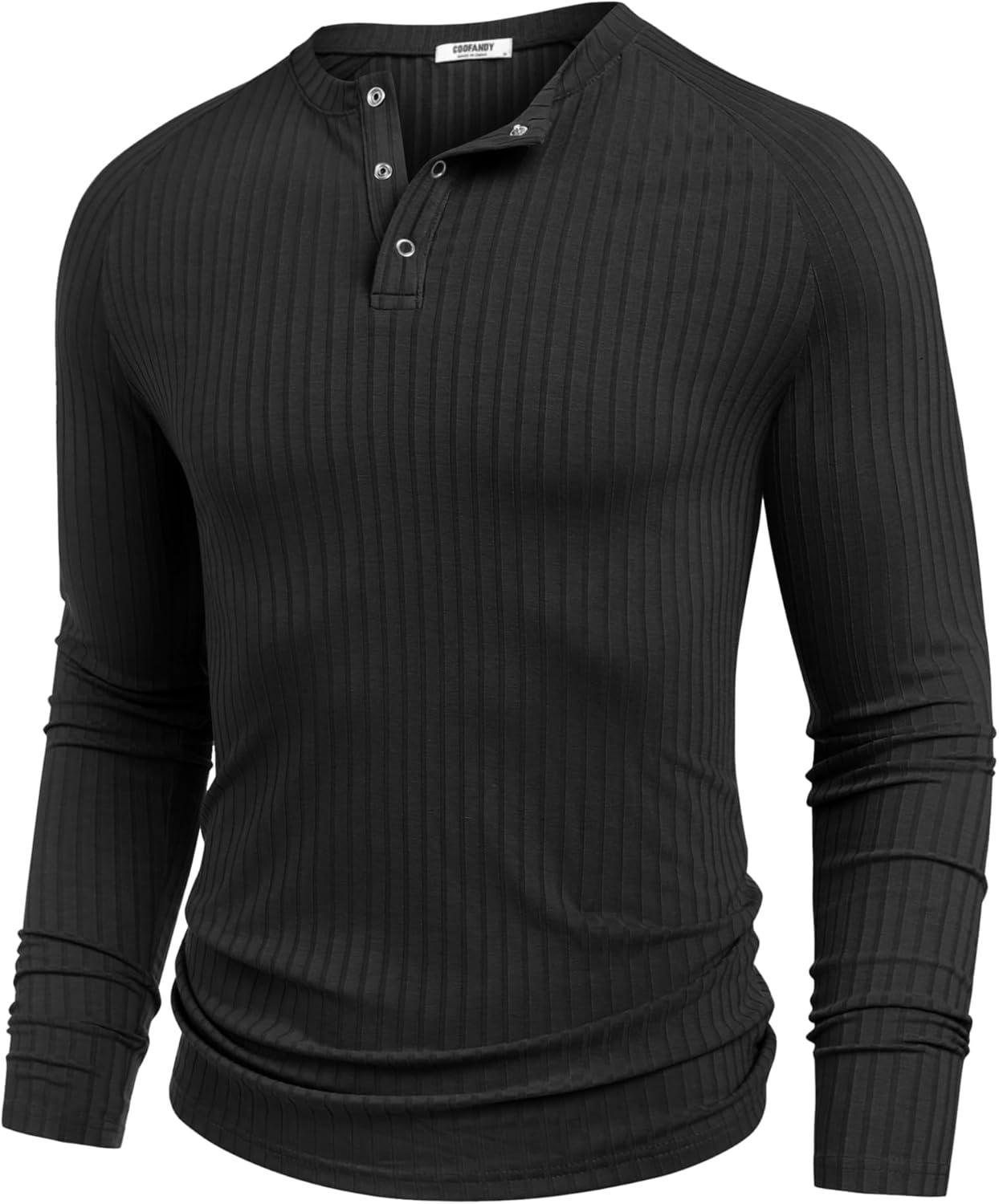 COOFANDY Men’s Muscle Slim Fit T-Shirt Long Sleeve Henley Shirts Casual Gym Workout Athletic Tee Shirts(Black)