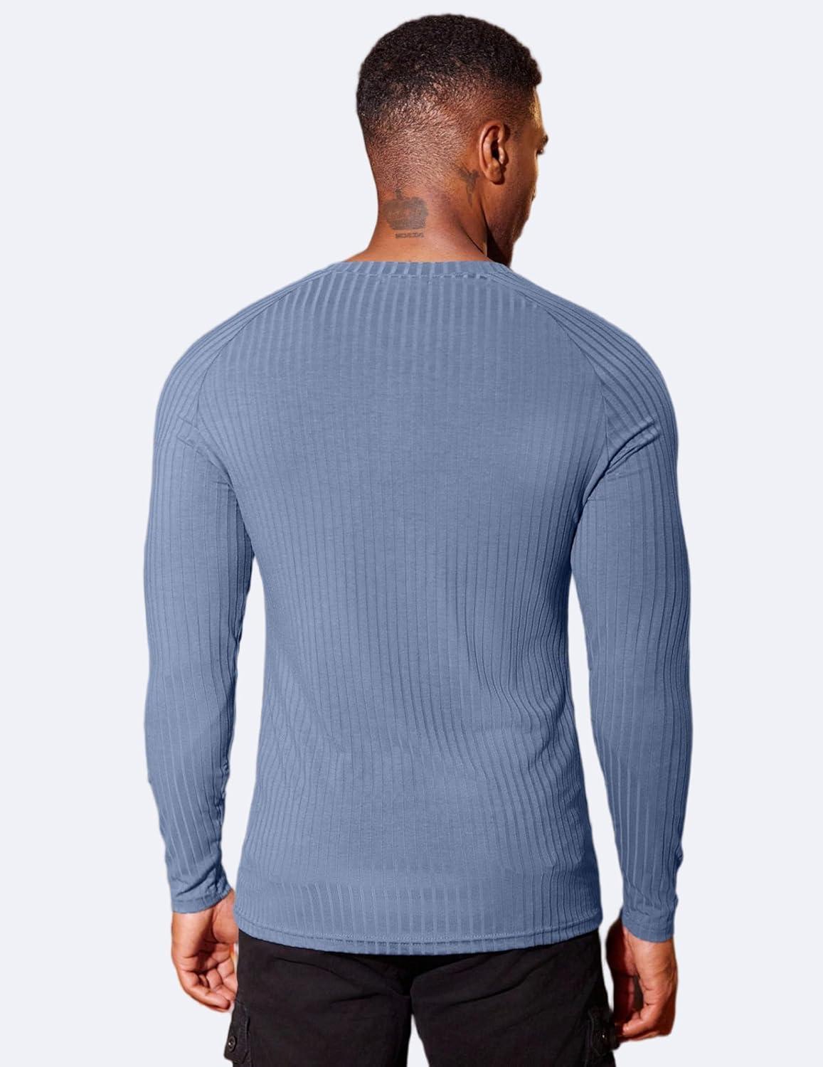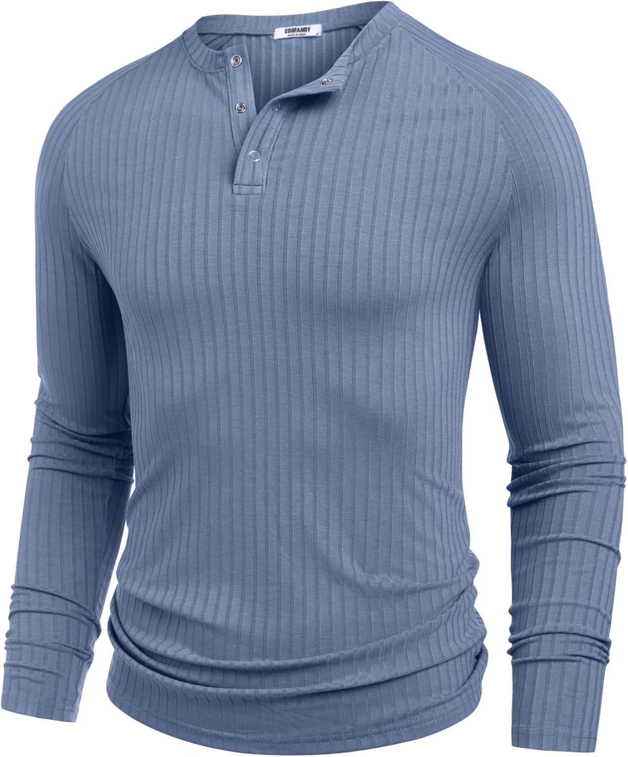 COOFANDY Men’s Muscle Slim Fit T-Shirt Long Sleeve Henley Shirts Casual Gym Workout Athletic Tee Shirts(Blue)