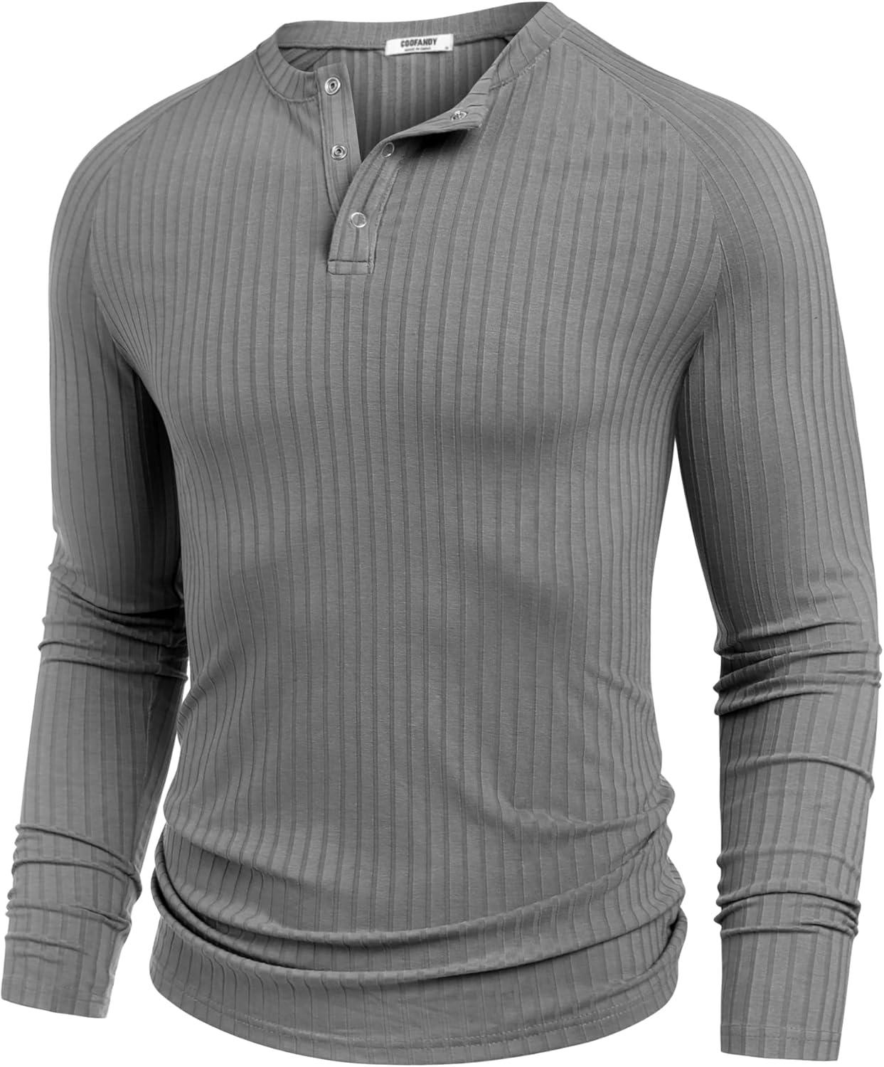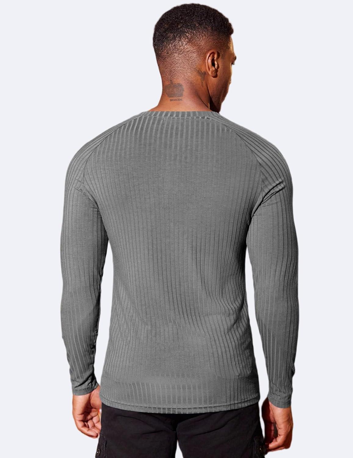COOFANDY Men’s Muscle Slim Fit T-Shirt Long Sleeve Henley Shirts Casual Gym Workout Athletic Tee Shirts(Grey)