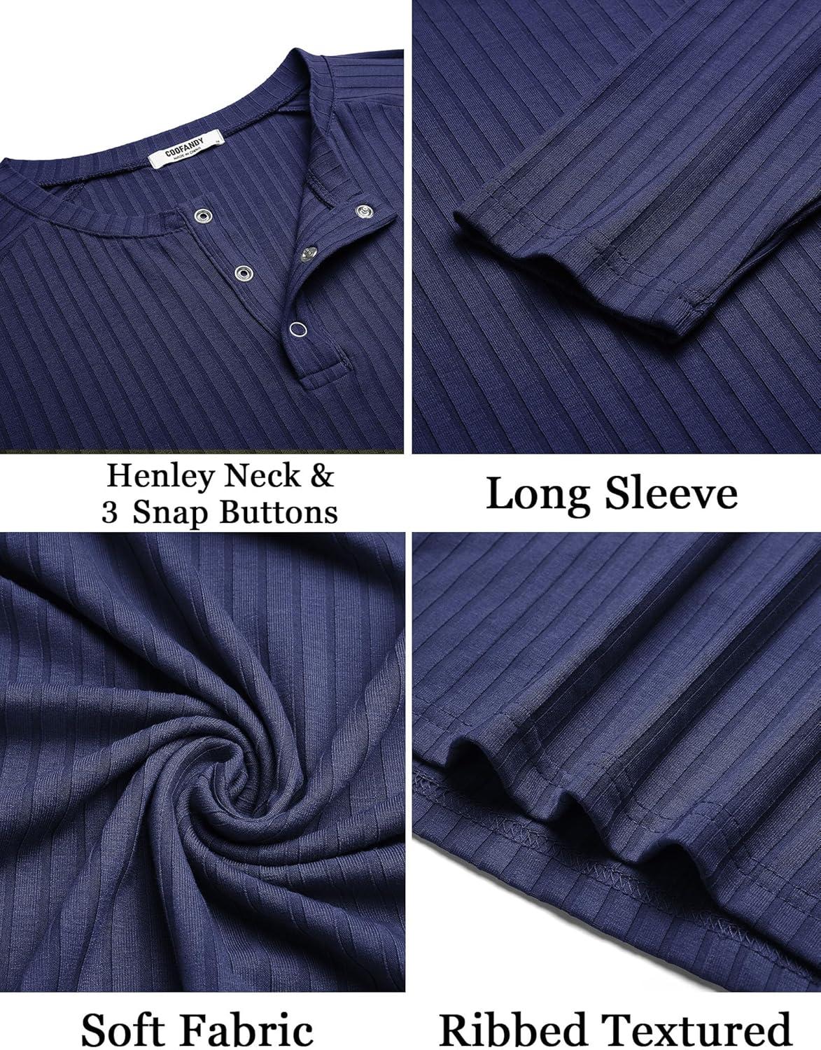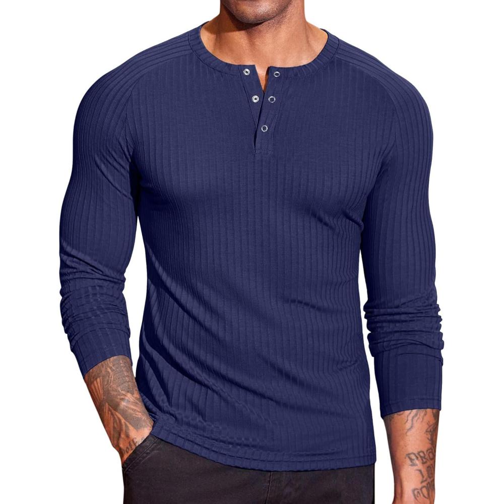 COOFANDY Men’s Muscle Slim Fit T-Shirt Long Sleeve Henley Shirts Casual Gym Workout Athletic Tee Shirts(Navy Blue)
