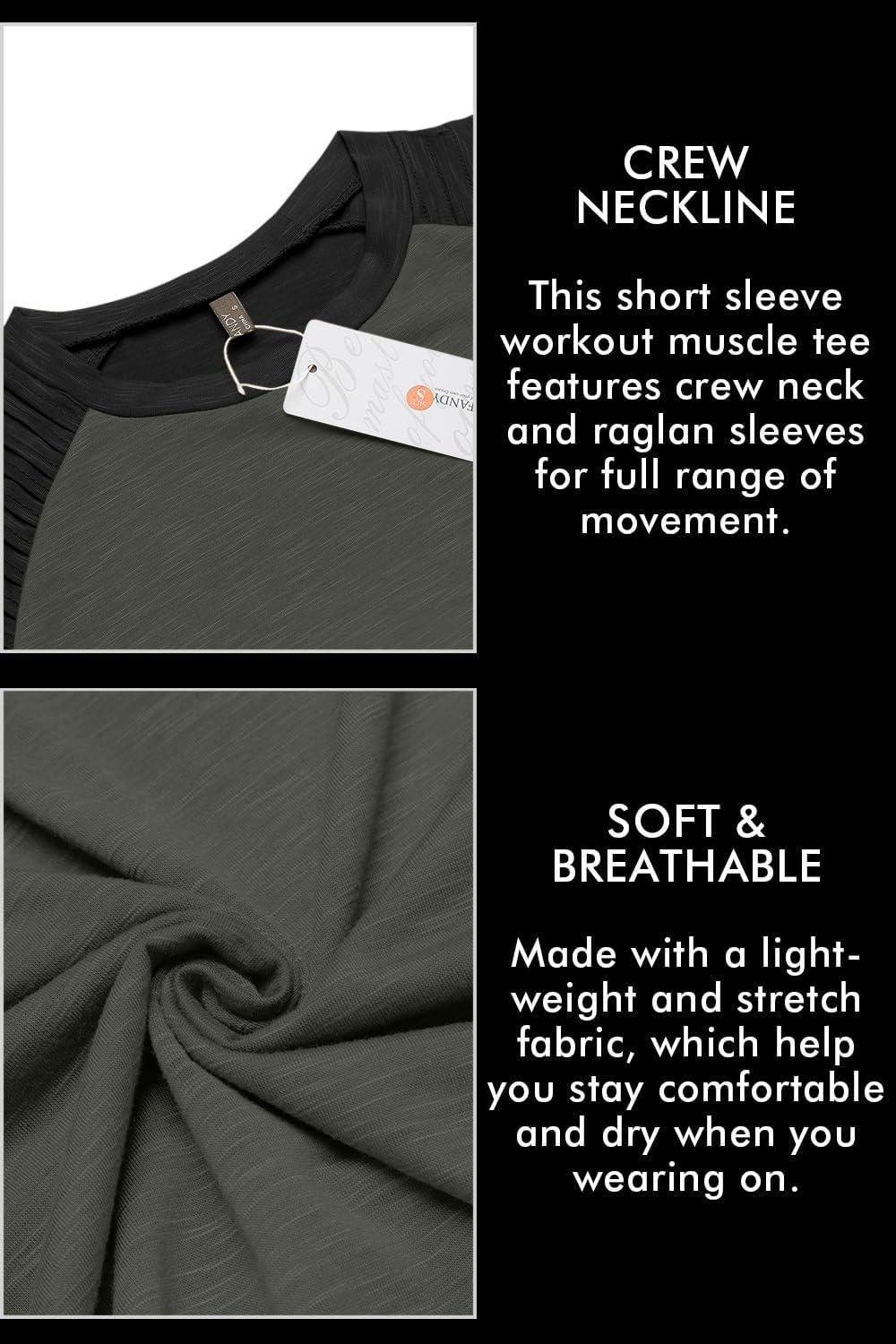 COOFANDY Men’s Muscle T-Shirt Pleated Raglan Sleeve Bodybuilding Gym Tee Short Sleeve Fashion Workout Shirts Hipster Shirt(Pattern3 (Grey & Black))