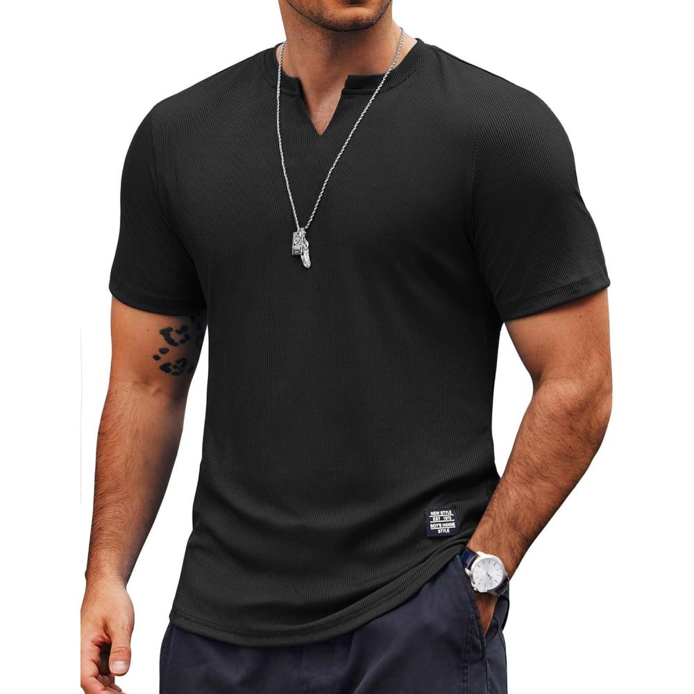 COOFANDY Mens Muscle T-Shirts V-Neck Slim Fit Workout Shirt Short Sleeve Longline Gym Athletic Tee Shirts(A-black)