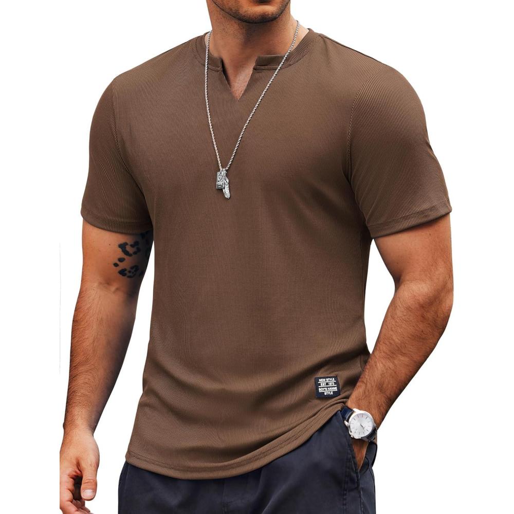 COOFANDY Mens Muscle T-Shirts V-Neck Slim Fit Workout Shirt Short Sleeve Longline Gym Athletic Tee Shirts(Brown)