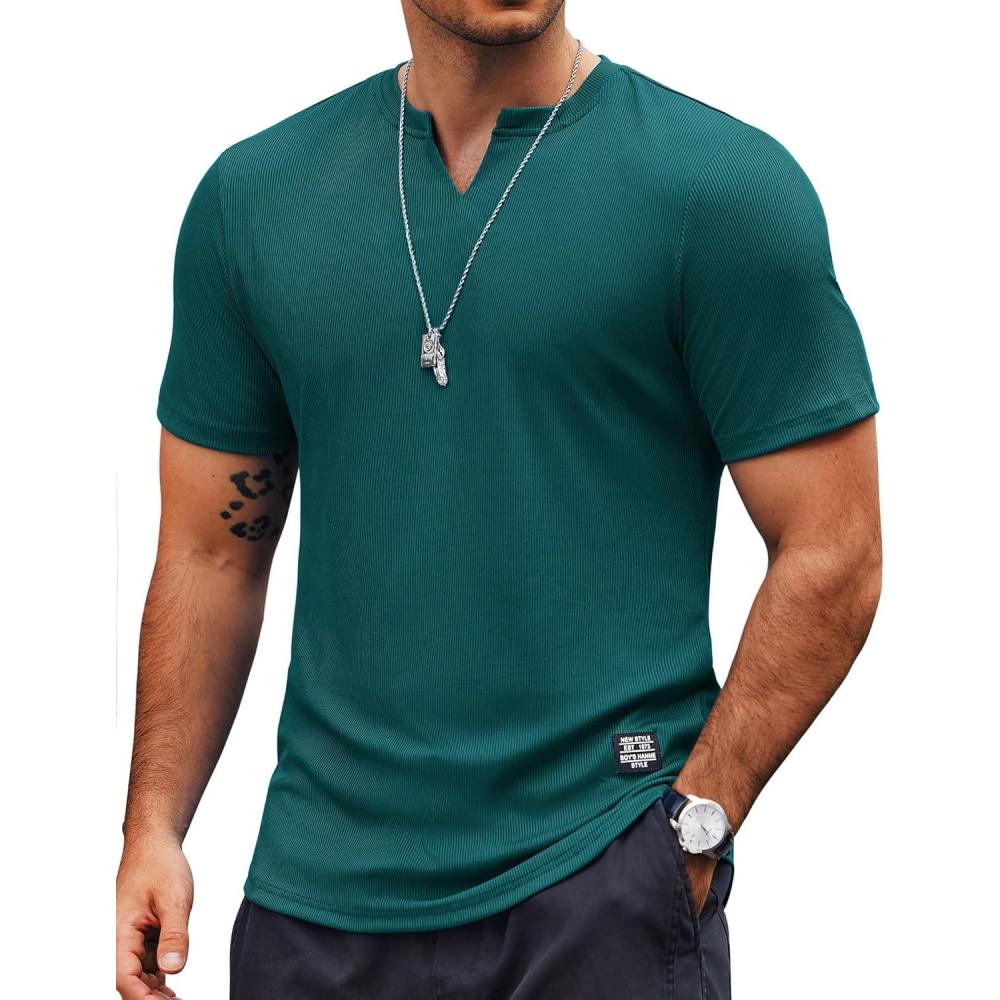 COOFANDY Mens Muscle T-Shirts V-Neck Slim Fit Workout Shirt Short Sleeve Longline Gym Athletic Tee Shirts(Green)