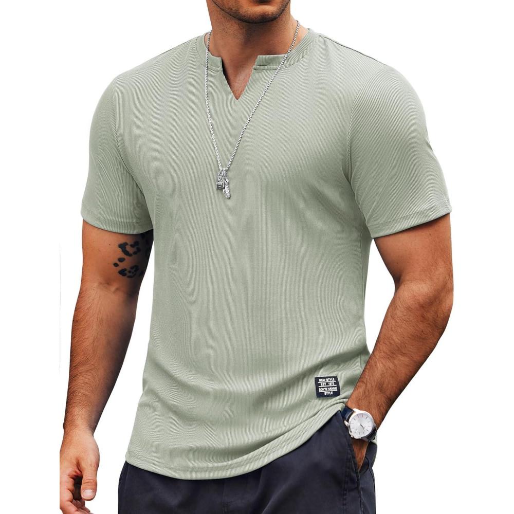 COOFANDY Mens Muscle T-Shirts V-Neck Slim Fit Workout Shirt Short Sleeve Longline Gym Athletic Tee Shirts(Light Green)