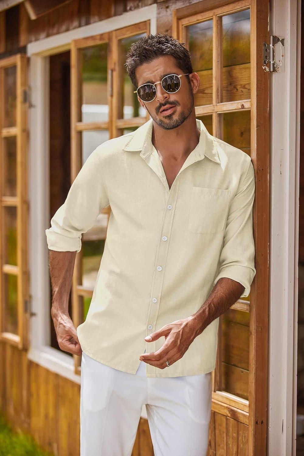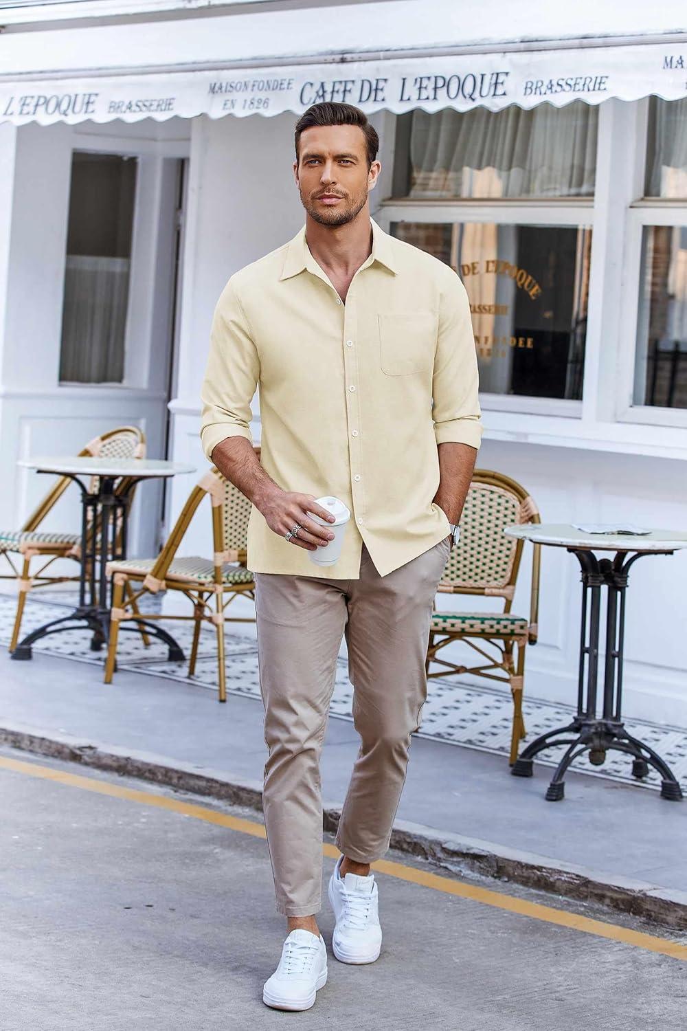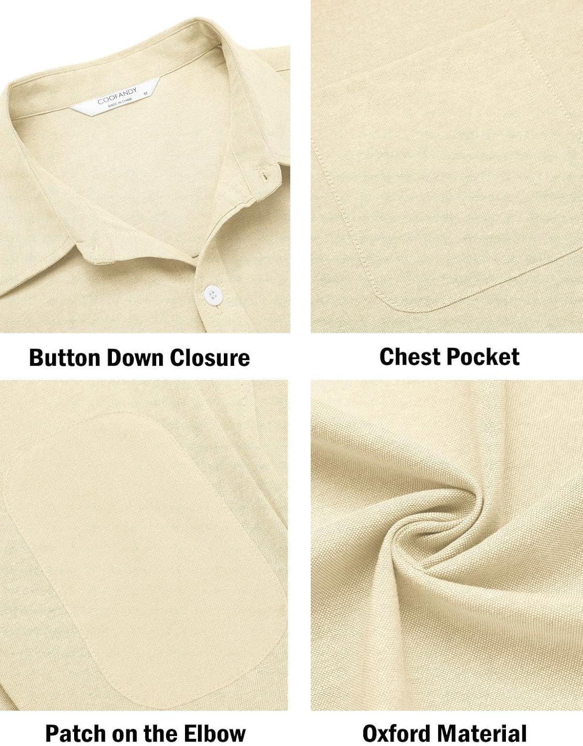 COOFANDY Men’s Oxford Shirt Long Sleeve Casual Button Down Shirts Regular Fit Dress Shirts(Beige)