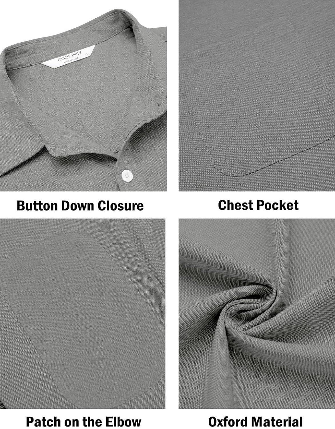 COOFANDY Men’s Oxford Shirt Long Sleeve Casual Button Down Shirts Regular Fit Dress Shirts(Dark Grey)