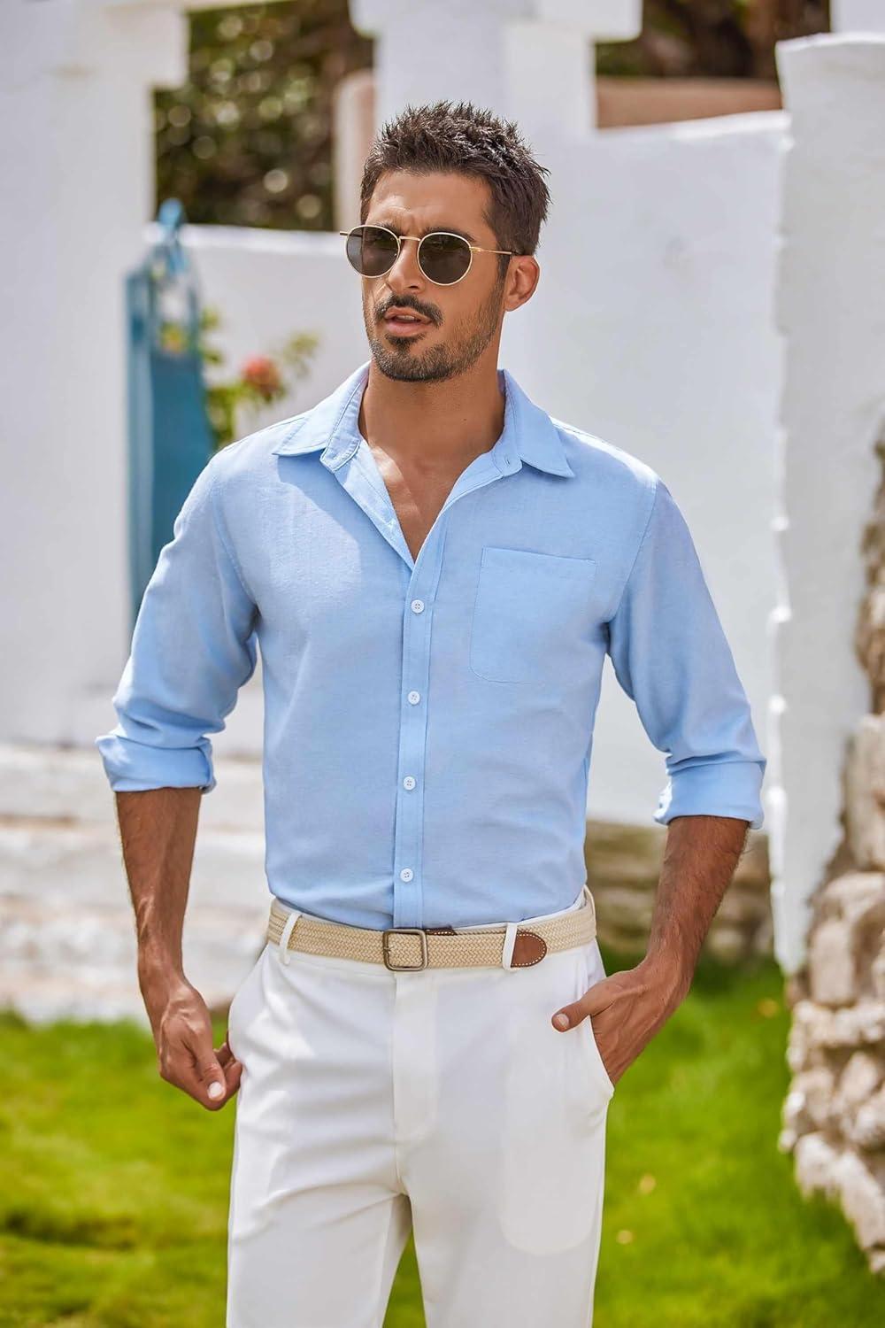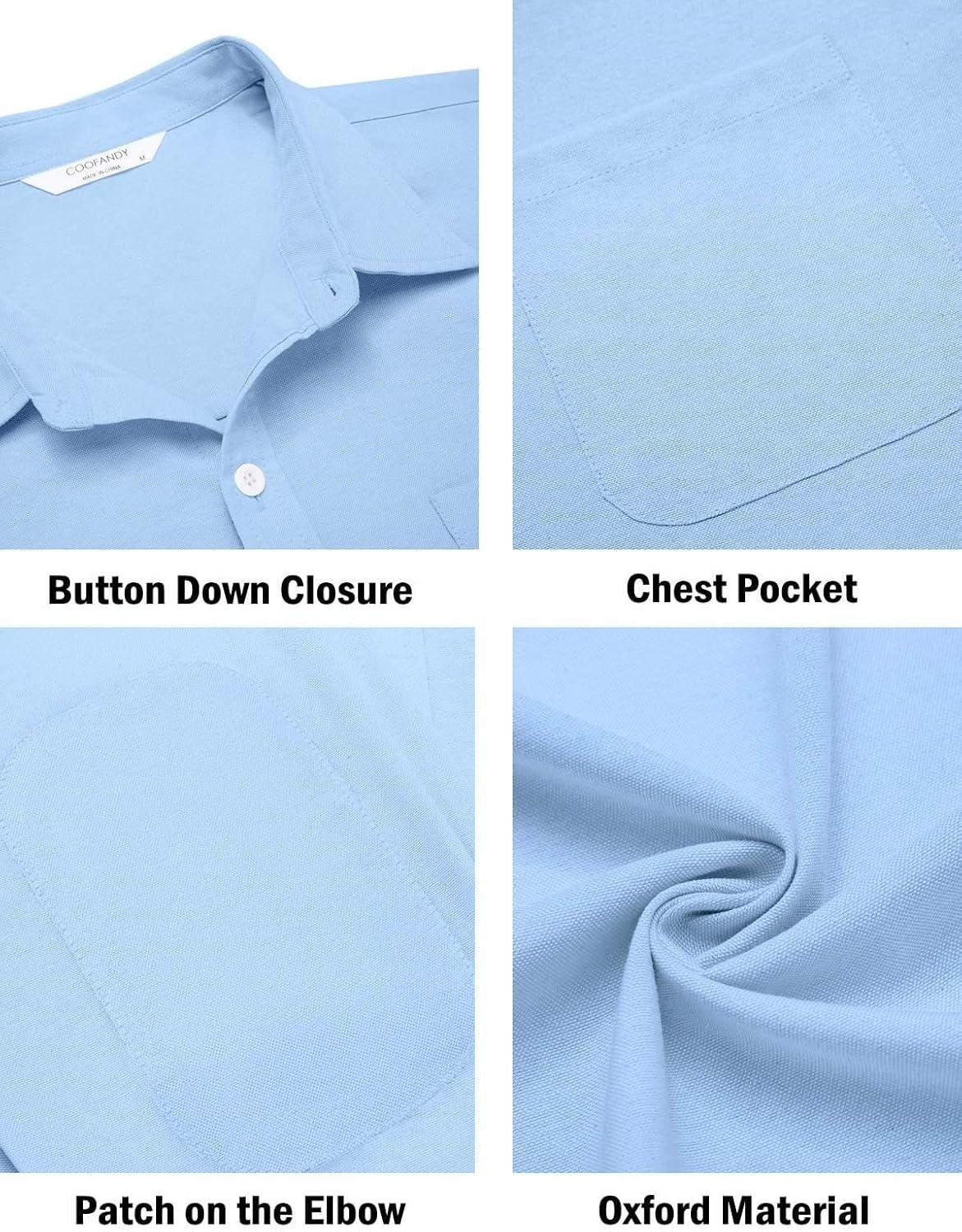 COOFANDY Men’s Oxford Shirt Long Sleeve Casual Button Down Shirts Regular Fit Dress Shirts(Light Blue)