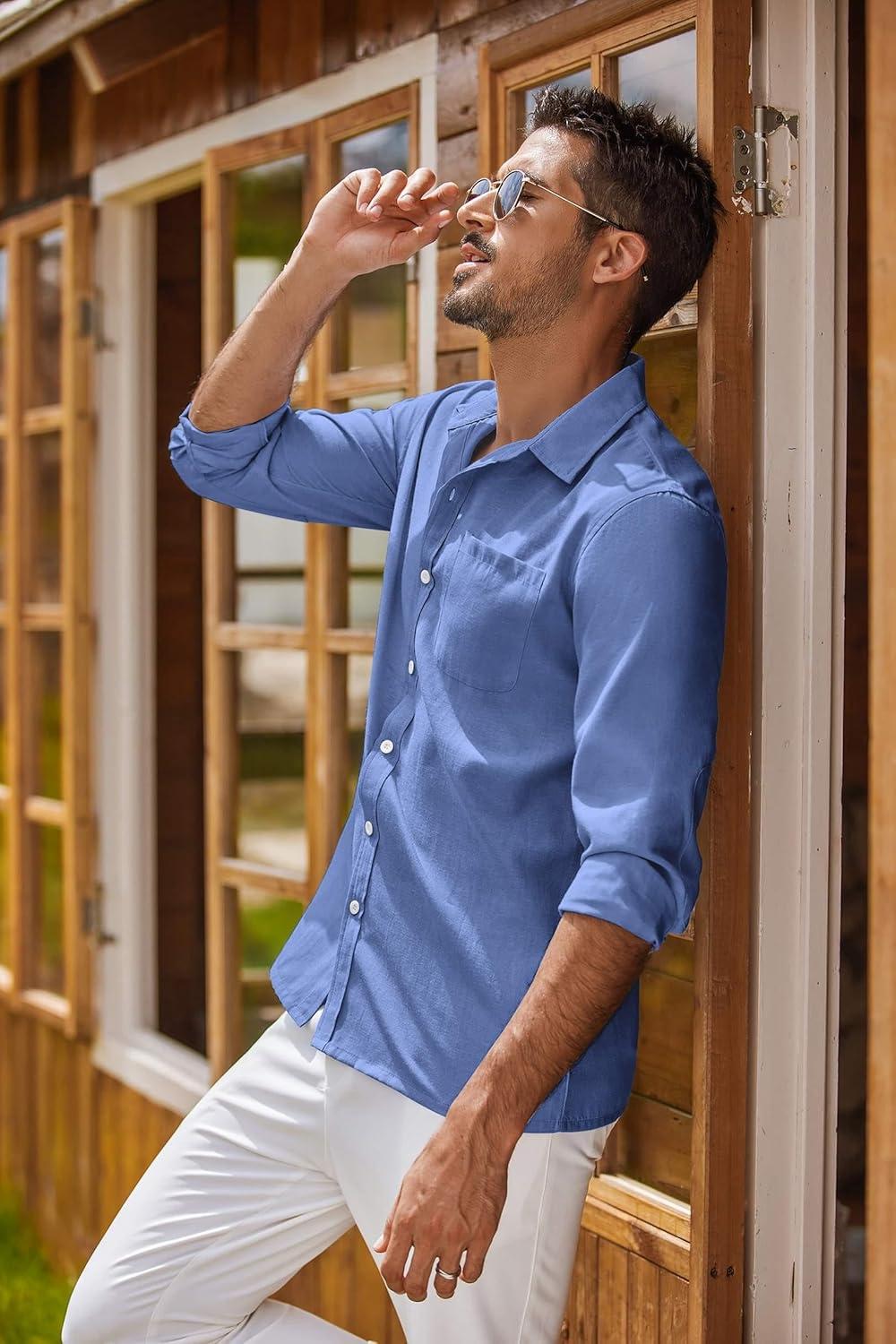 COOFANDY Men’s Oxford Shirt Long Sleeve Casual Button Down Shirts Regular Fit Dress Shirts(Royal Blue)