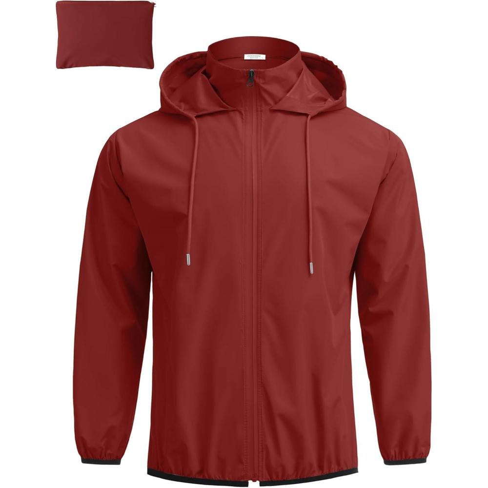 COOFANDY Men’s Packable Rain Jacket Lightweight Waterproof Raincoat with Hood Travel Hiking Golf Windbreaker(Wine Red)