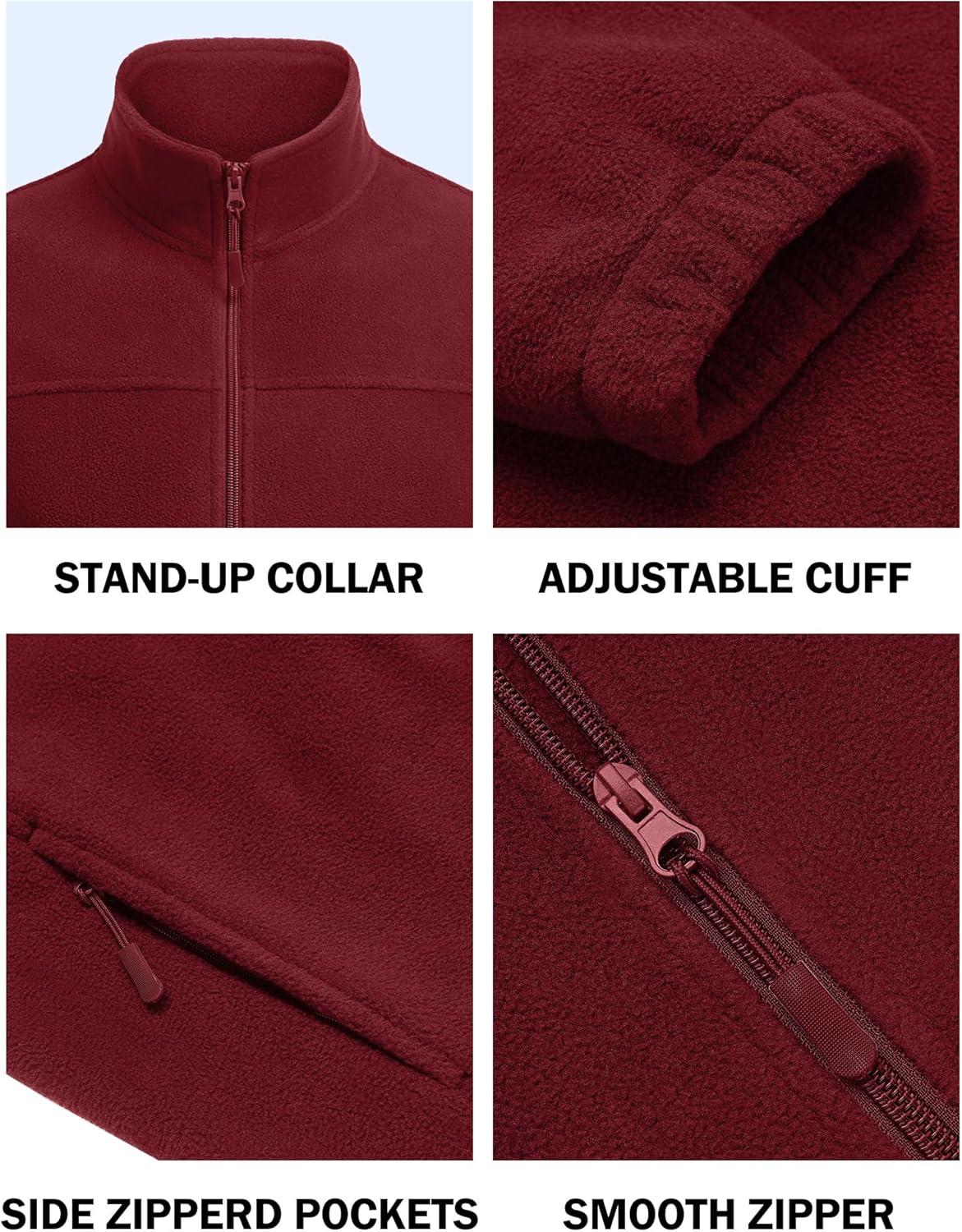 COOFANDY Men’s Polar Fleece Jacket Lightweight Full Zip Jackets Outdoor Hiking Casual Soft Warm Coat With Pockets(Wine Red)