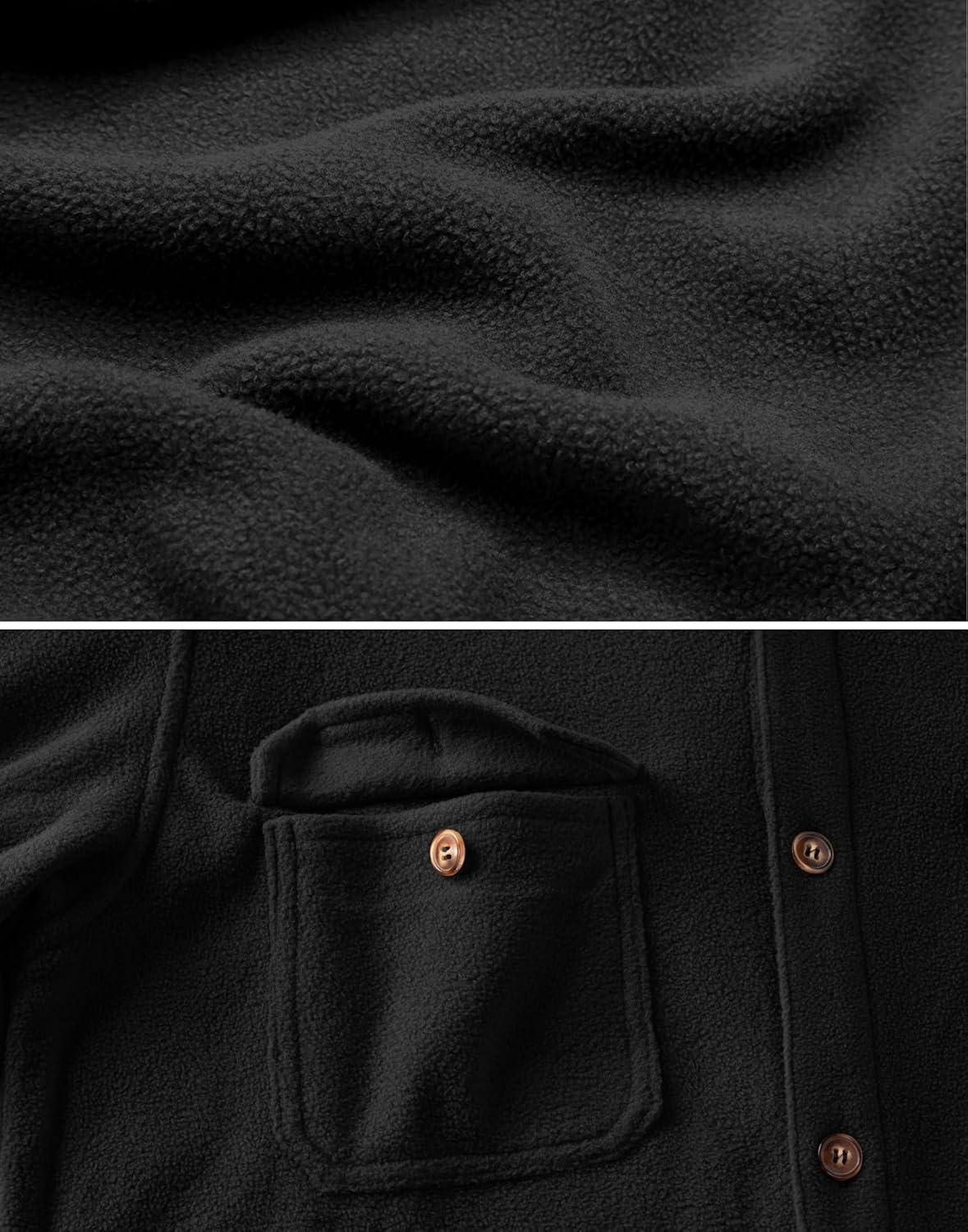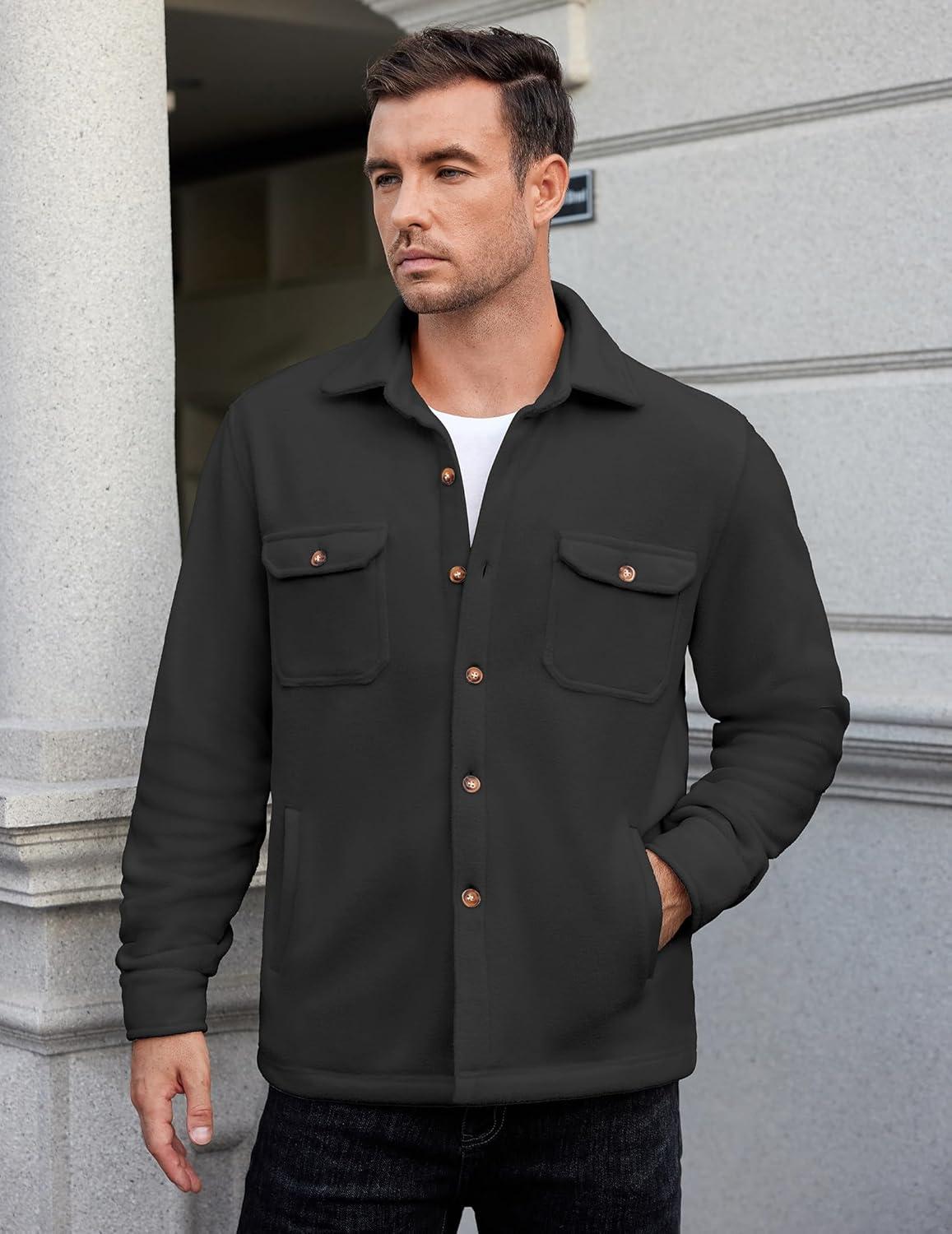 COOFANDY Men’s Polar Fleece Shacket Long Sleeve Casual Button Down Shirt Jacket with Pockets(Black)