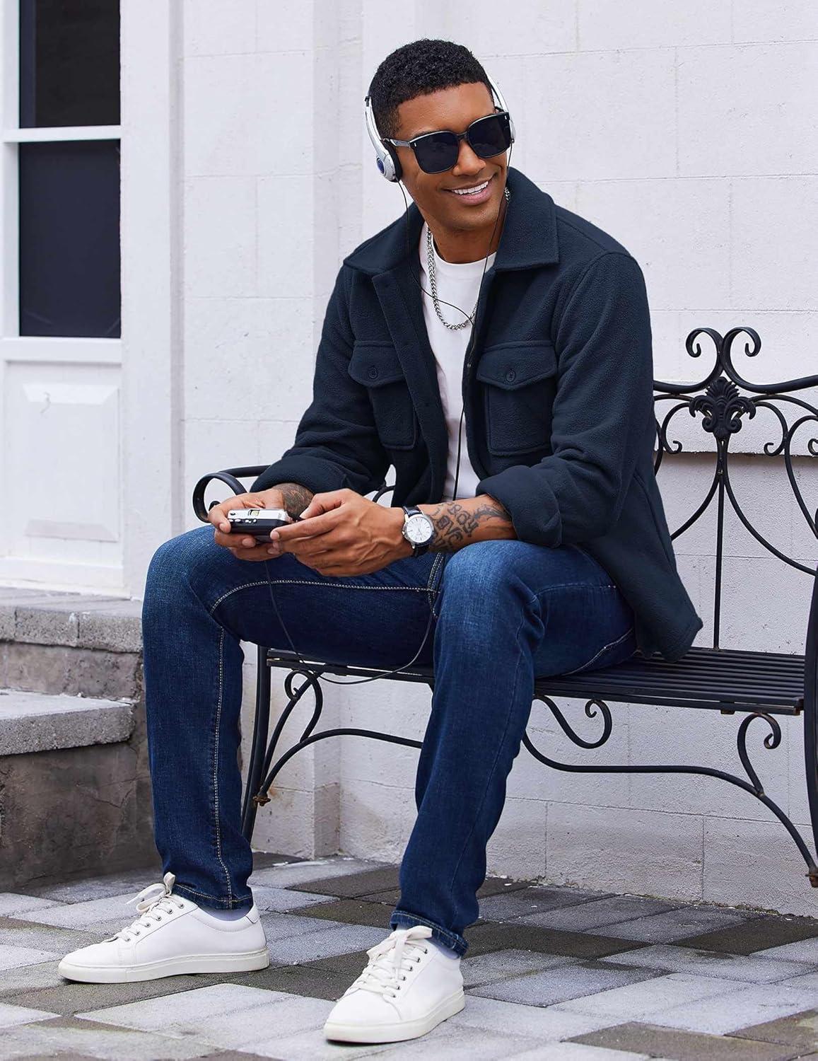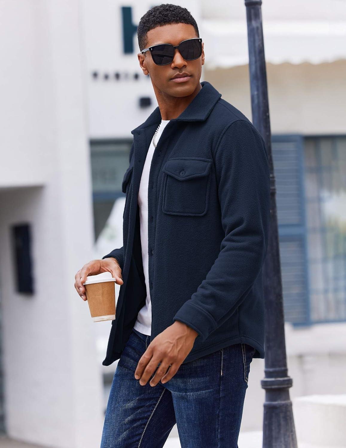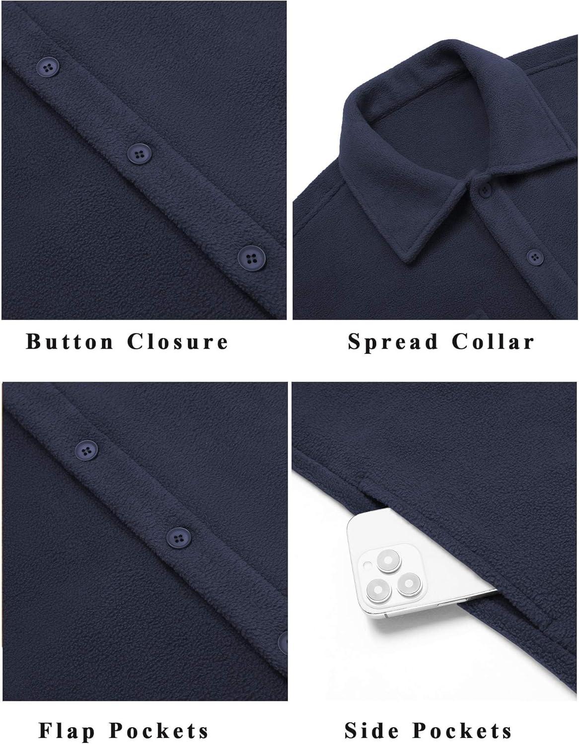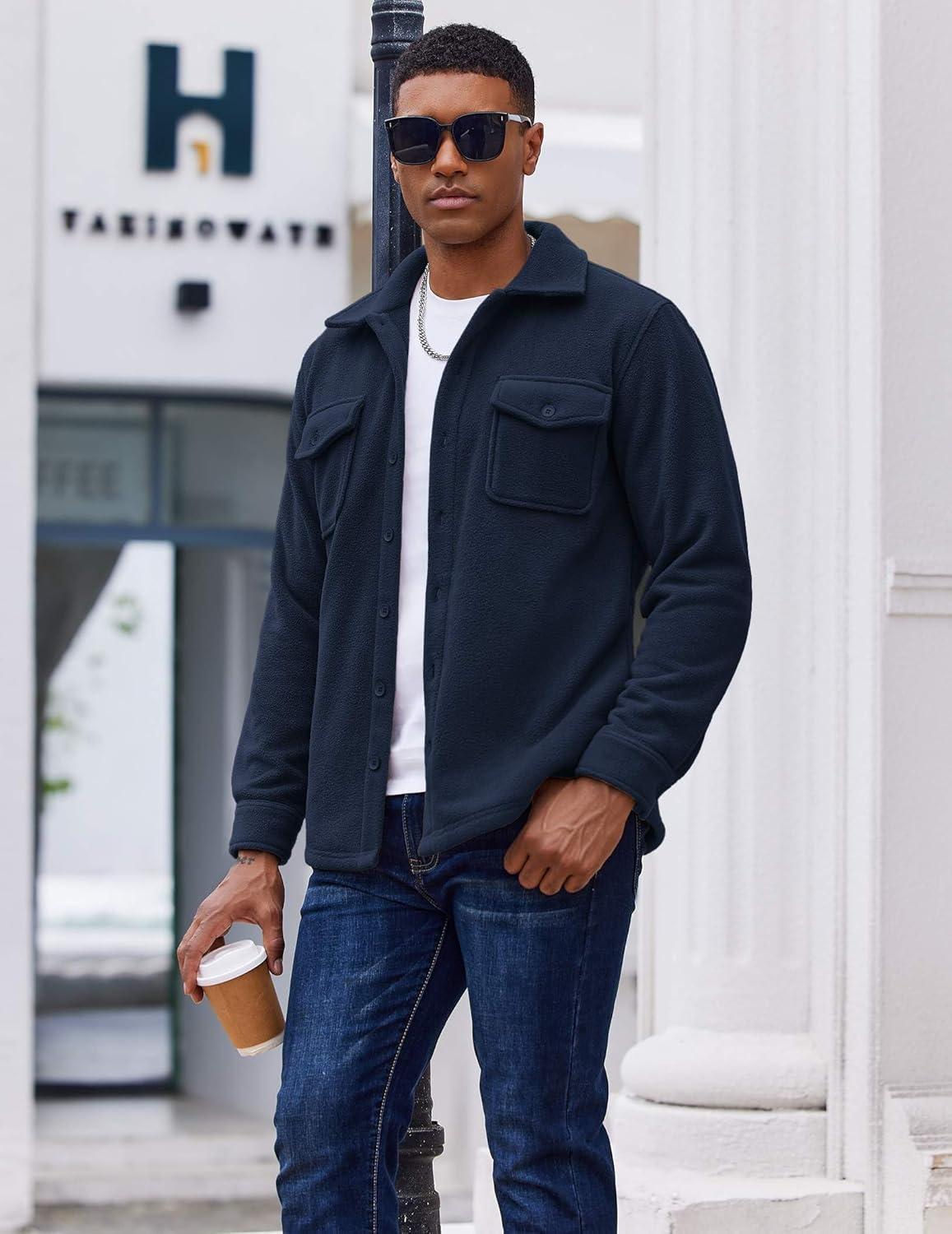 COOFANDY Men’s Polar Fleece Shirt Jacket Long Sleeve Casual Button Down Shirts Shacket with Pockets(Navy Blue)