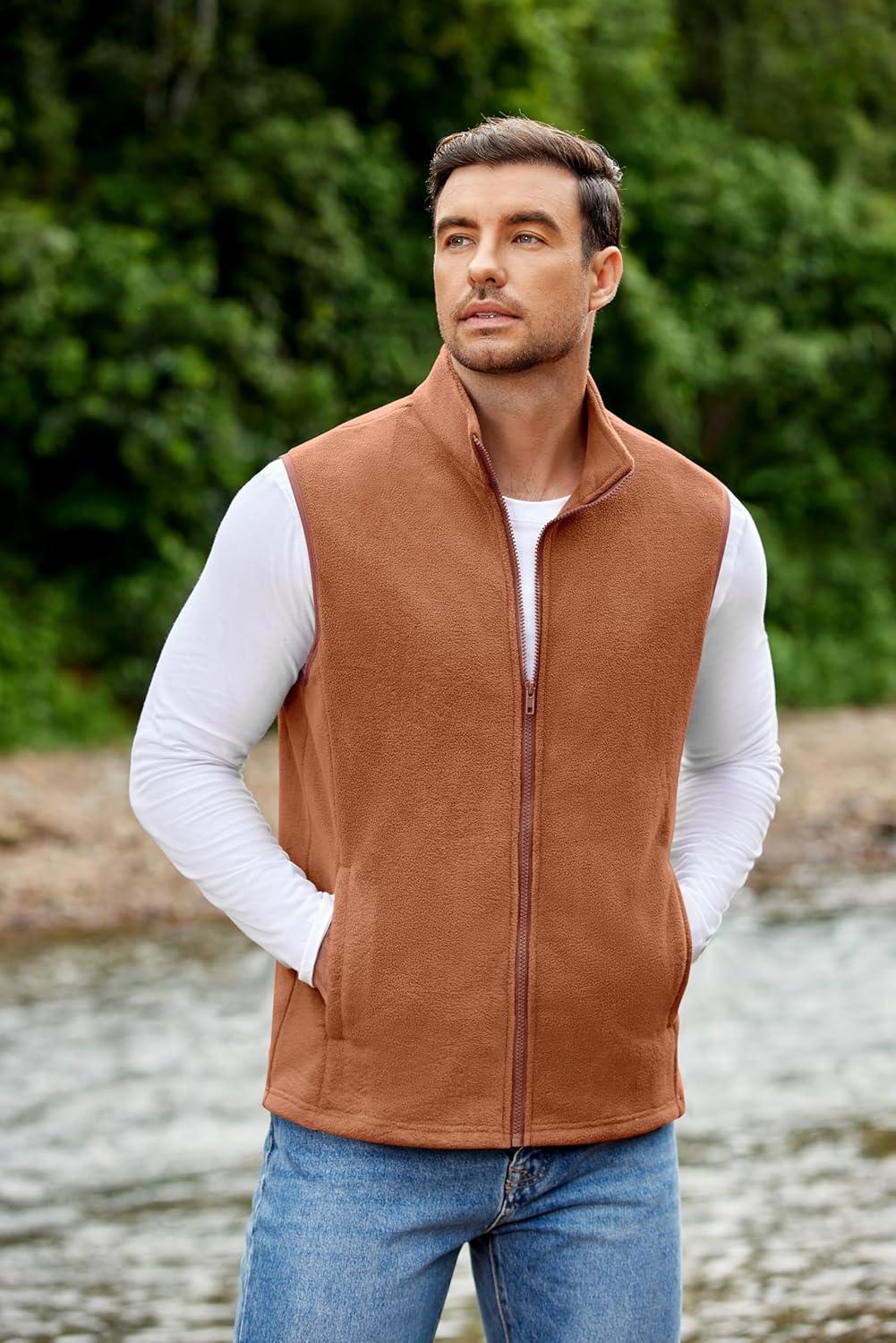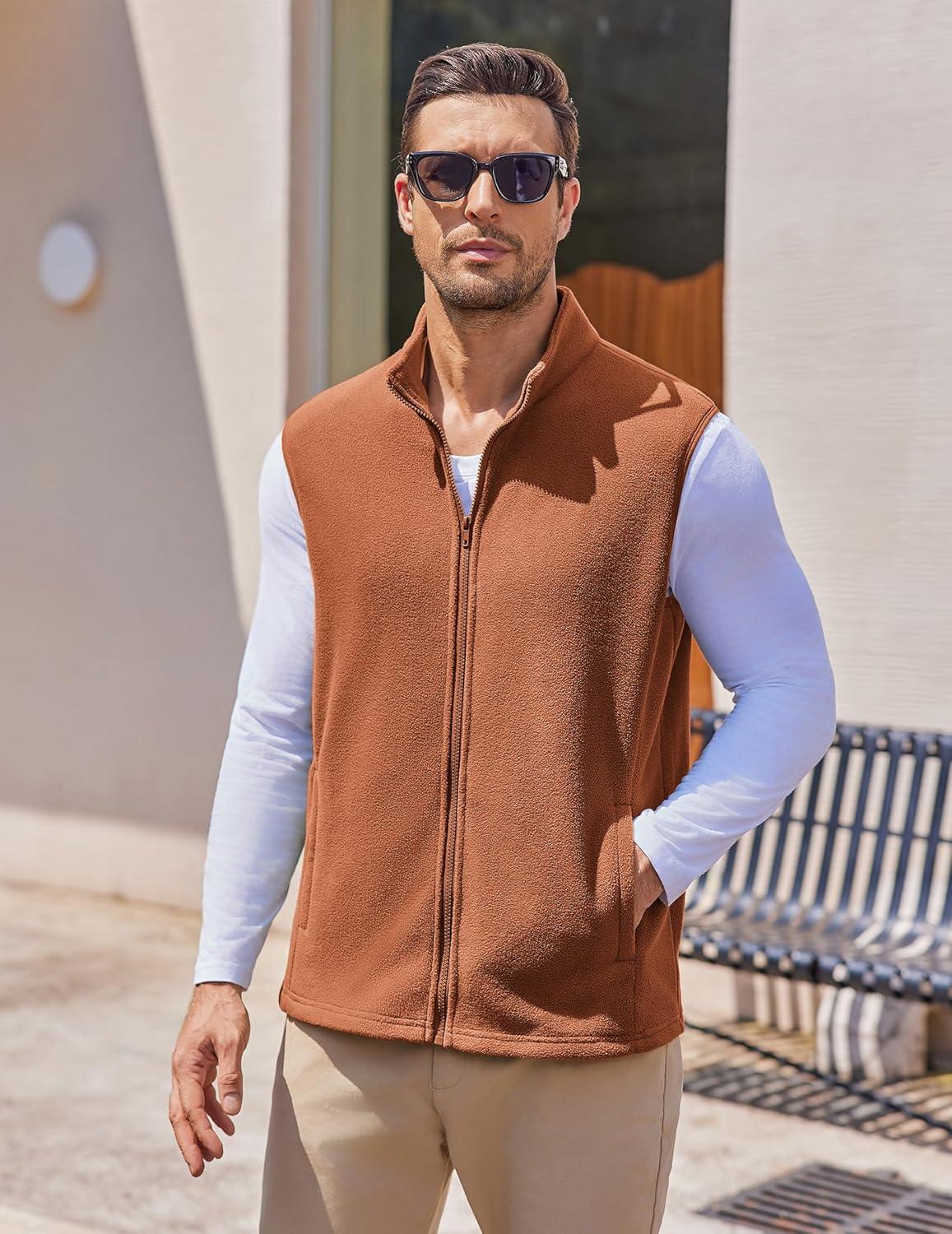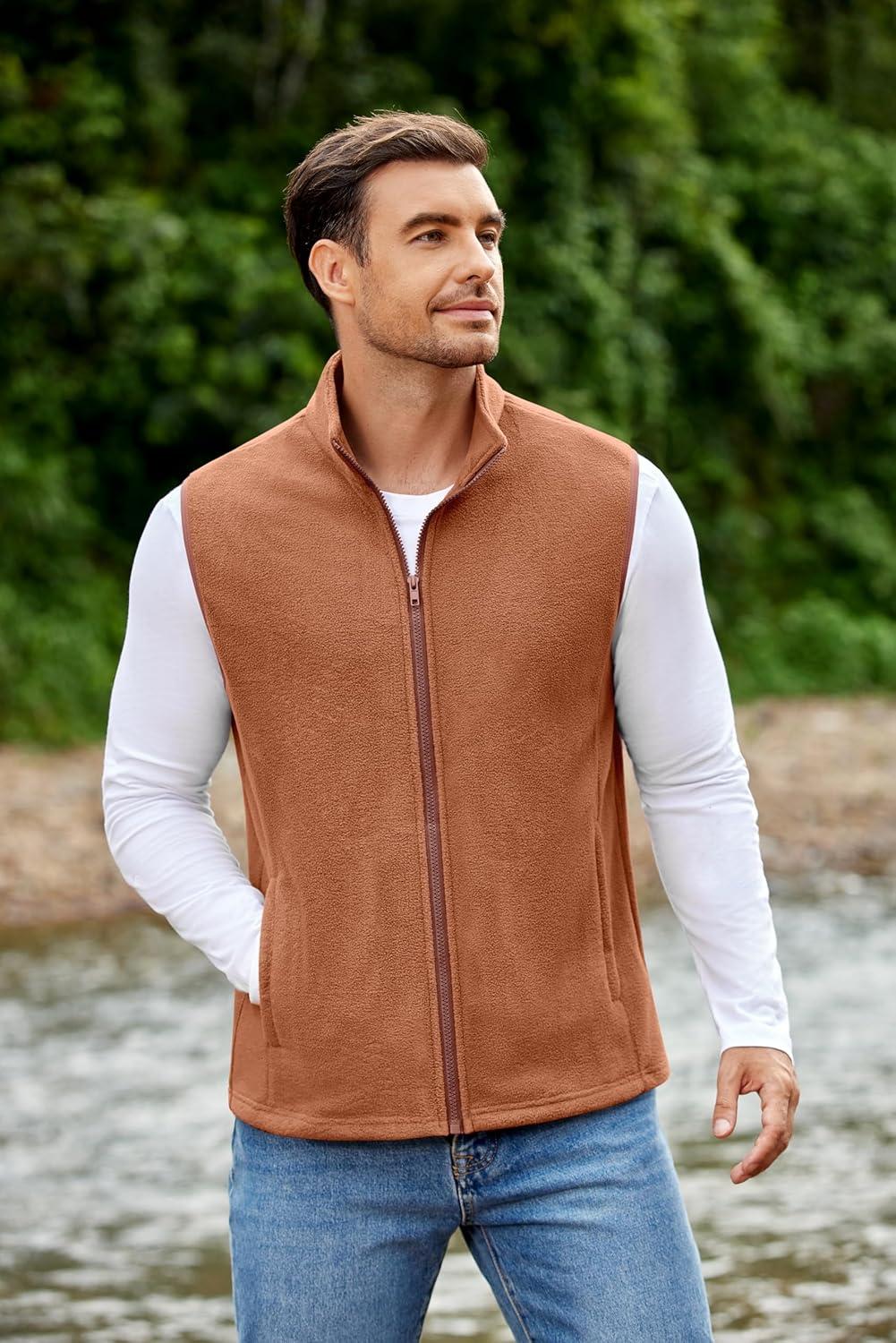 COOFANDY Mens Polar Fleece Vest Lightweight Sleeveless Jacket Warm Zip up Outerwear Vests with Zipper Pockets for Hiking(Terracotta)
