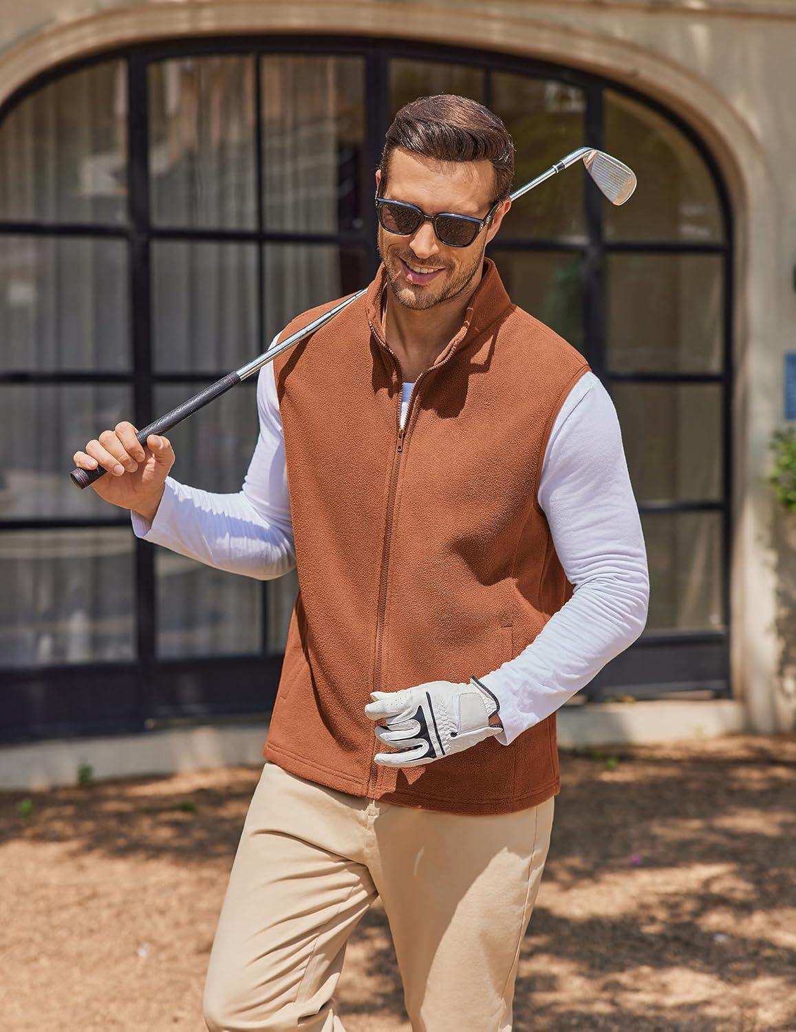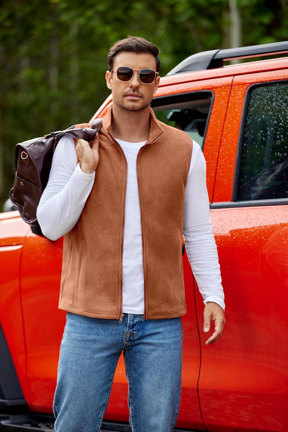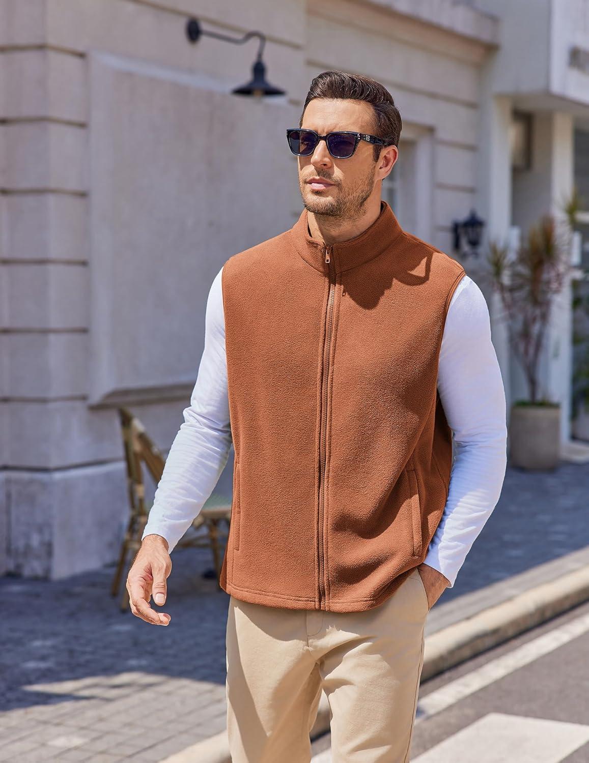 COOFANDY Mens Polar Fleece Vest Lightweight Sleeveless Jacket Warm Zip up Outerwear Vests with Zipper Pockets for Hiking(Terracotta)