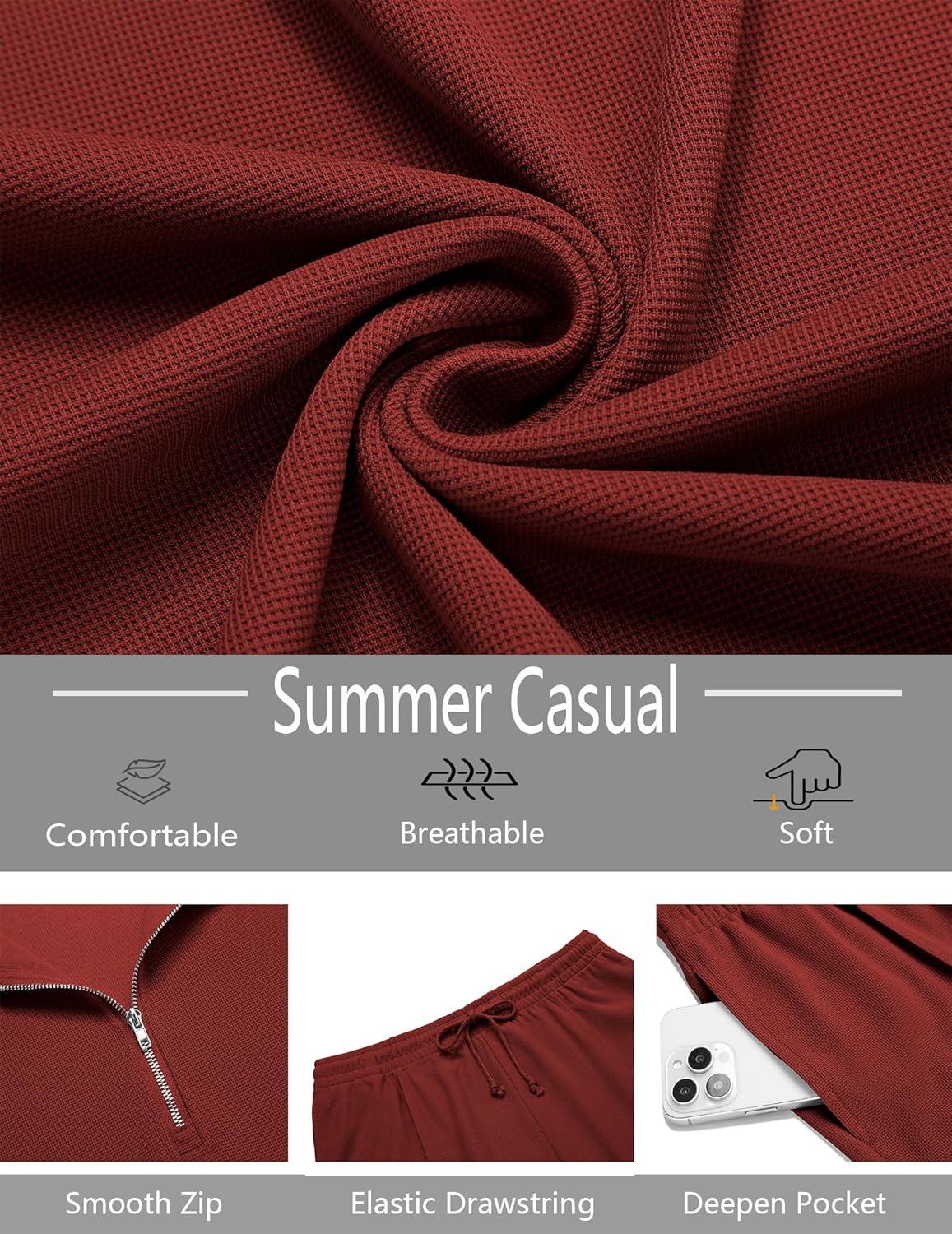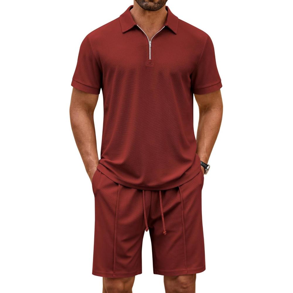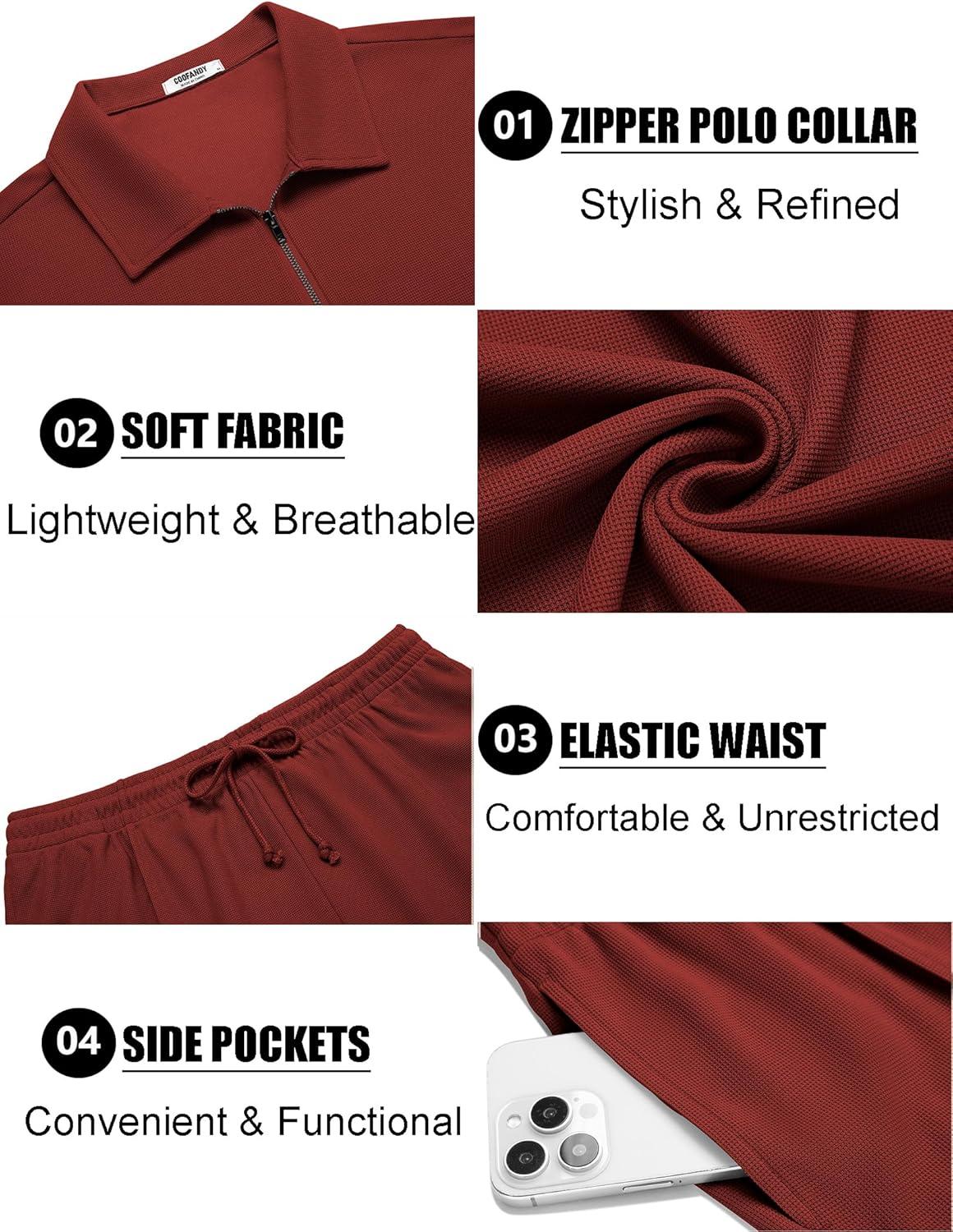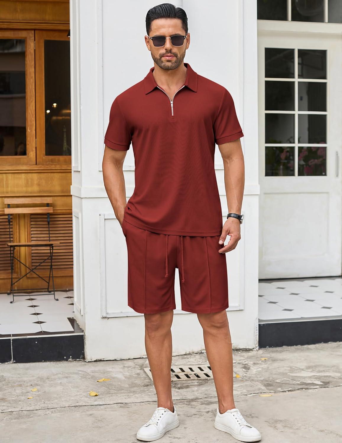 COOFANDY Men’s Polo Shirt and Shorts Set 2 Piece Outfits Fashion Summer Casual Tracksuits(Wine Red)
