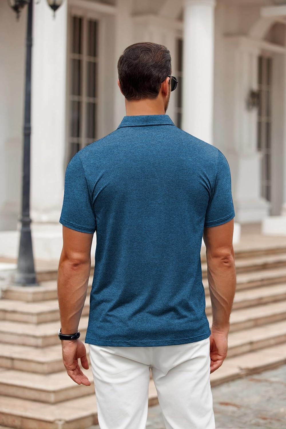 COOFANDY Men’s Polo Shirt Golf Quick Dry Performance Short Sleeve Moisture Wicking Athletic Polo Collared Tennis T-Shirt(Dark Blue)