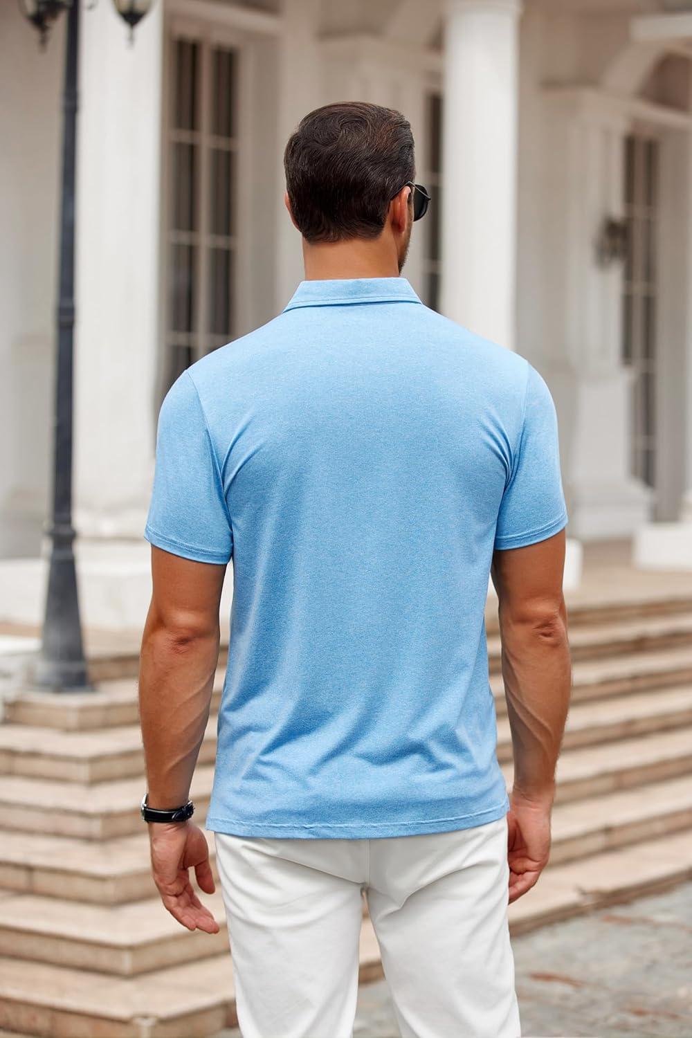COOFANDY Men’s Polo Shirt Golf Quick Dry Performance Short Sleeve Moisture Wicking Athletic Polo Collared Tennis T-Shirt(Light Blue)