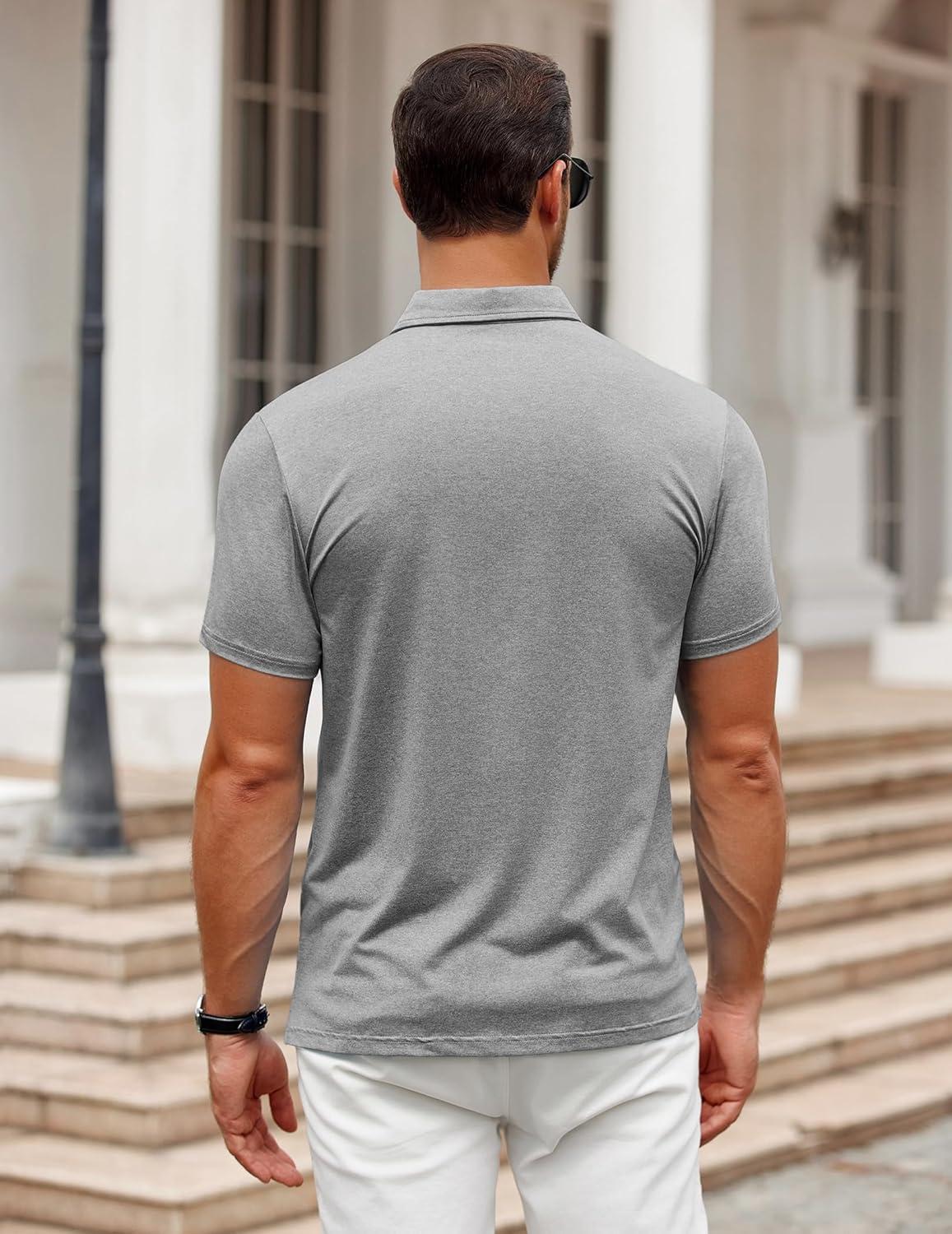 COOFANDY Men’s Polo Shirt Golf Quick Dry Performance Short Sleeve Moisture Wicking Athletic Polo Collared Tennis T-Shirt(Light Gray)