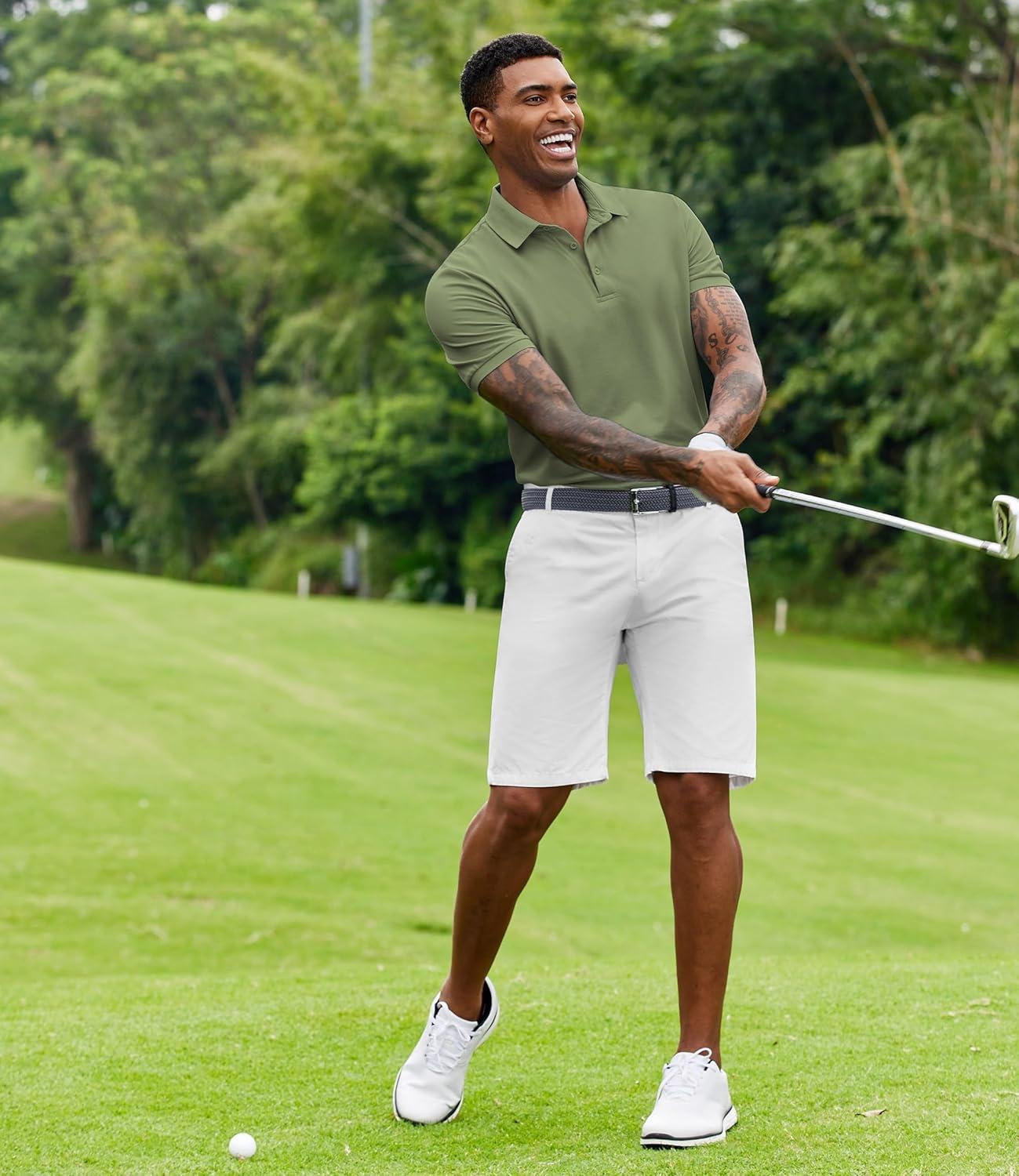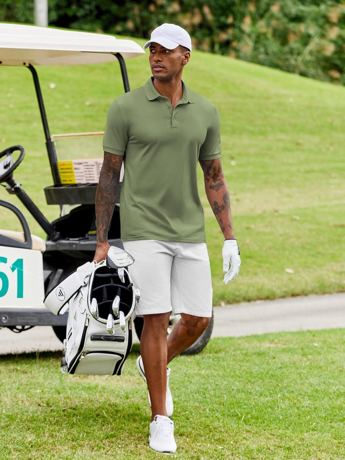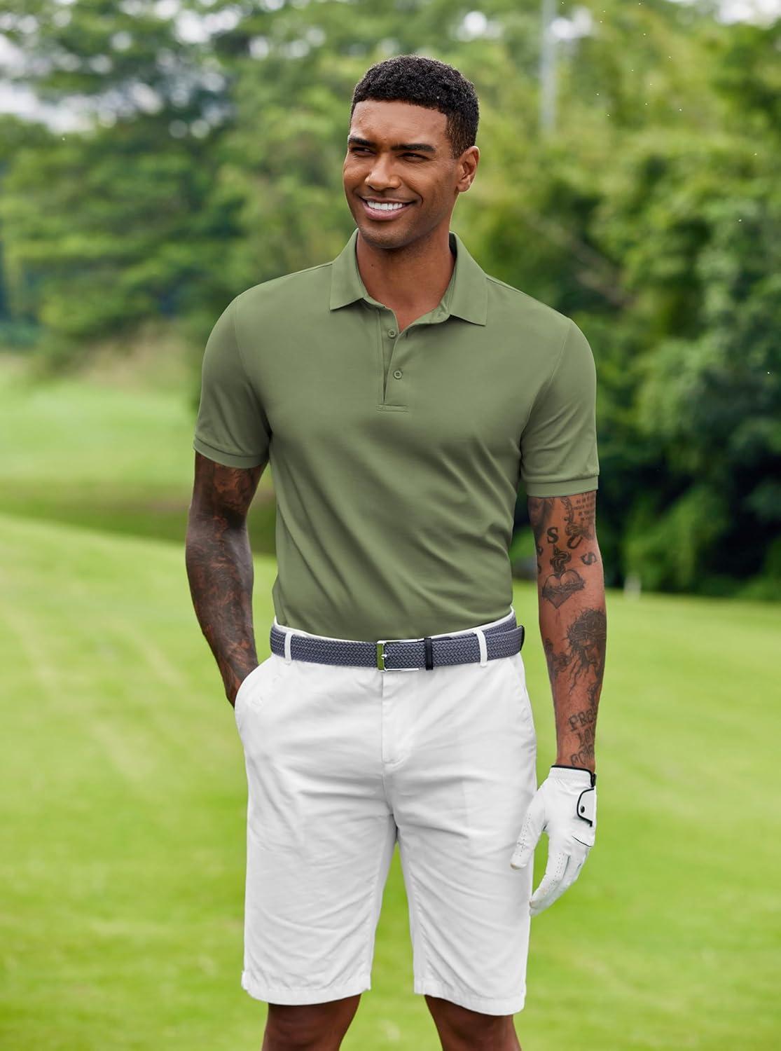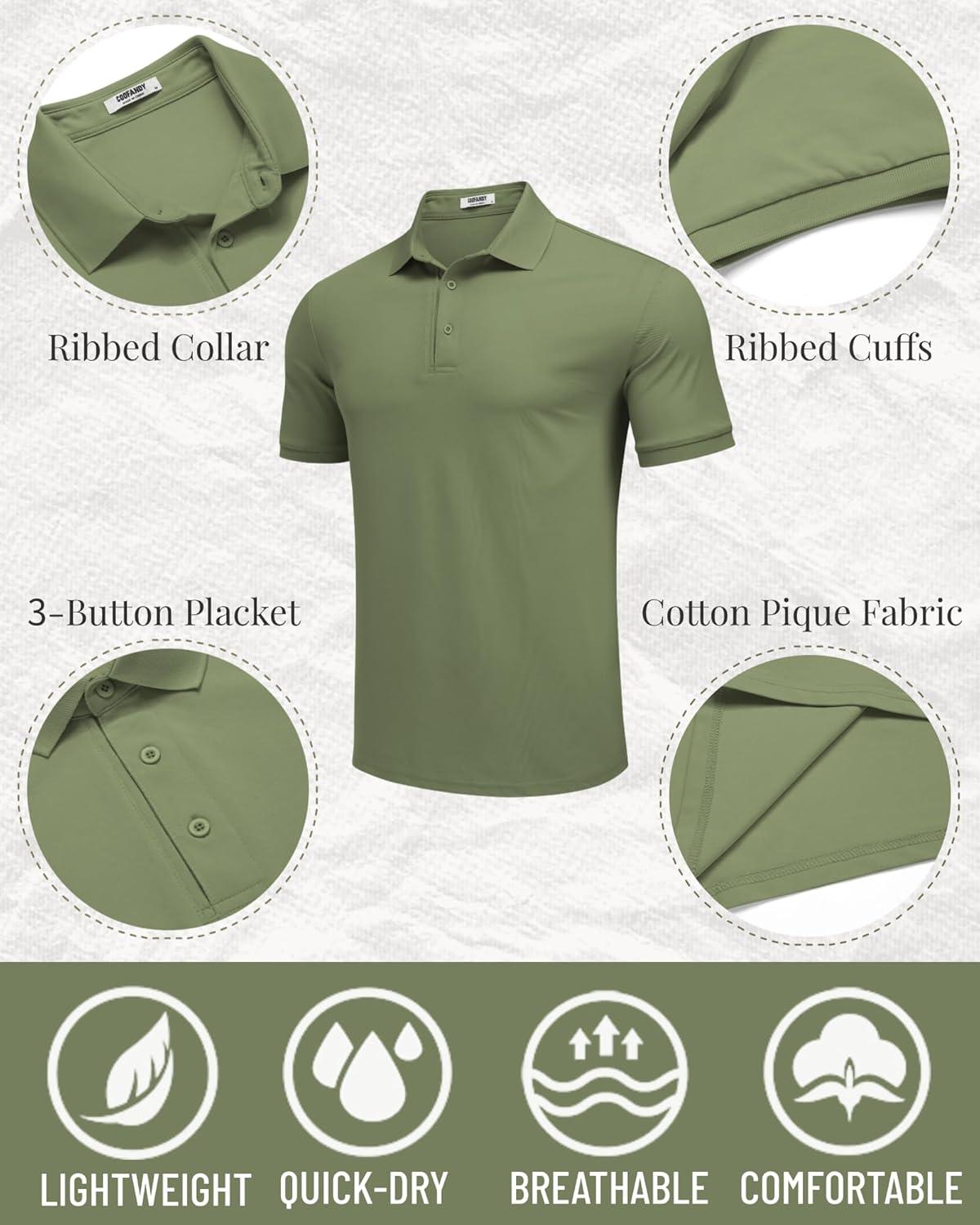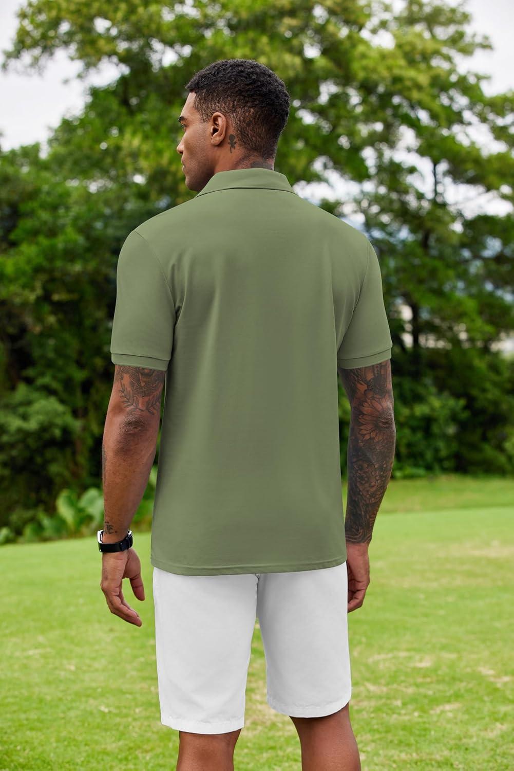 COOFANDY Mens Polo Shirt Short Sleeve Moisture Wicking Quick-Dry Golf Polo Athletic Tennis Collared T-Shirts(Army Green)