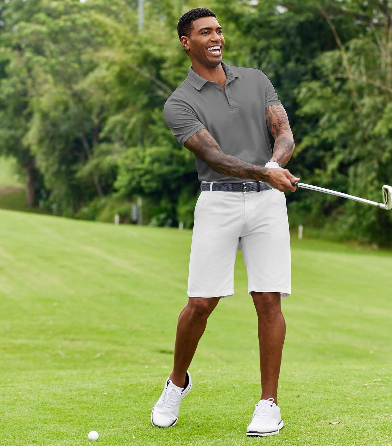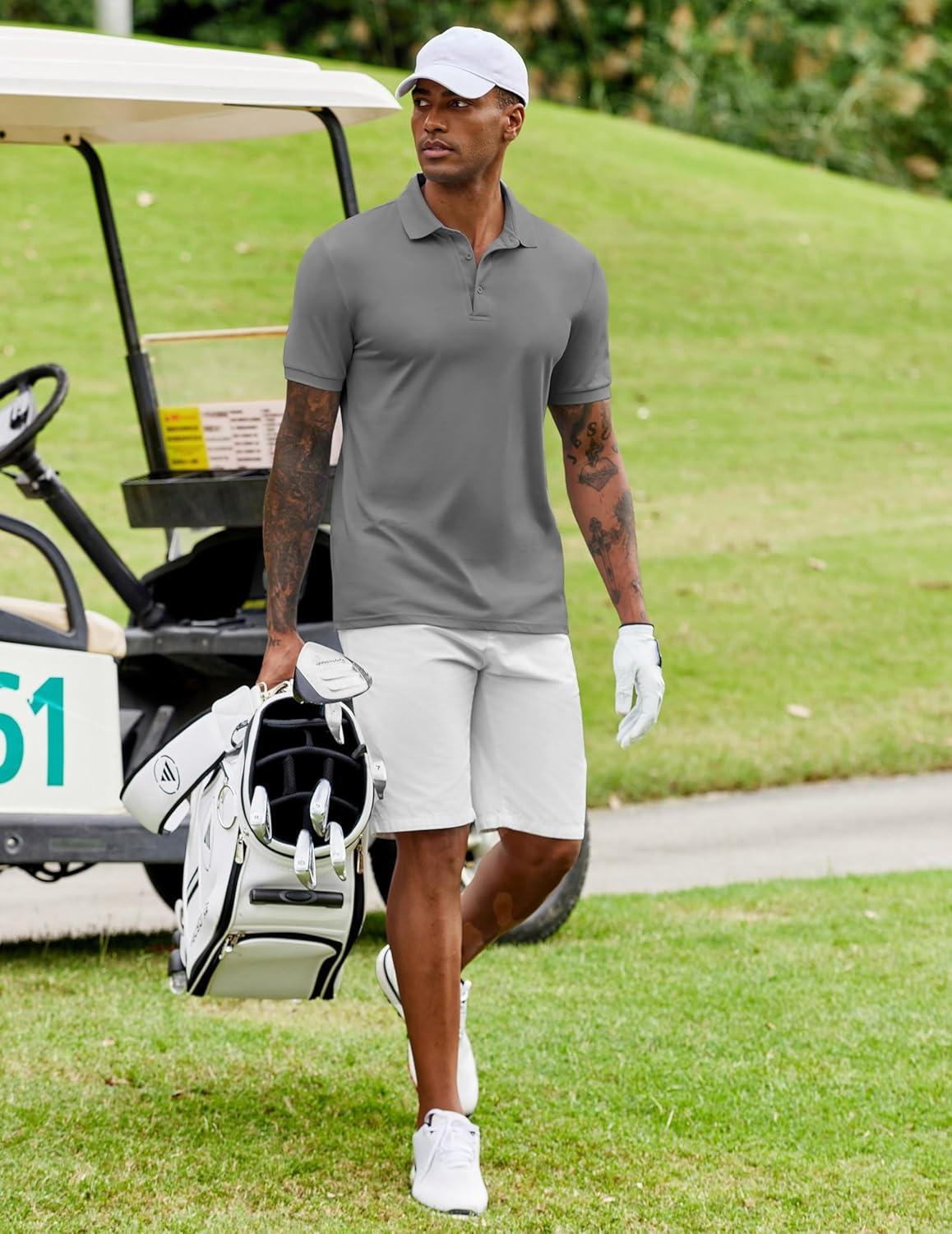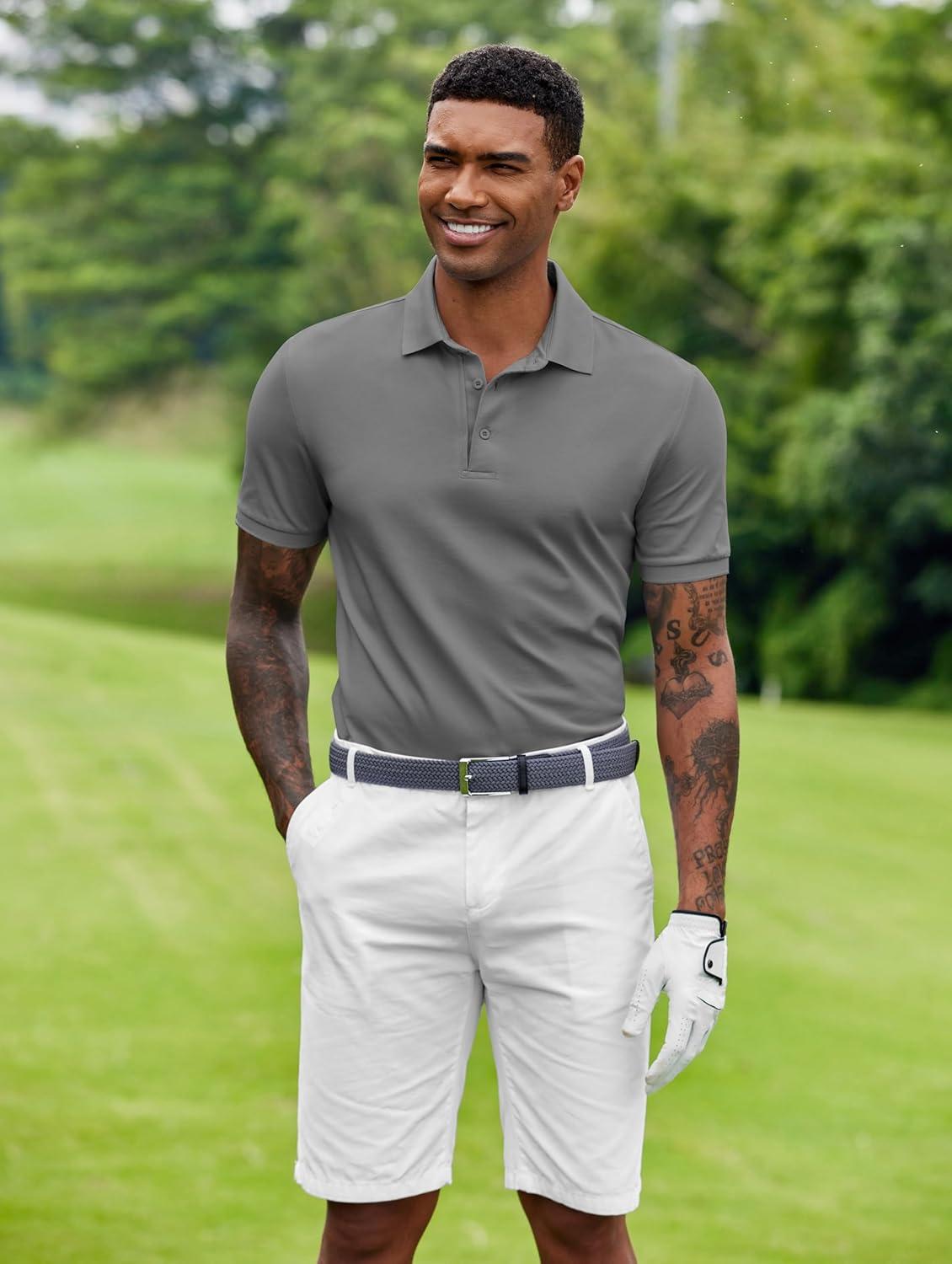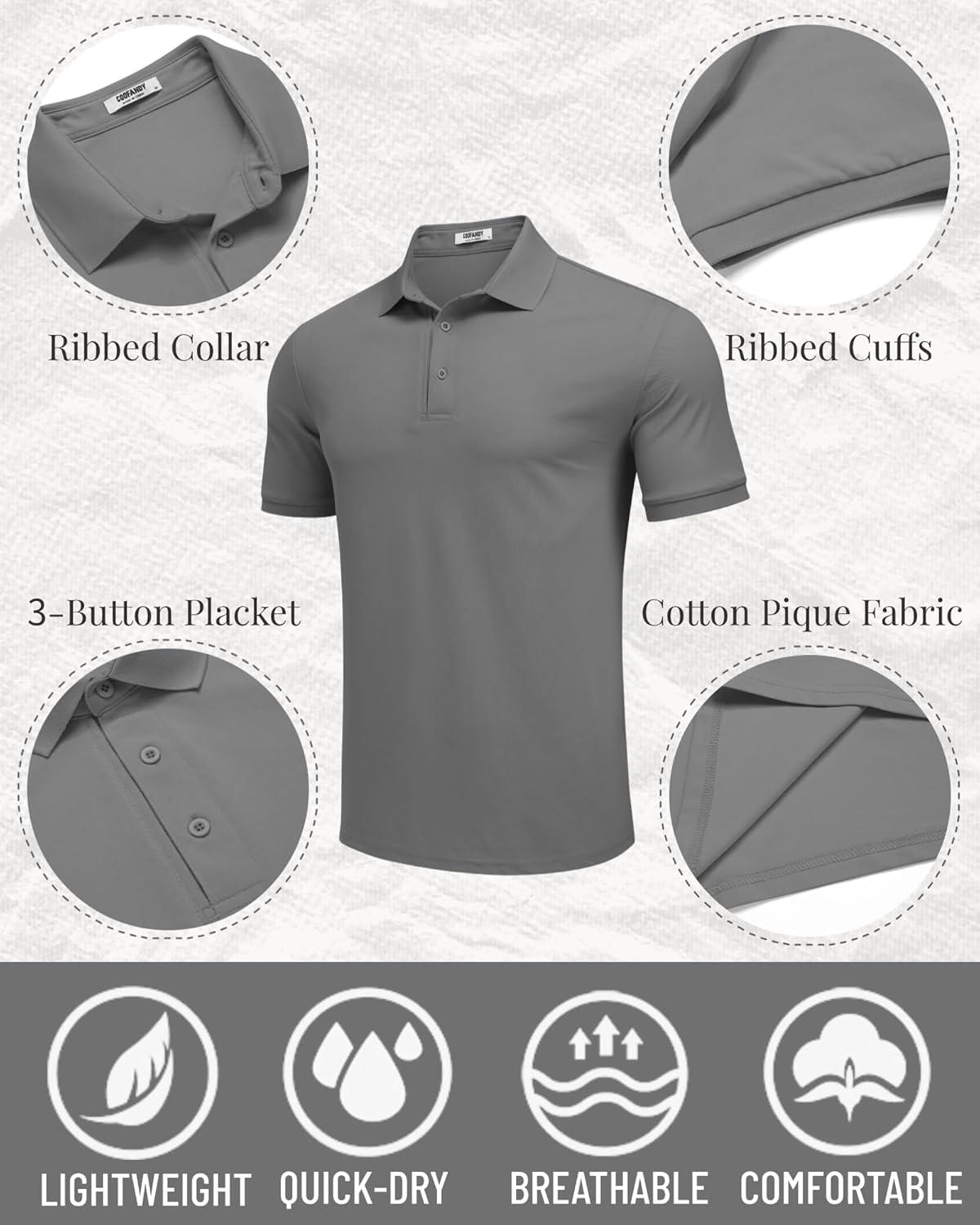 COOFANDY Mens Polo Shirt Short Sleeve Moisture Wicking Quick-Dry Golf Polo Athletic Tennis Collared T-Shirts(Dark Grey)