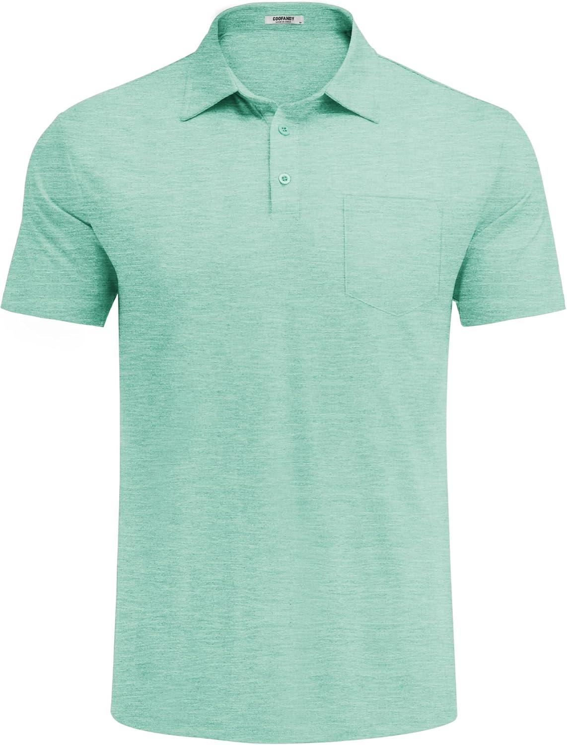 COOFANDY Mens Polo Shirts Short Sleeve Casual Golf Shirt Basic Solid Color Collared T-Shirt Stylish Summer Polo T Shirt(Ice Green)