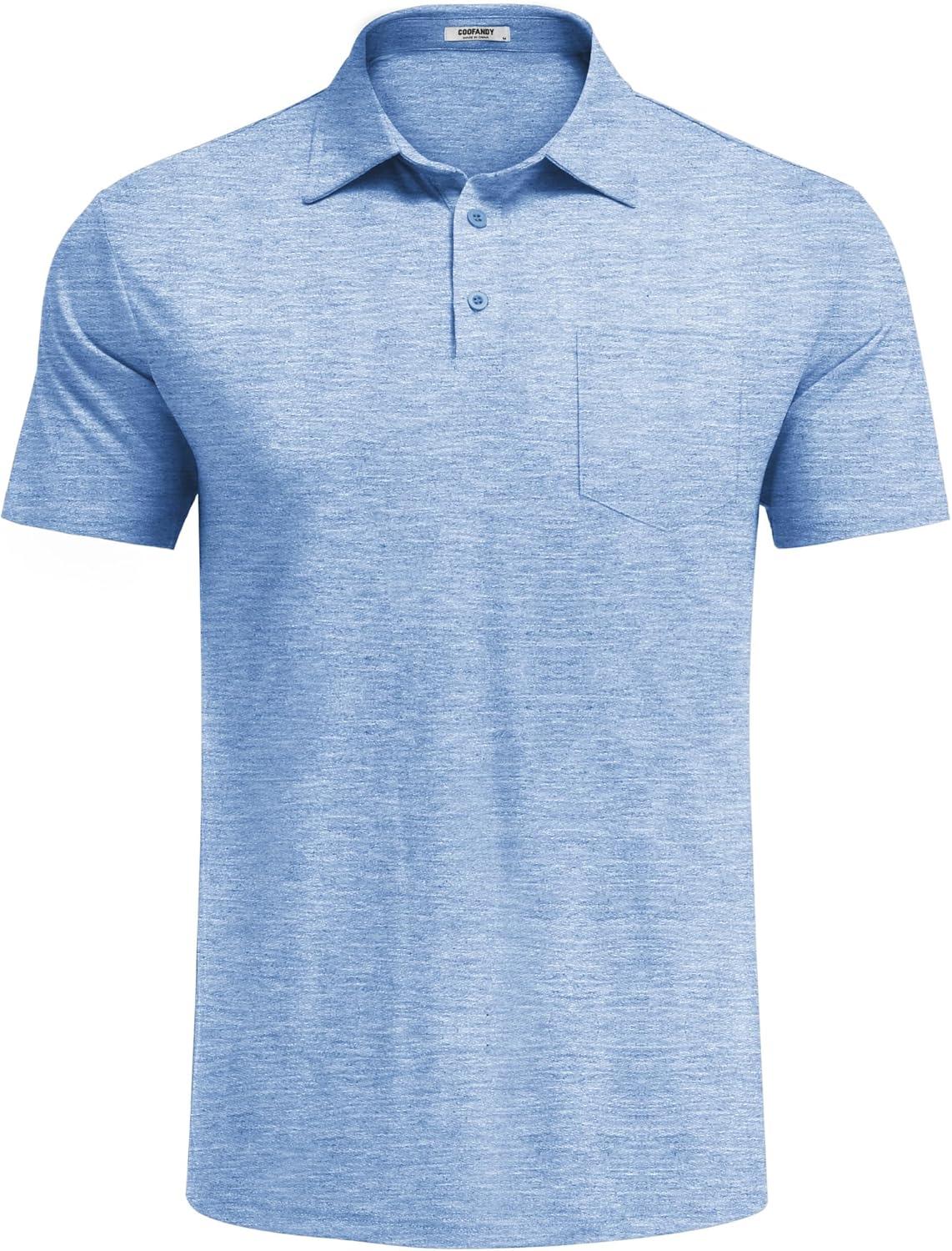 COOFANDY Mens Polo Shirts Short Sleeve Casual Golf Shirt Basic Solid Color Collared T-Shirt Stylish Summer Polo T Shirt(Light Blue)