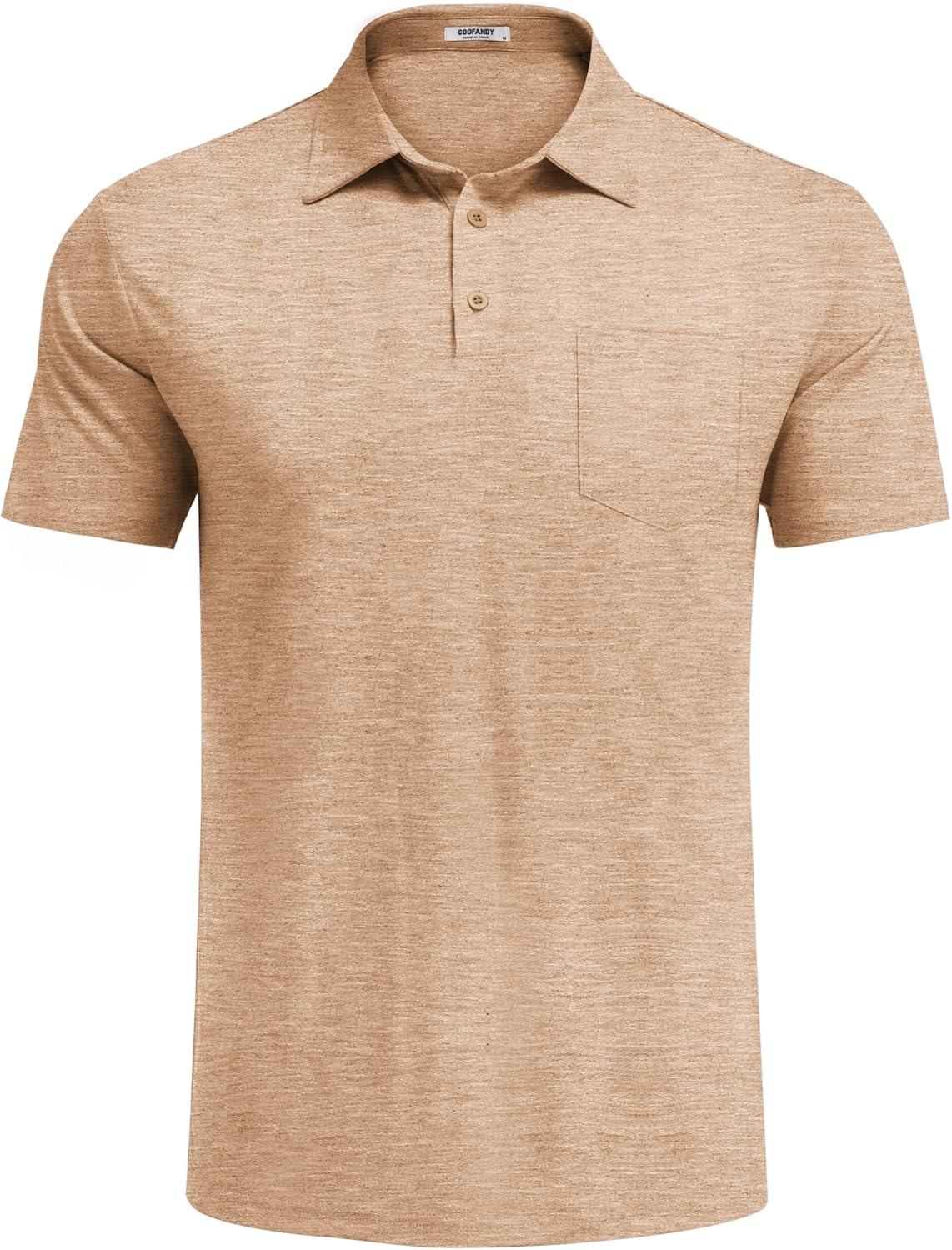 COOFANDY Mens Polo Shirts Short Sleeve Casual Golf Shirt Basic Solid Color Collared T-Shirt Stylish Summer Polo T Shirt(Light Khaki)