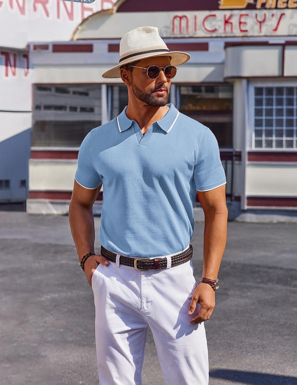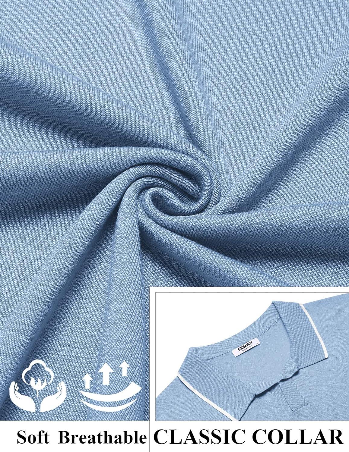 COOFANDY Mens Polo Shirts Short Sleeve Casual Knit Polo Shirt Vintage Golf T Shirts Old Money Tops(Blue)