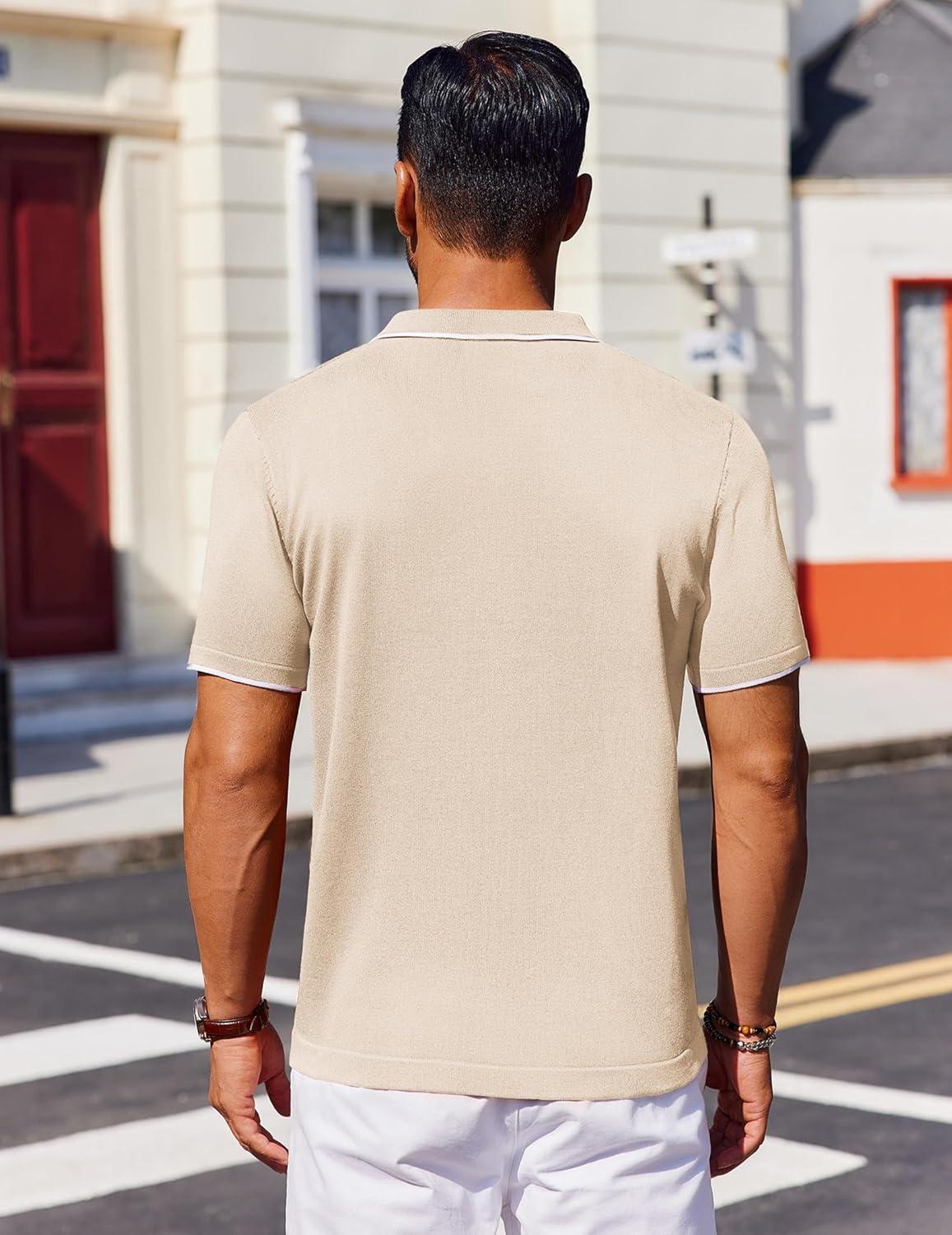 COOFANDY Mens Polo Shirts Short Sleeve Casual Knit Polo Shirt Vintage Golf T Shirts Old Money Tops(Champagne)