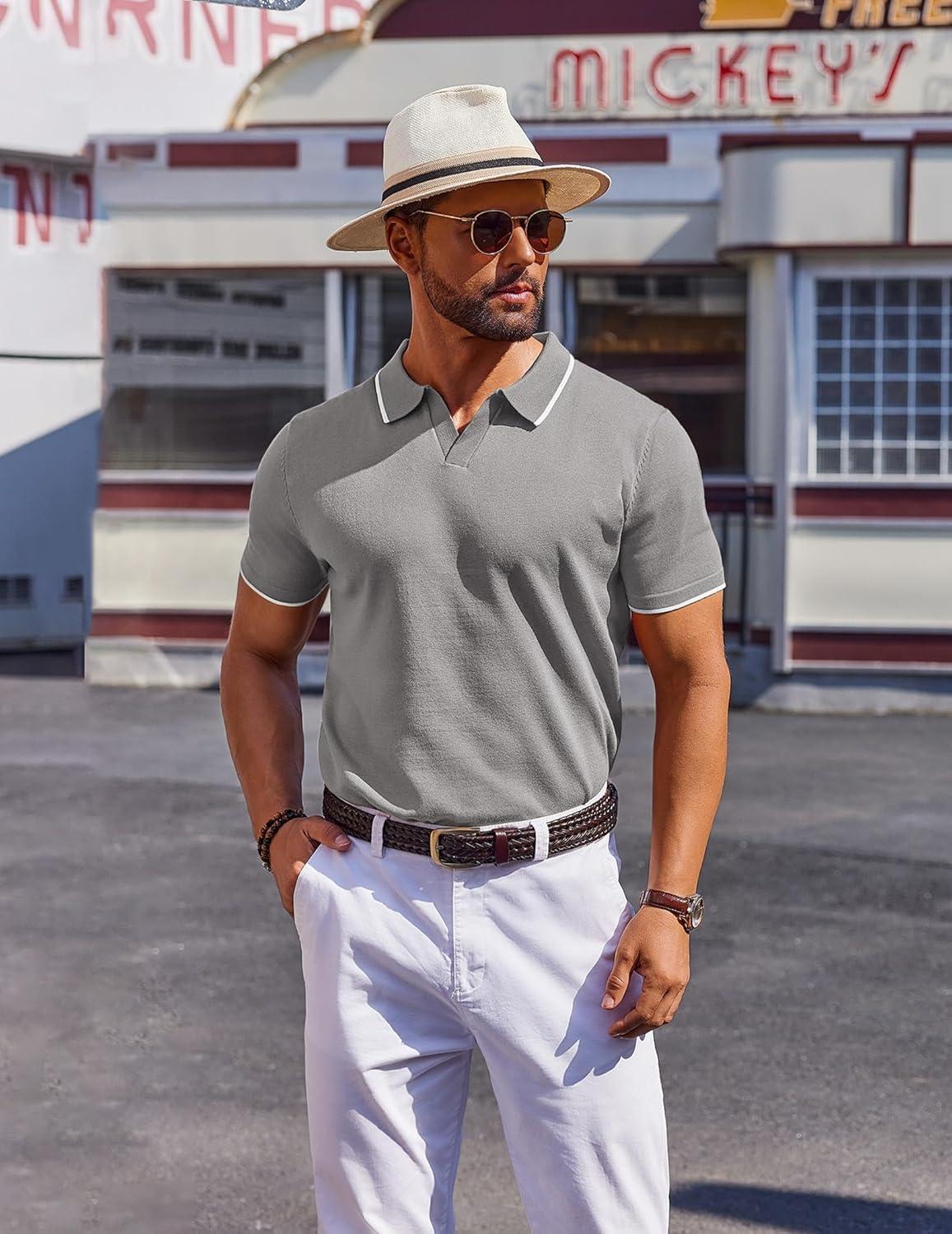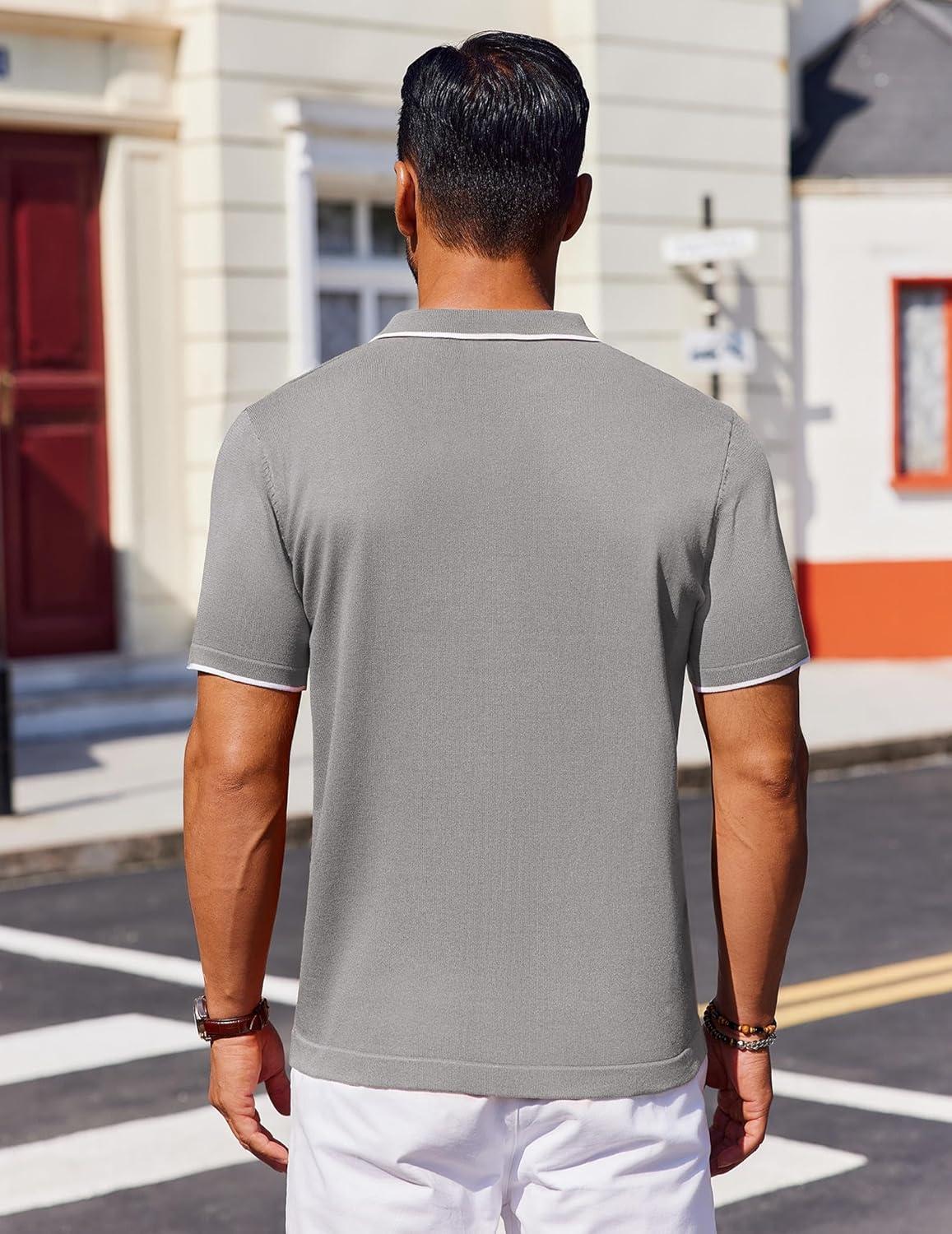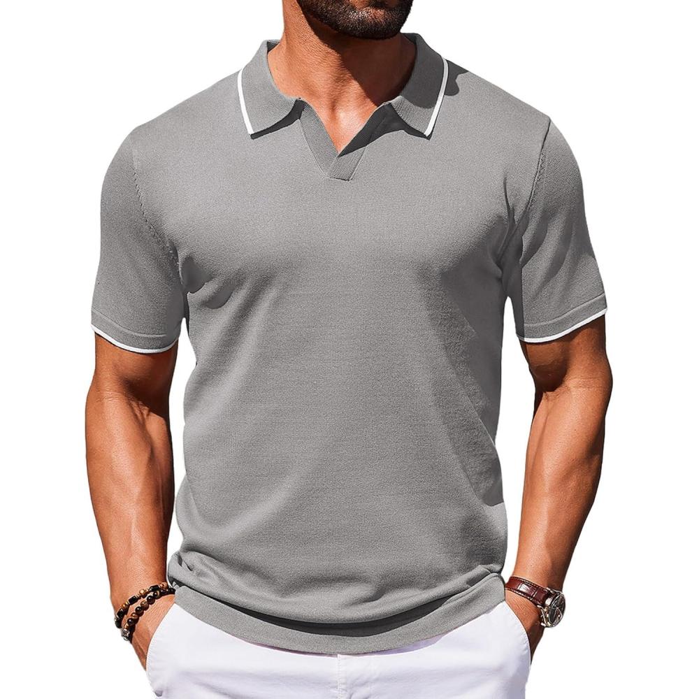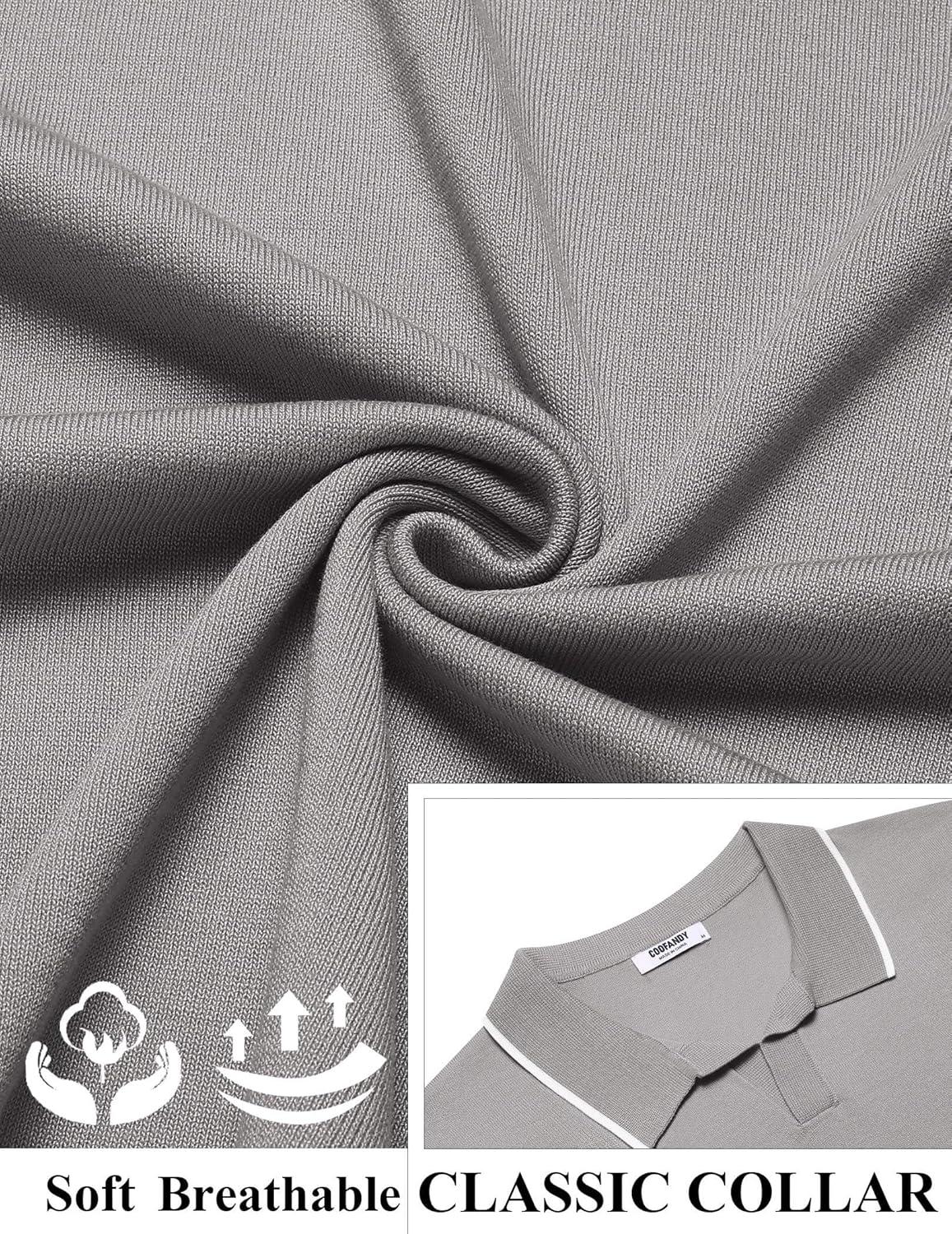 COOFANDY Mens Polo Shirts Short Sleeve Casual Knit Polo Shirt Vintage Golf T Shirts Old Money Tops(Light Grey)