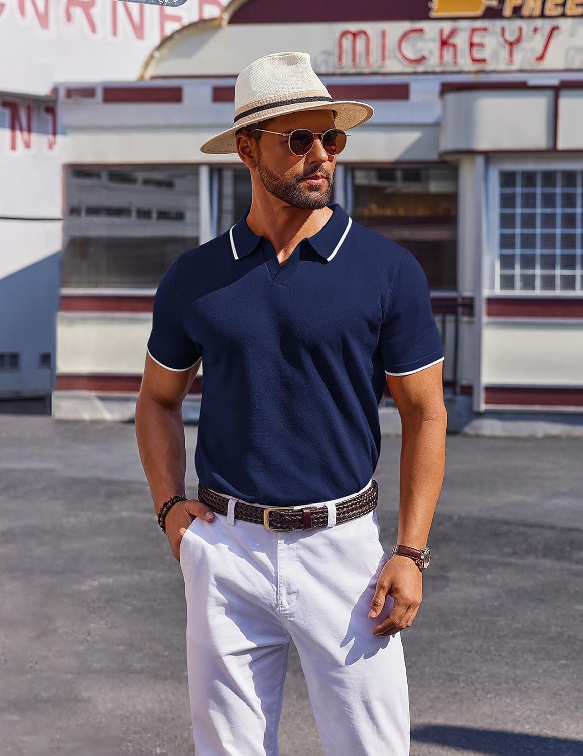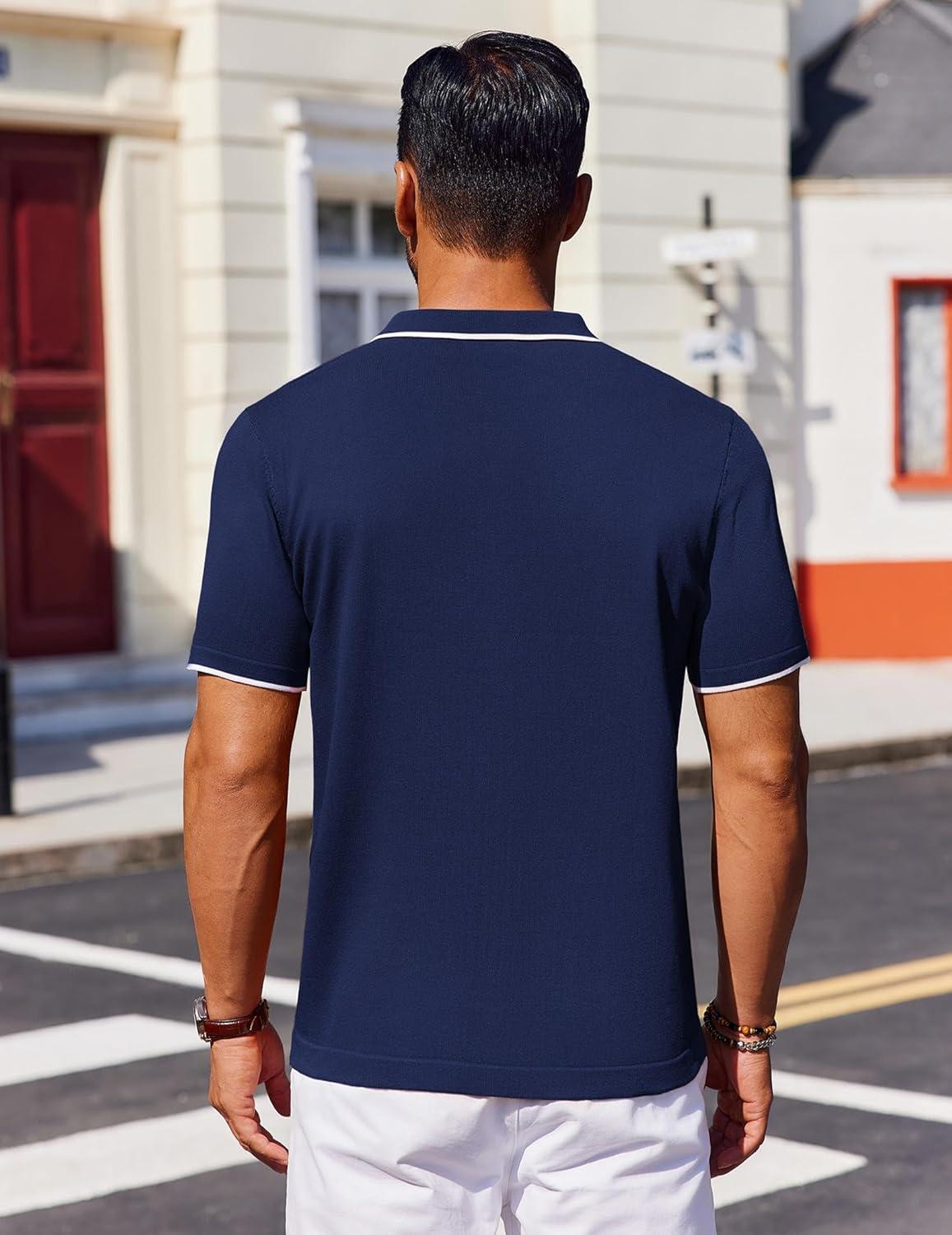 COOFANDY Mens Polo Shirts Short Sleeve Casual Knit Polo Shirt Vintage Golf T Shirts Old Money Tops(Navy Blue)