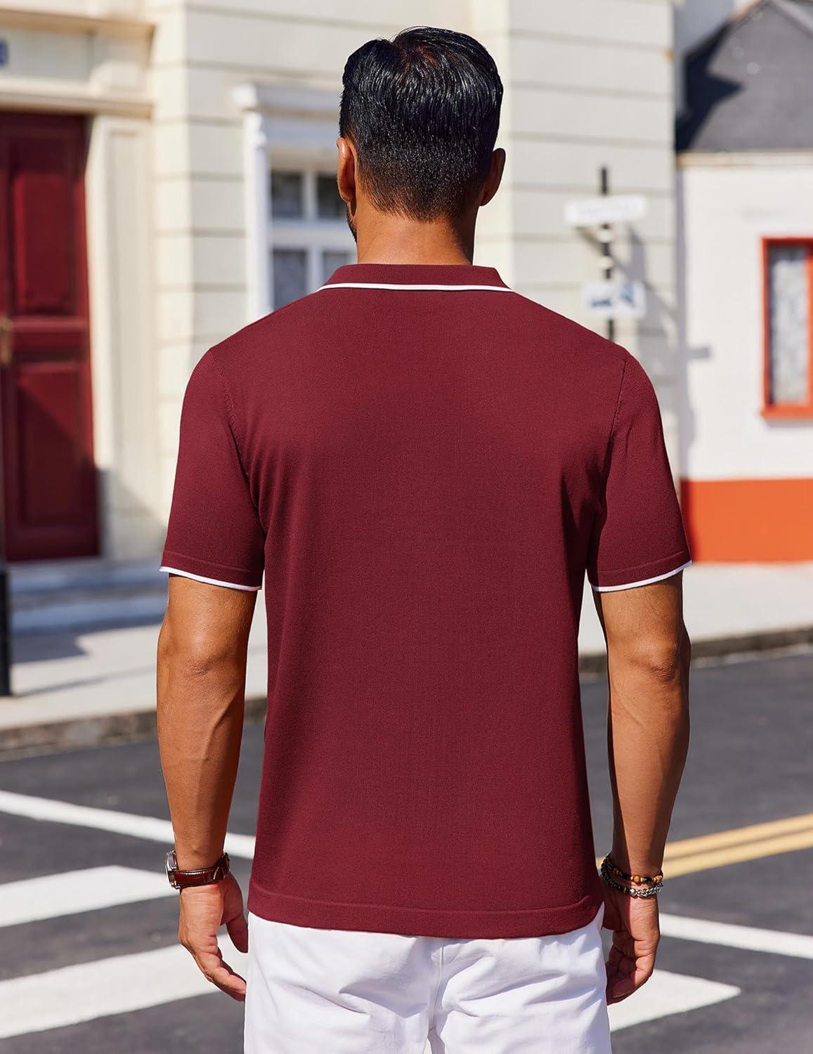 COOFANDY Mens Polo Shirts Short Sleeve Casual Knit Polo Shirt Vintage Golf T Shirts Old Money Tops(Wine Red)